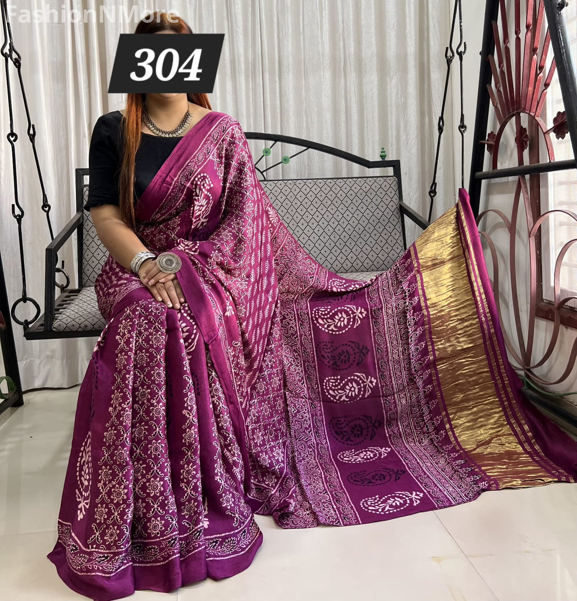 Ajrakh on Modal silk saree