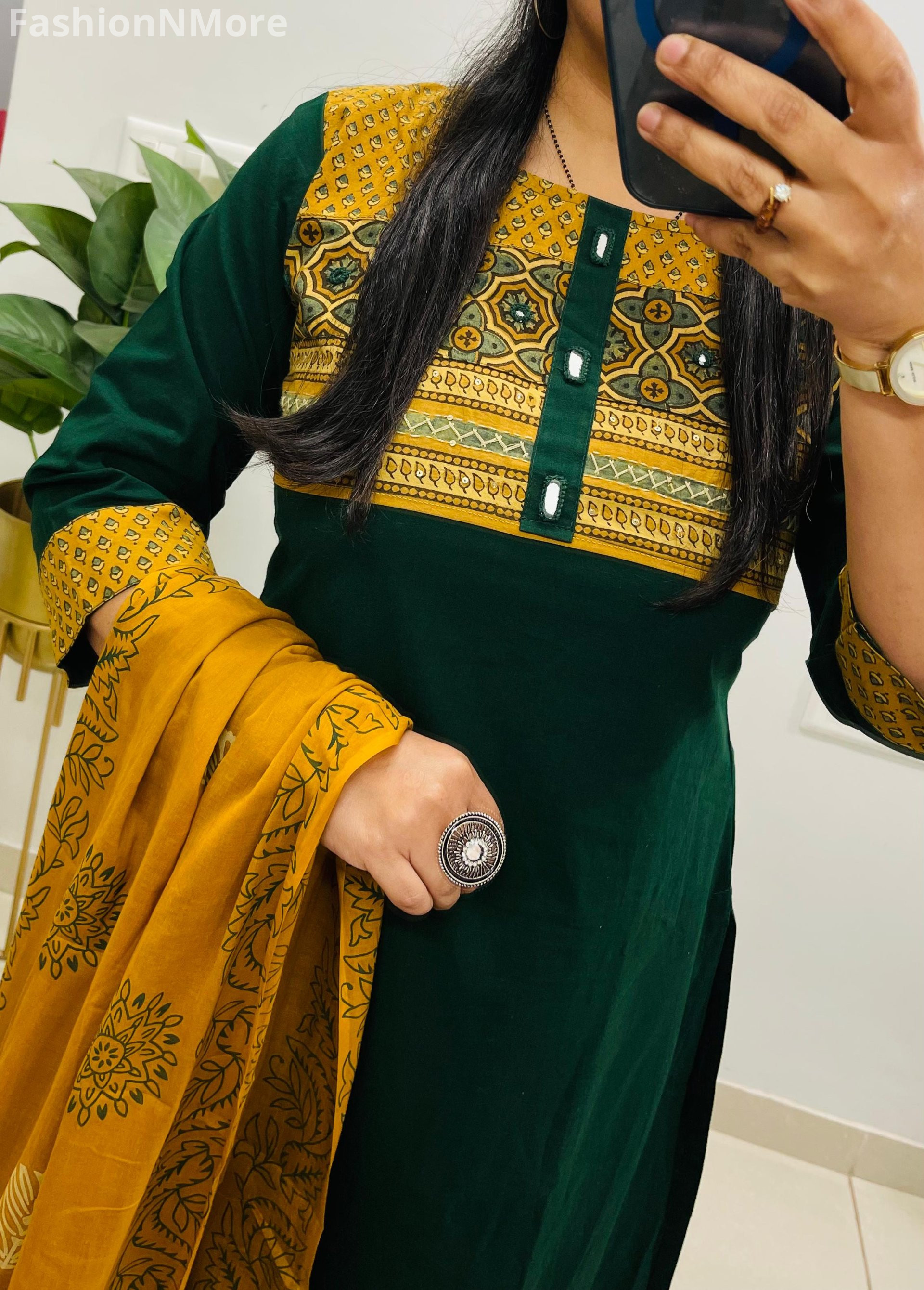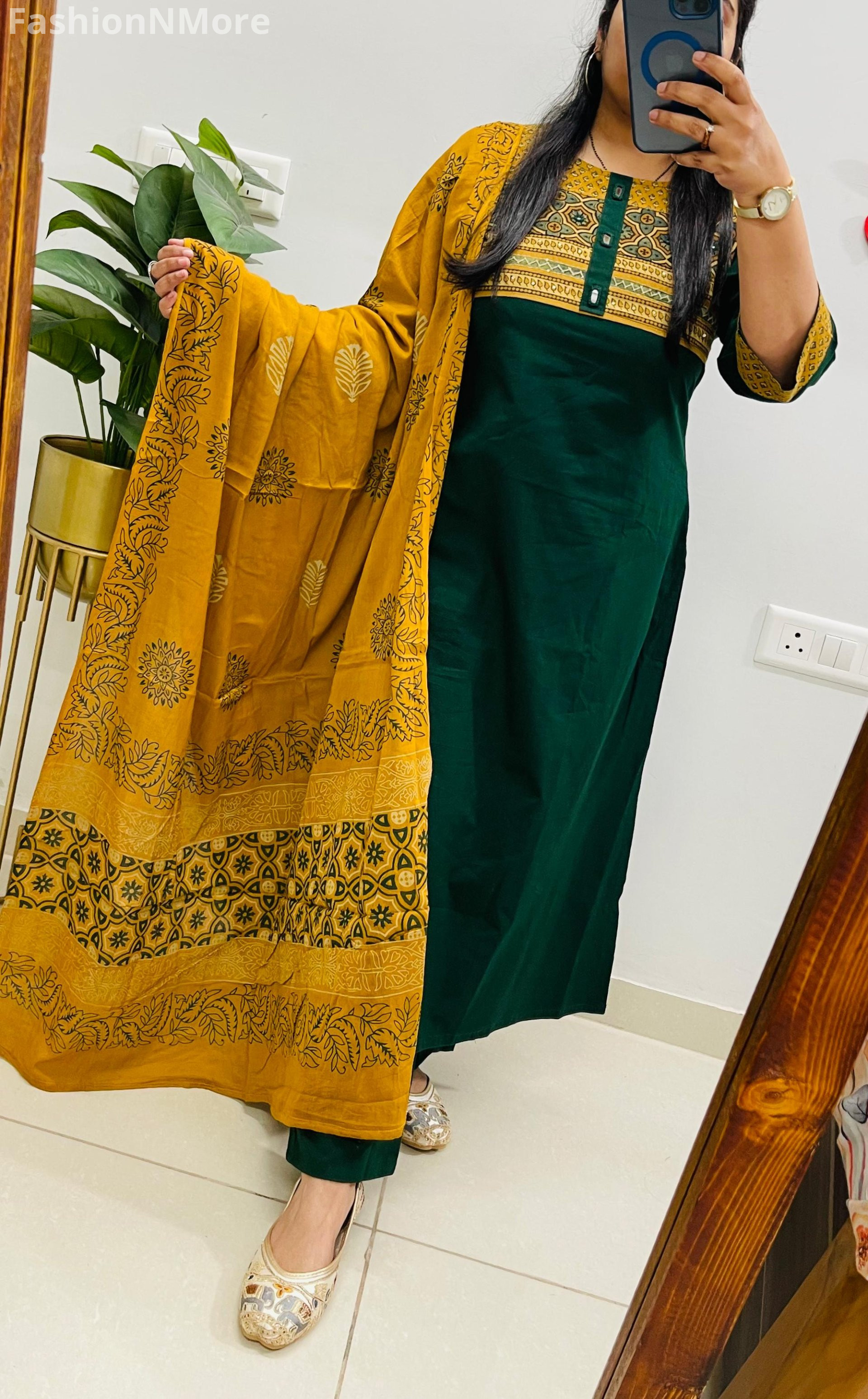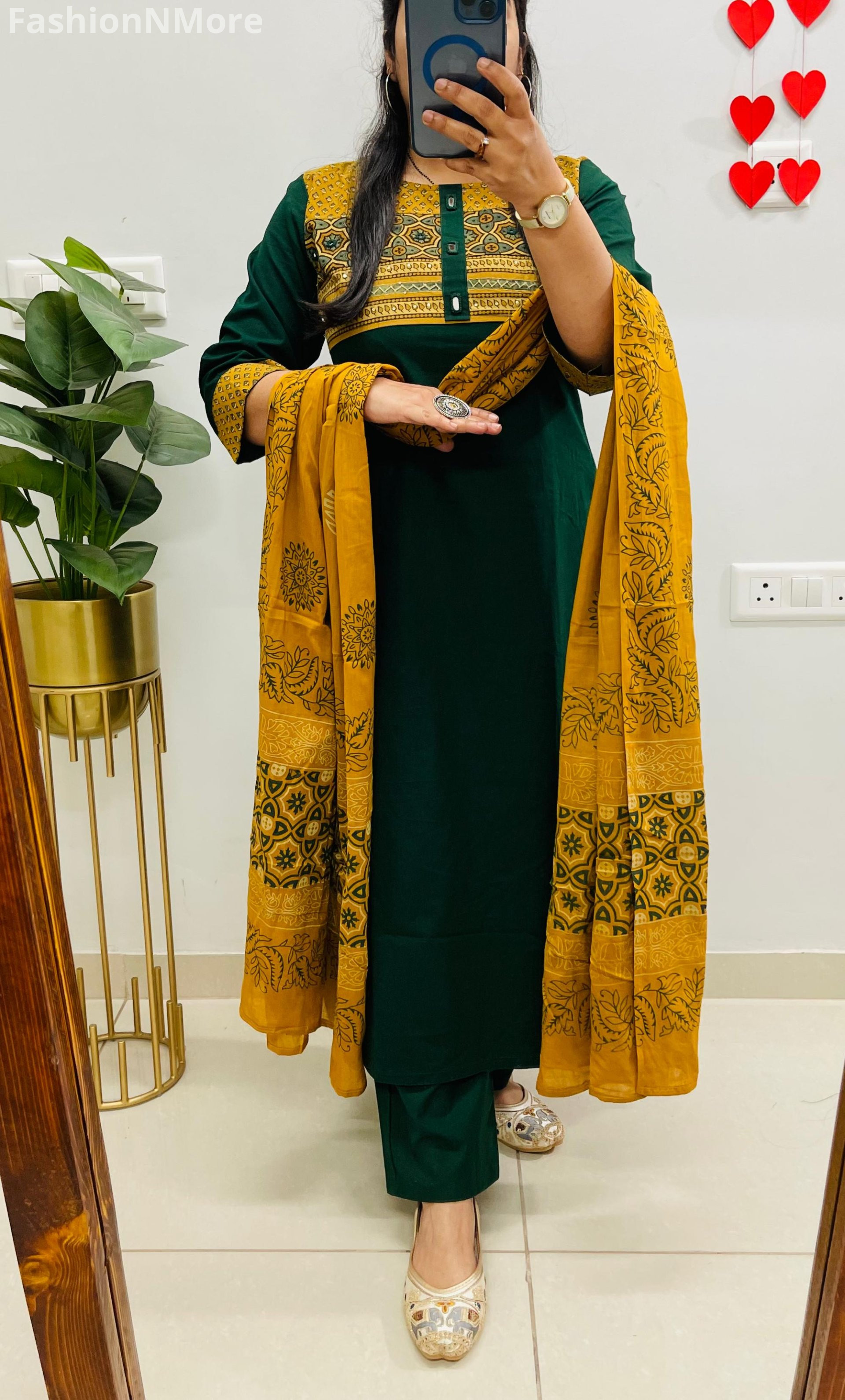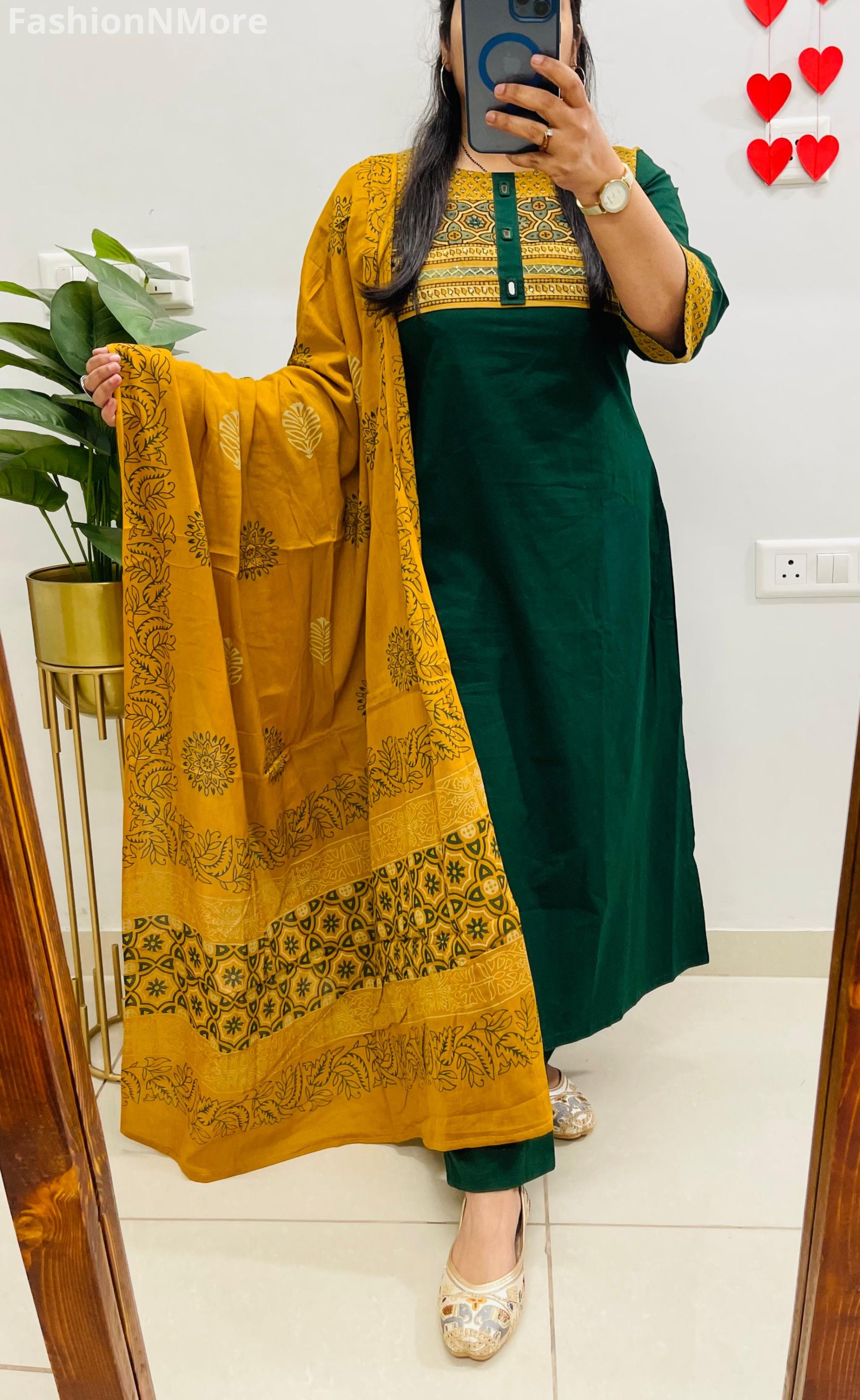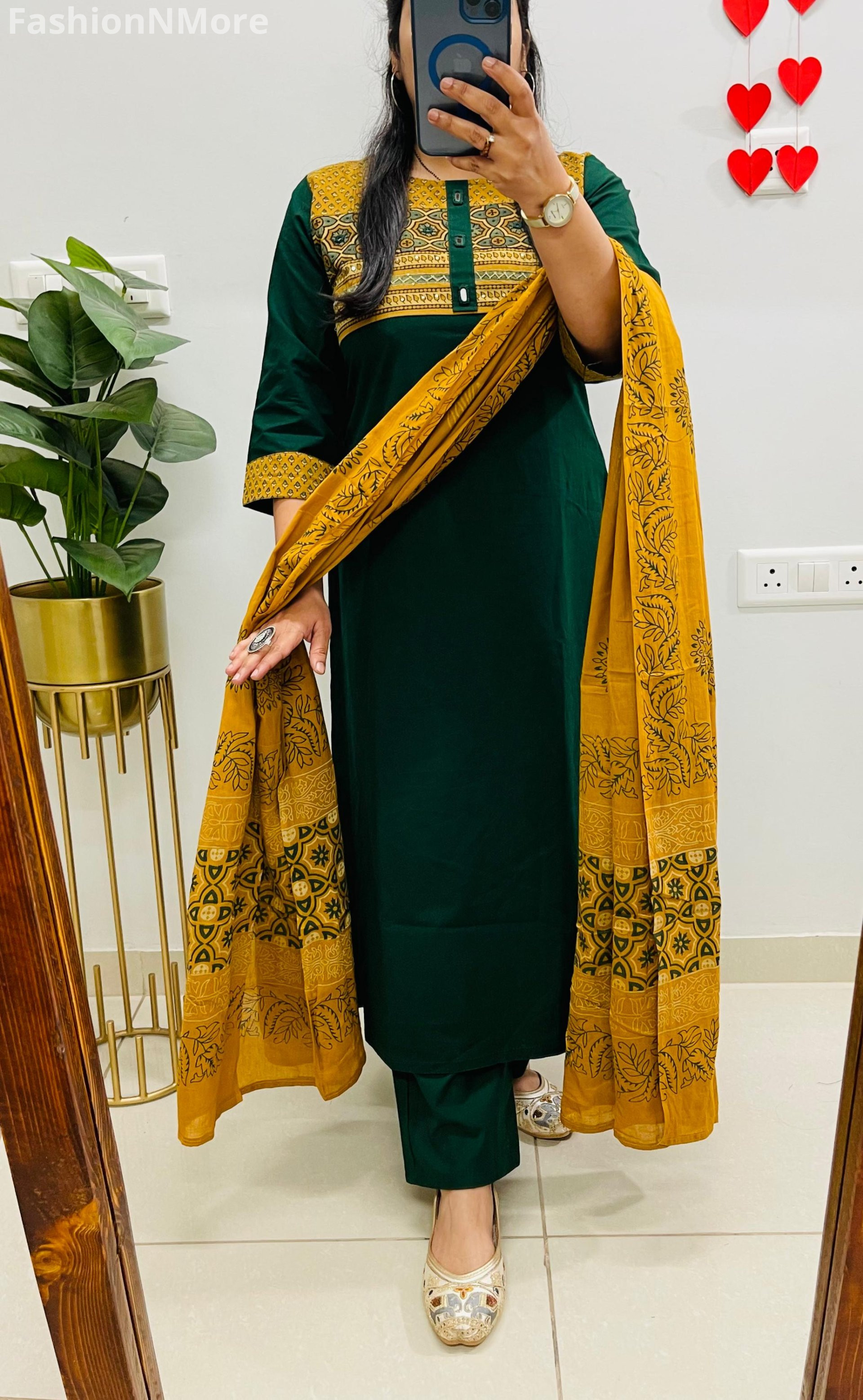 ✔ Matching kurti and pant set paired with soft cotton dupatta