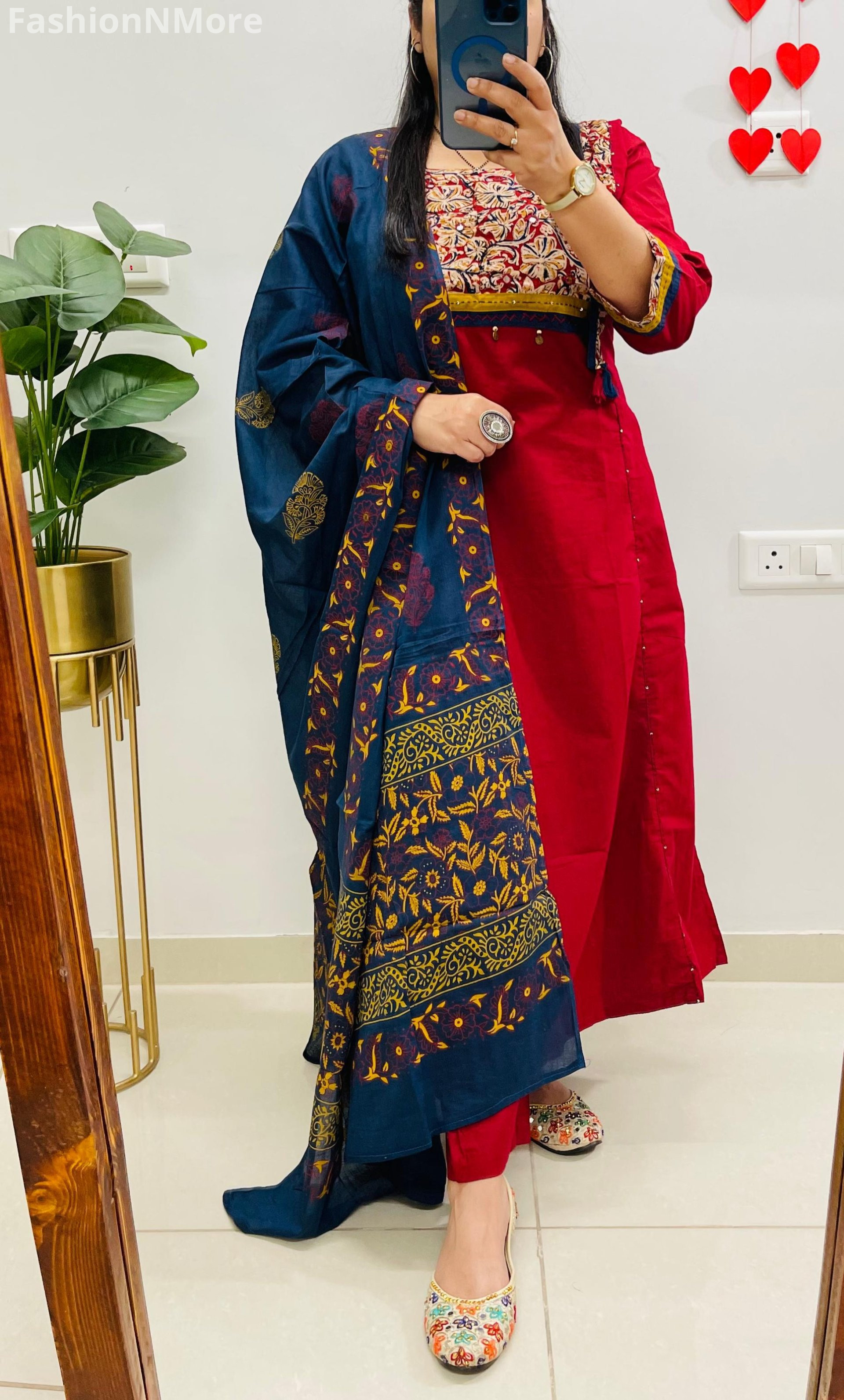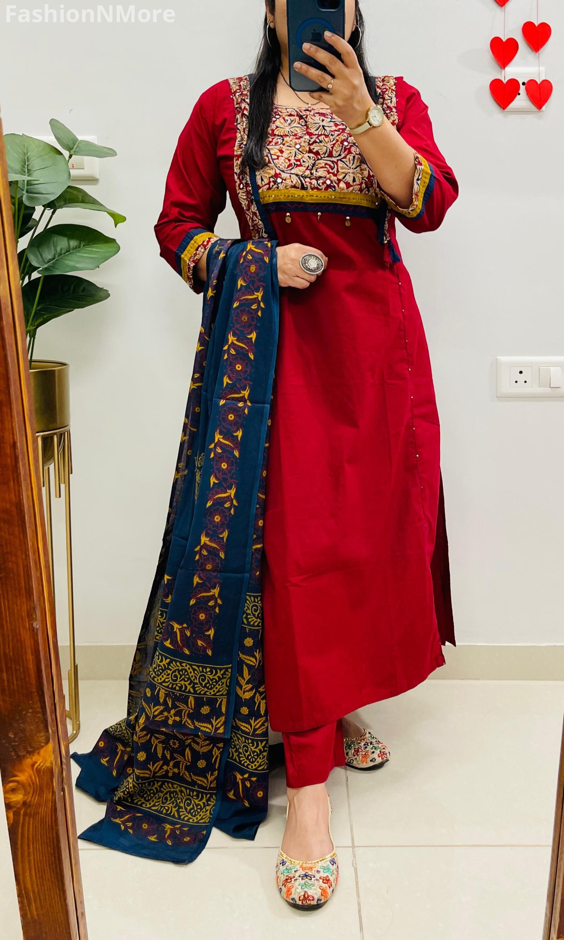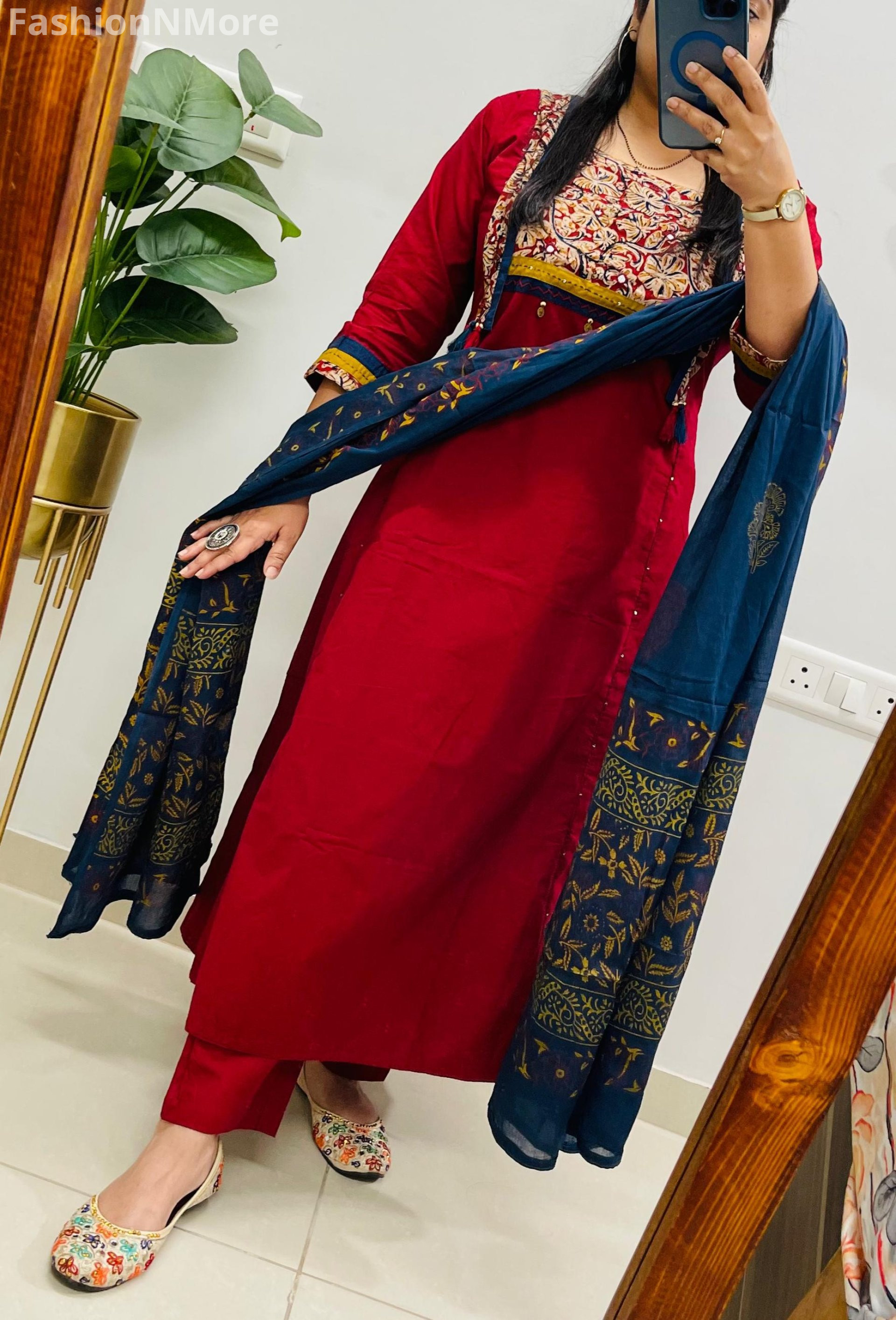 ✔️ Stylish Kurti–Pant–Dupatta Set in rich Dhabu cotton fabric