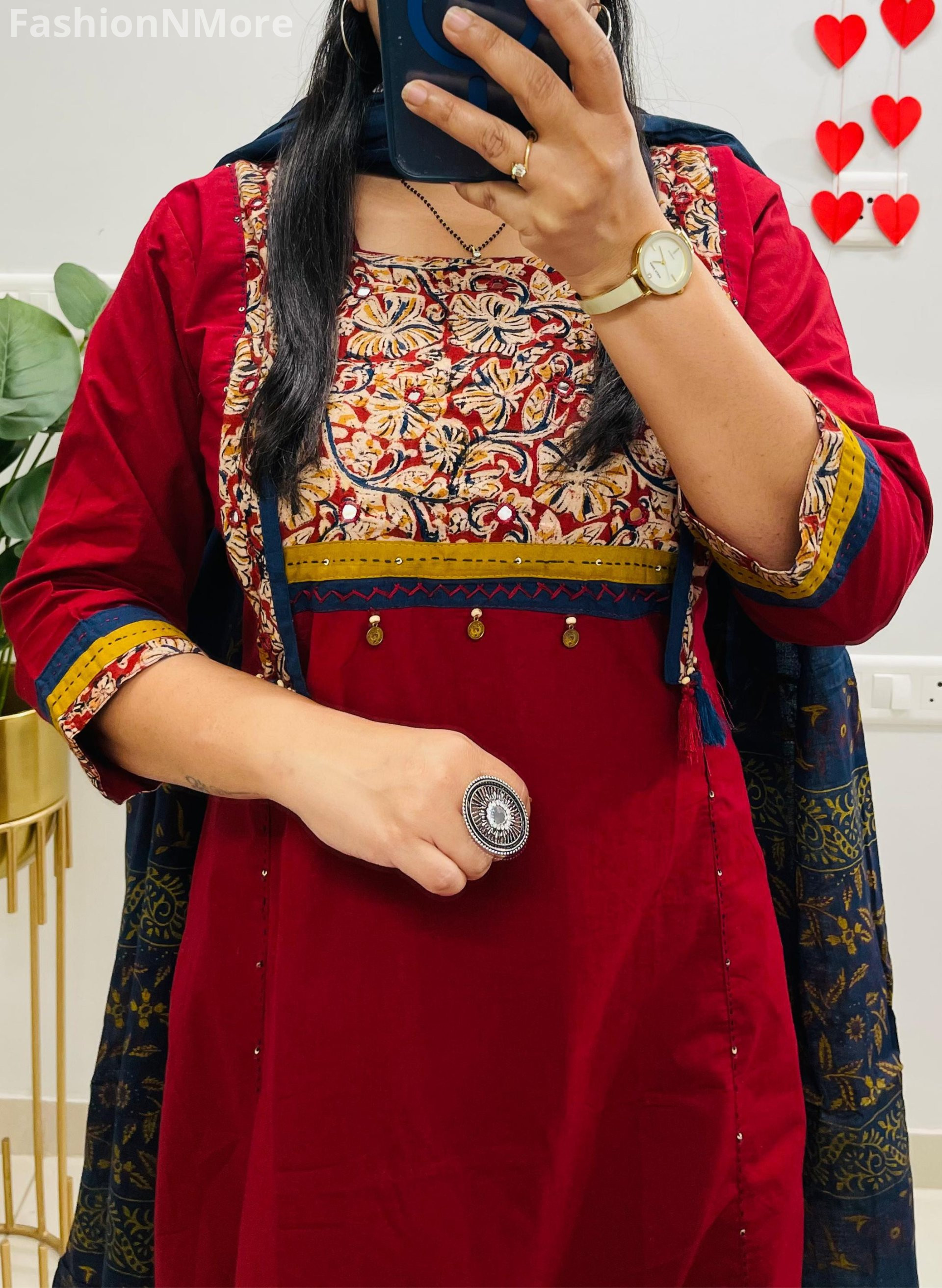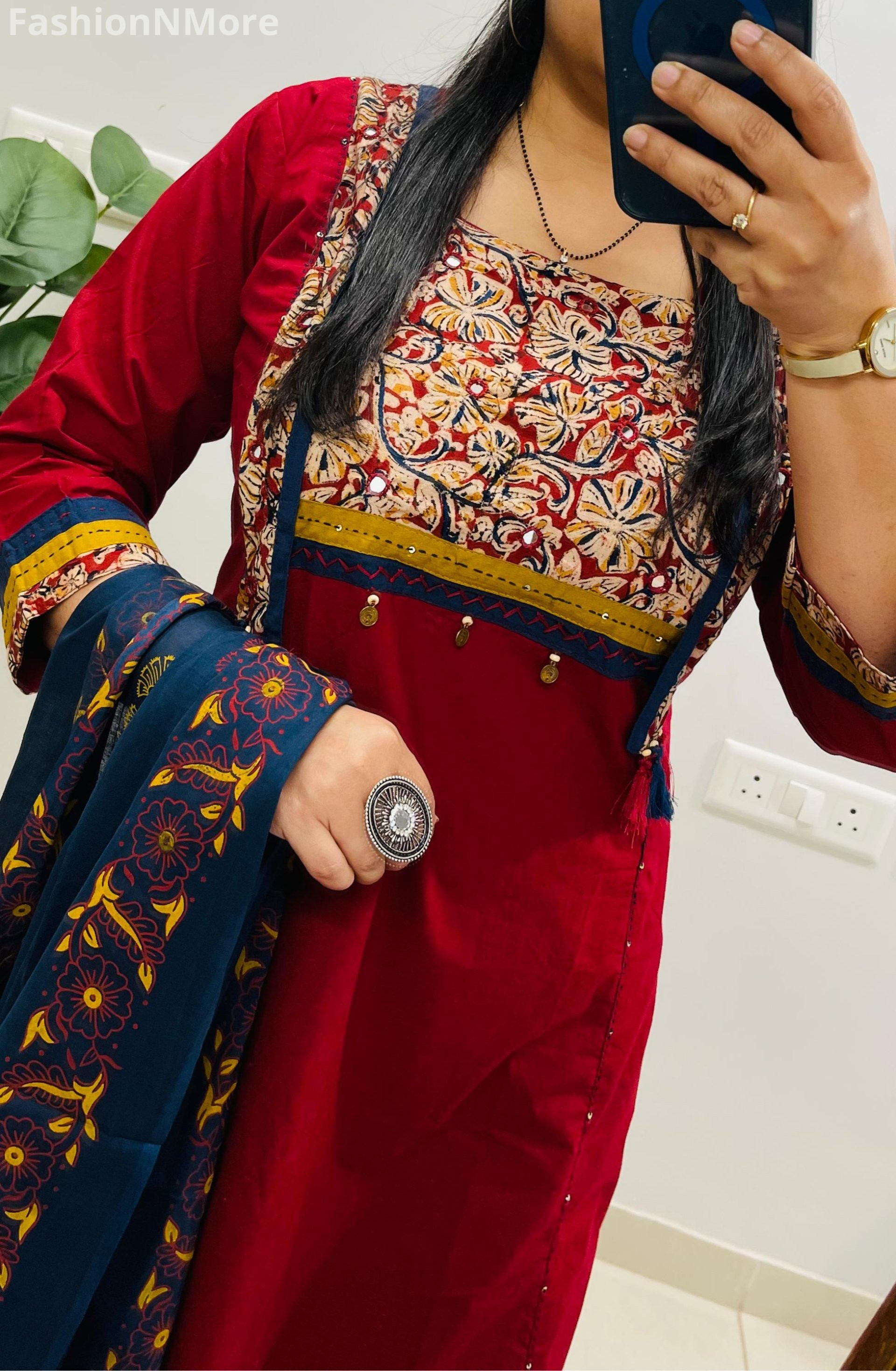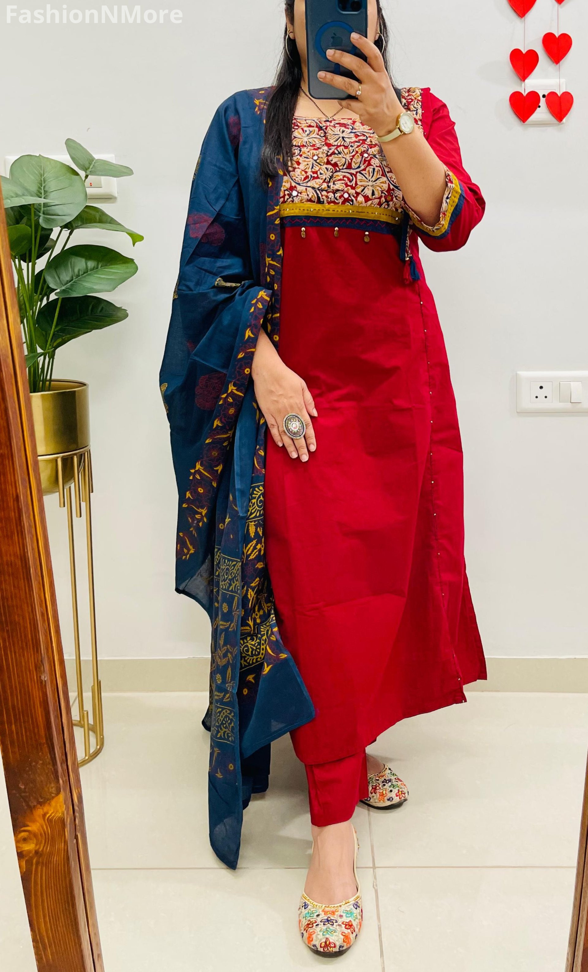 ✔️ Stylish Kurti–Pant–Dupatta Set in rich Dhabu cotton fabric