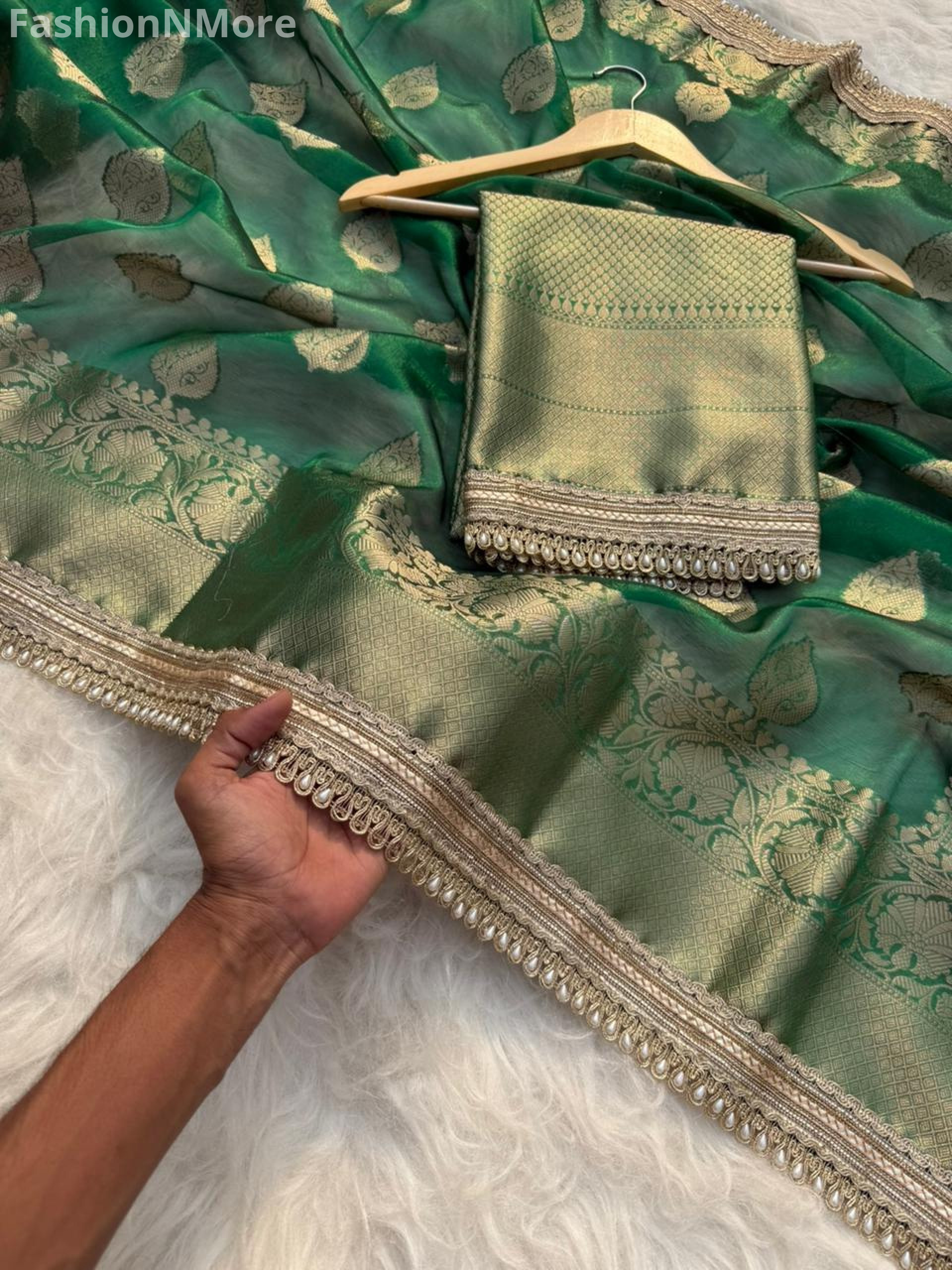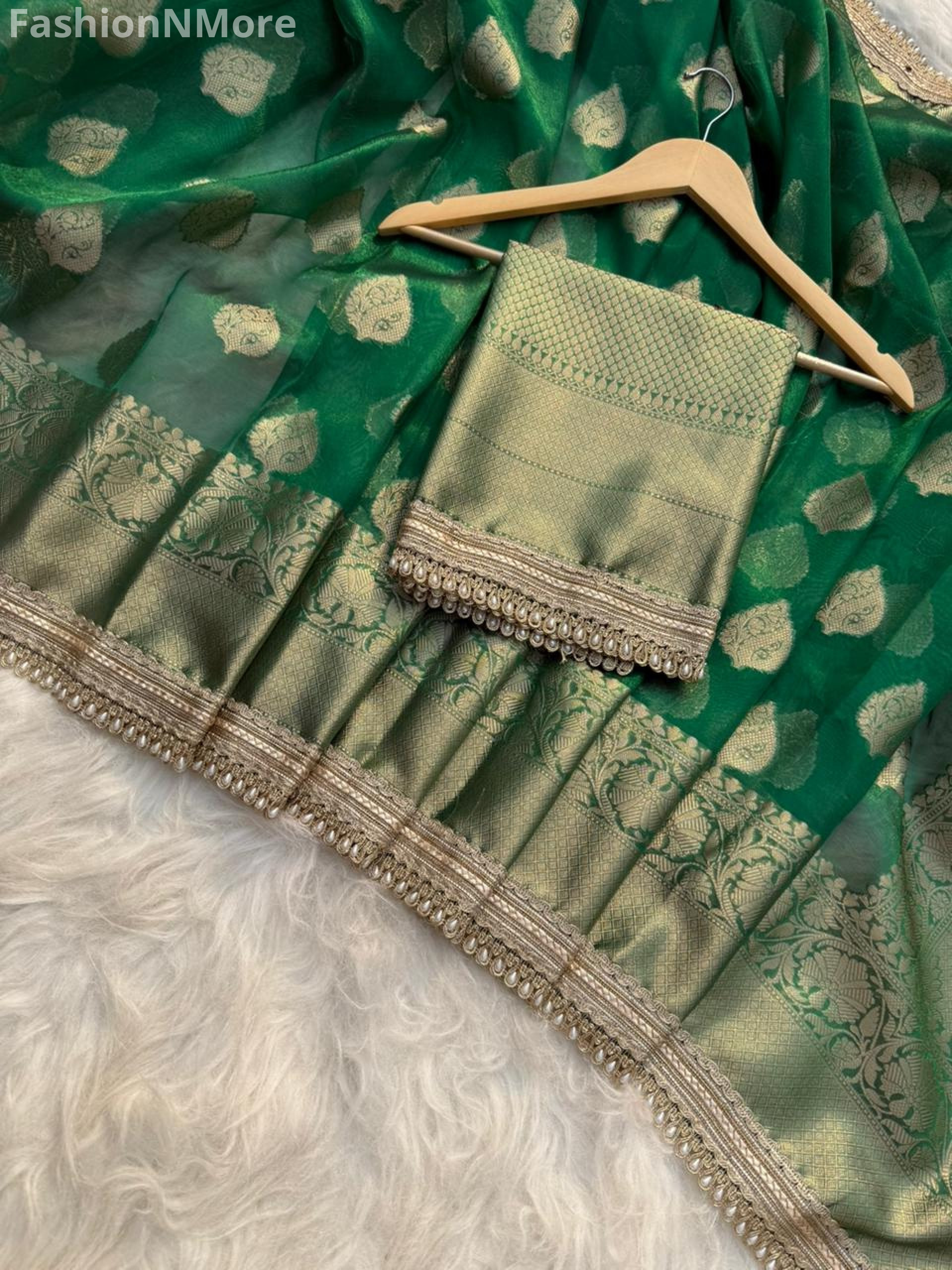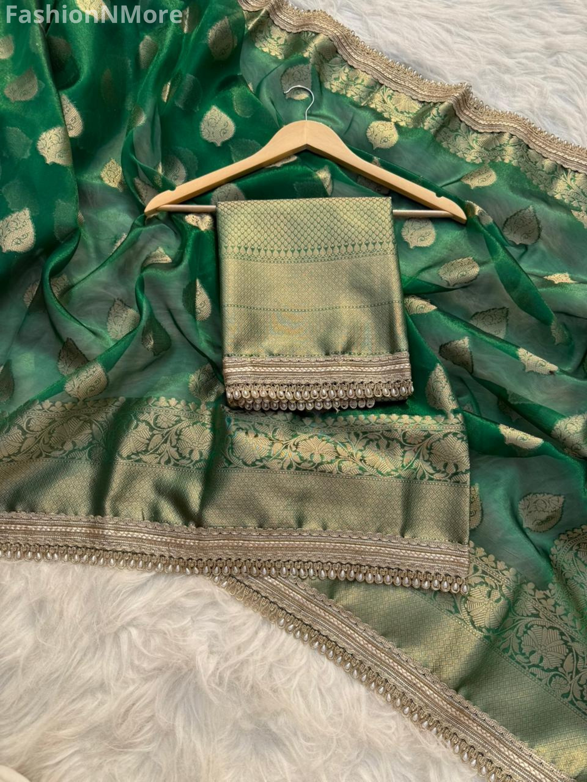 ✔ Classic Banarasi border enhanced with Kota patti lace detailing