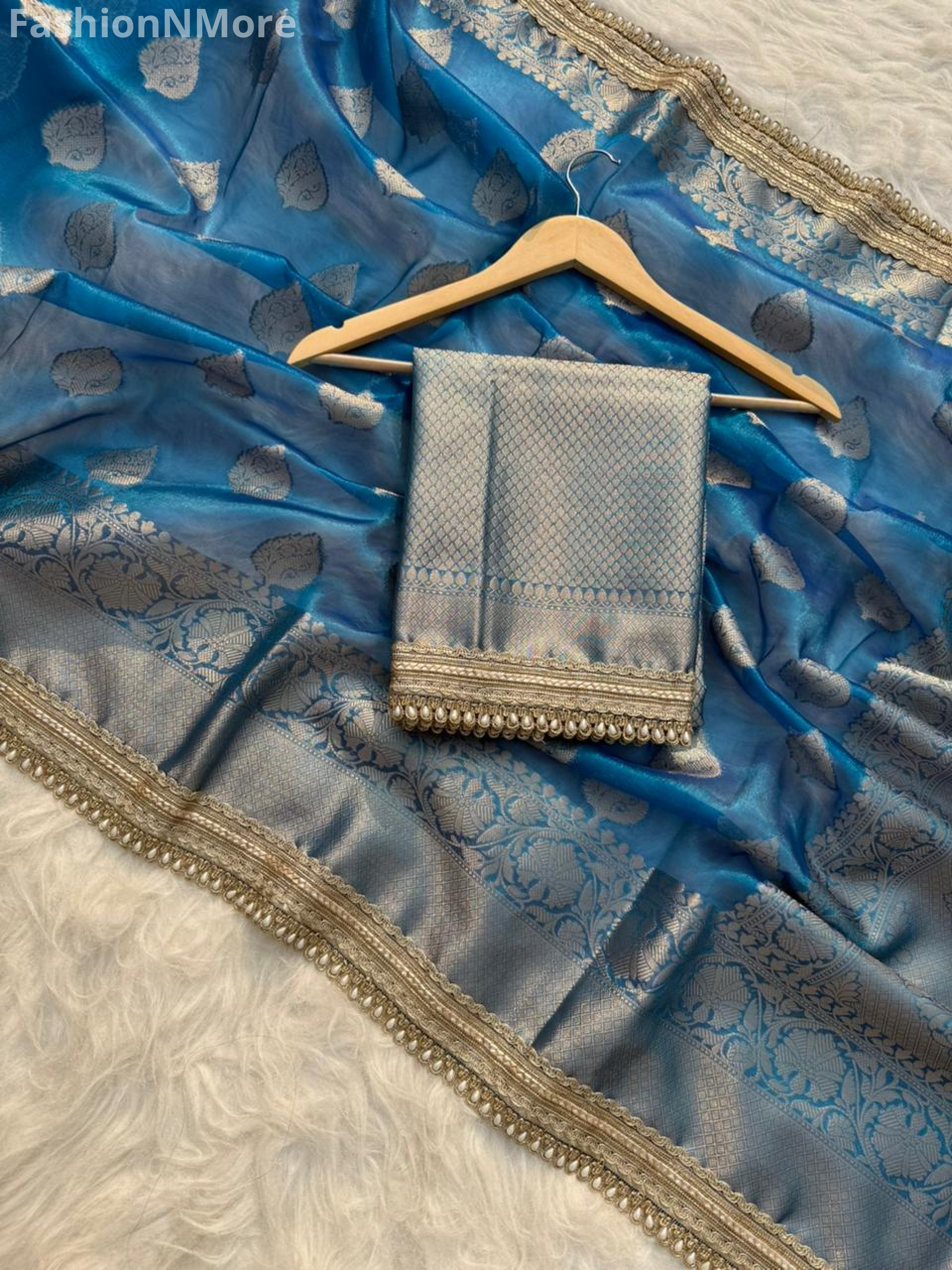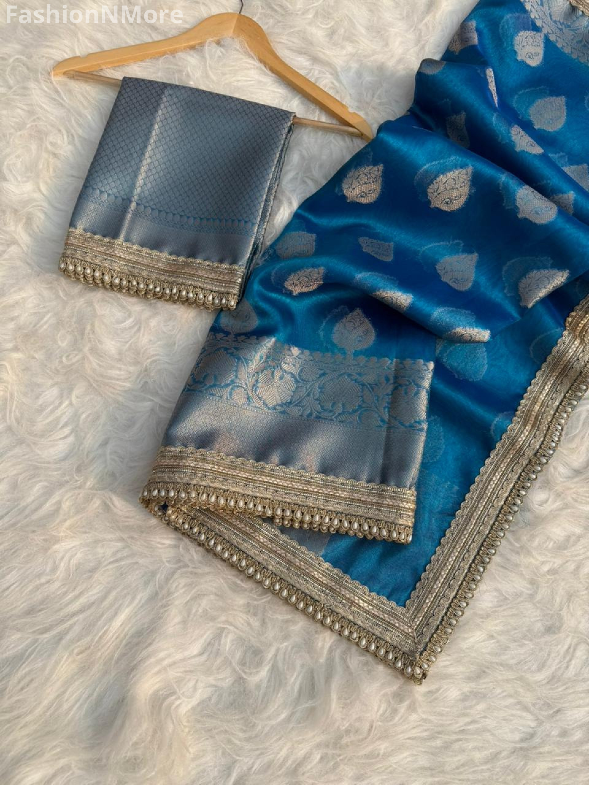 ✔ Classic Banarasi border enhanced with Kota patti lace detailing