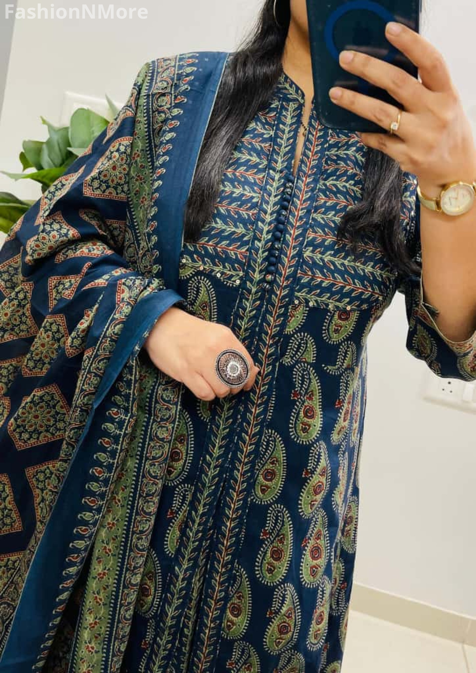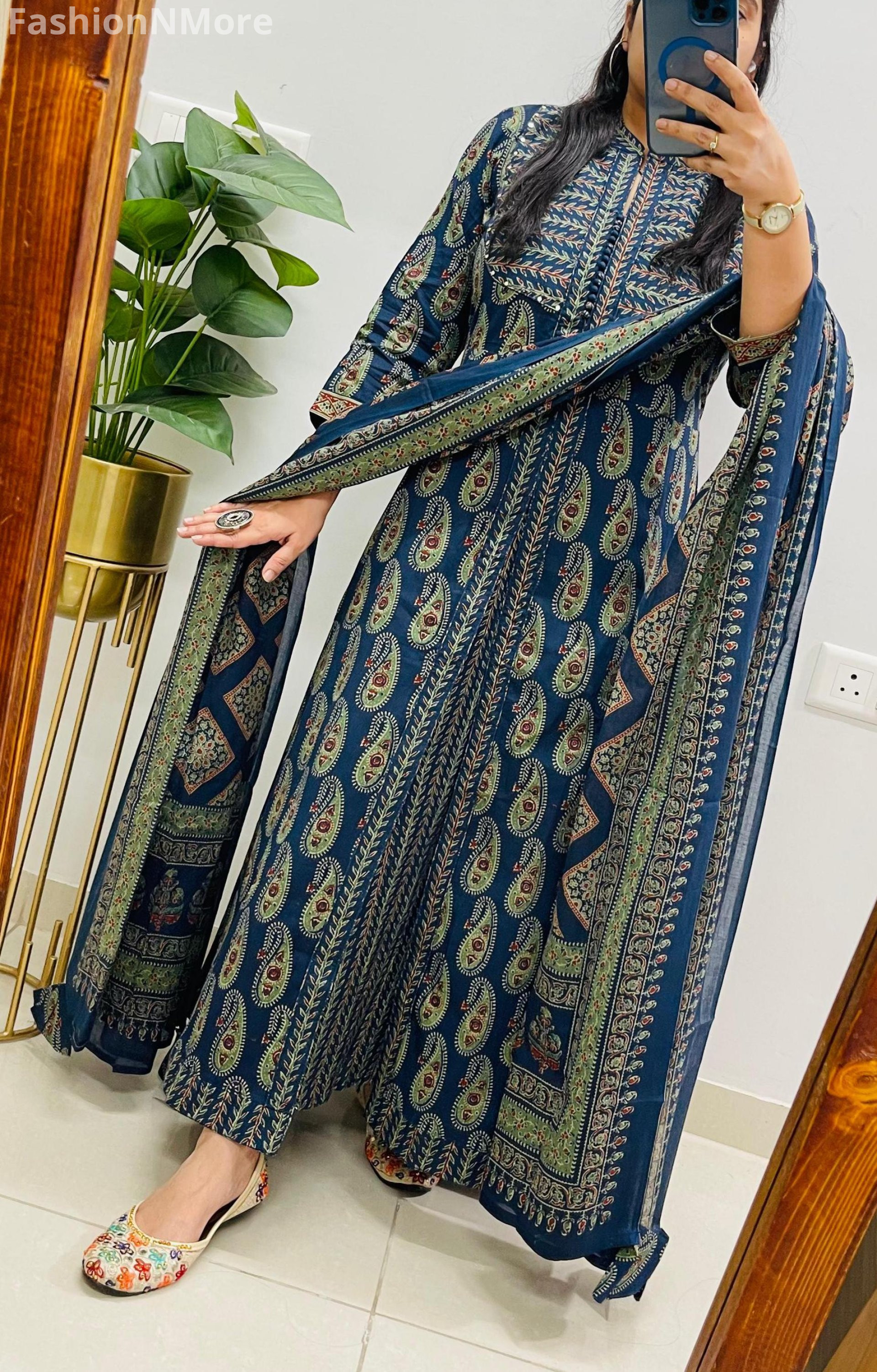 ✔️ Authentic Jaipuri Ajrakh Print for a rich and traditional ethnic look