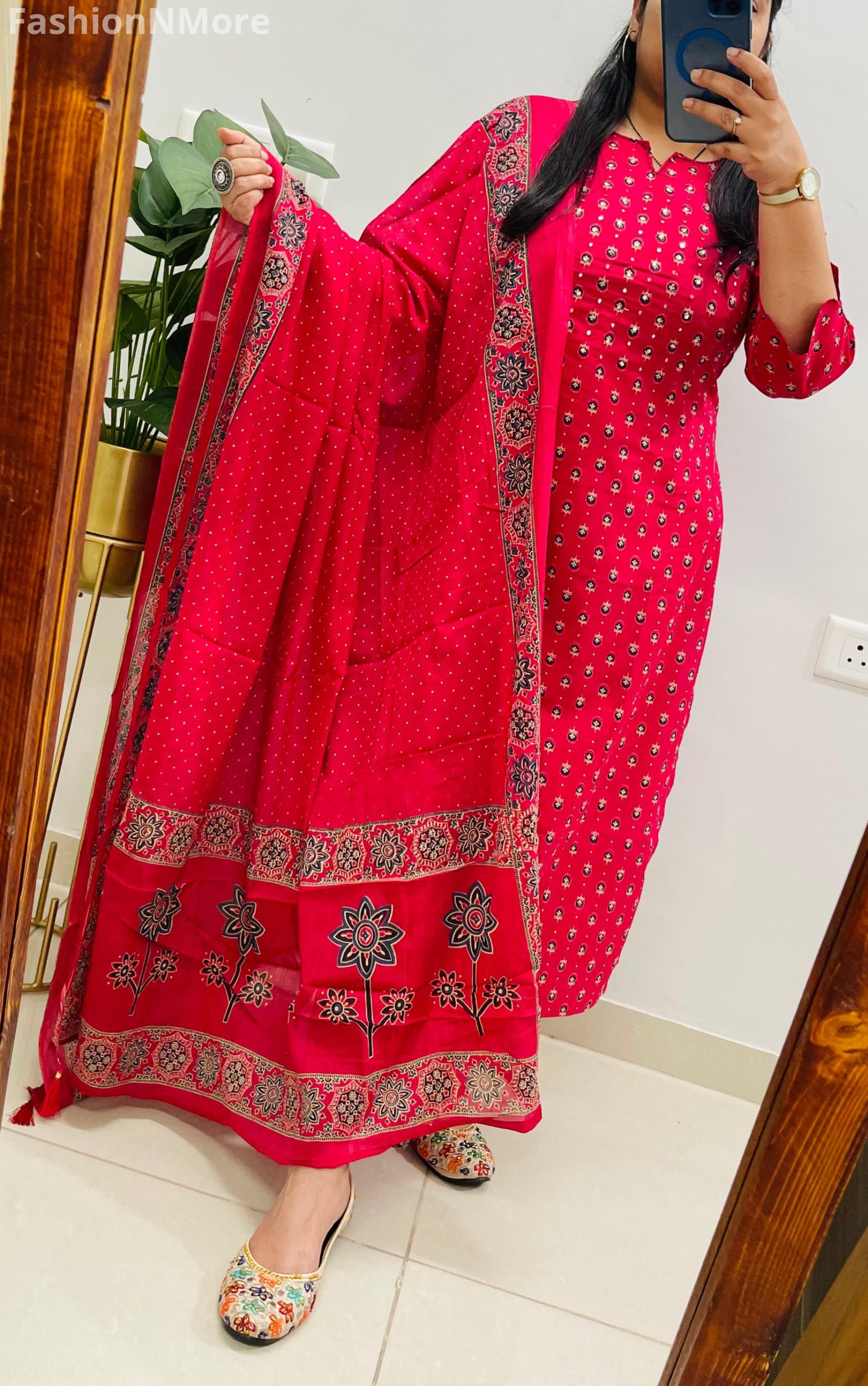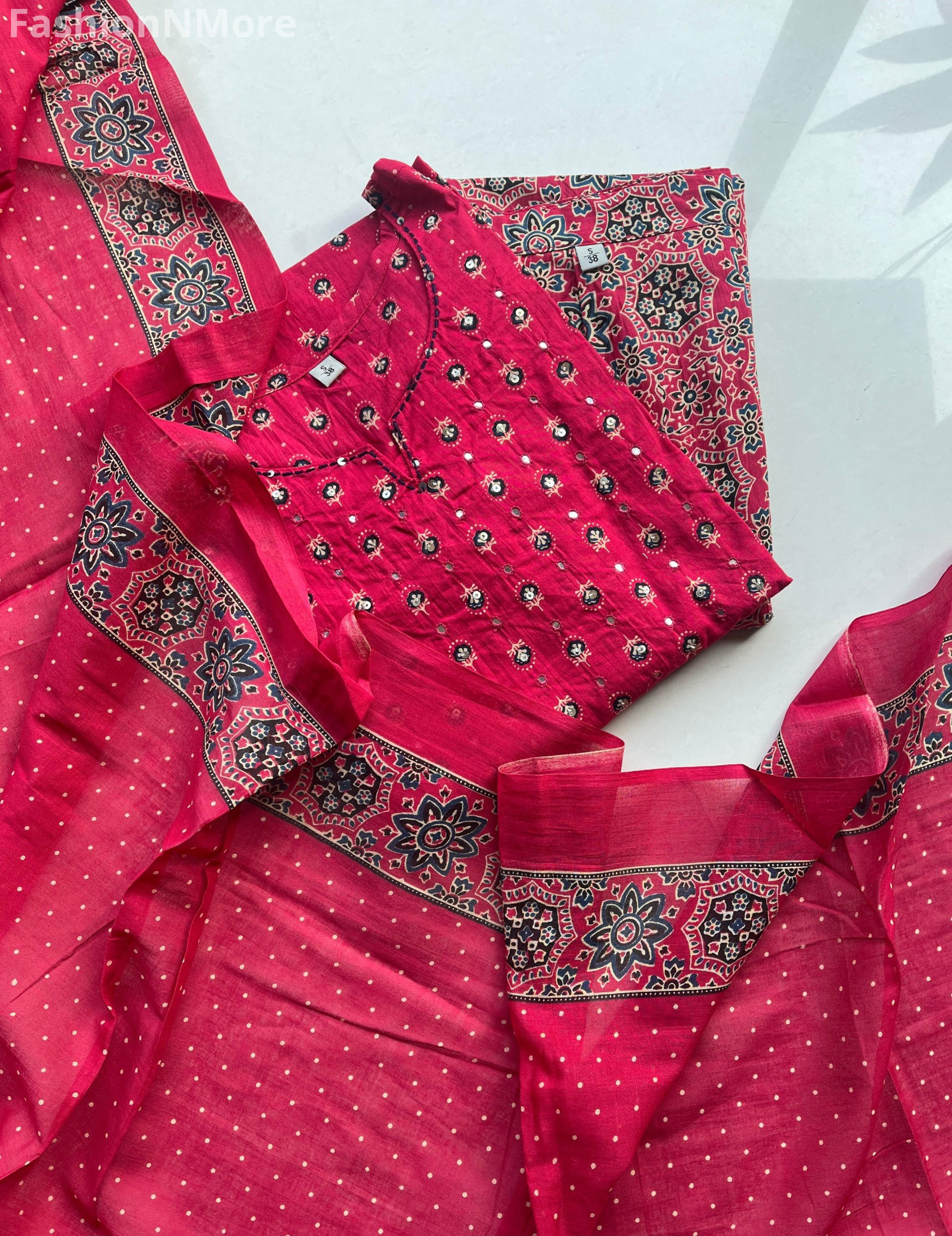 ✔️ Authentic Ajrakh print showcasing timeless Indian artistry