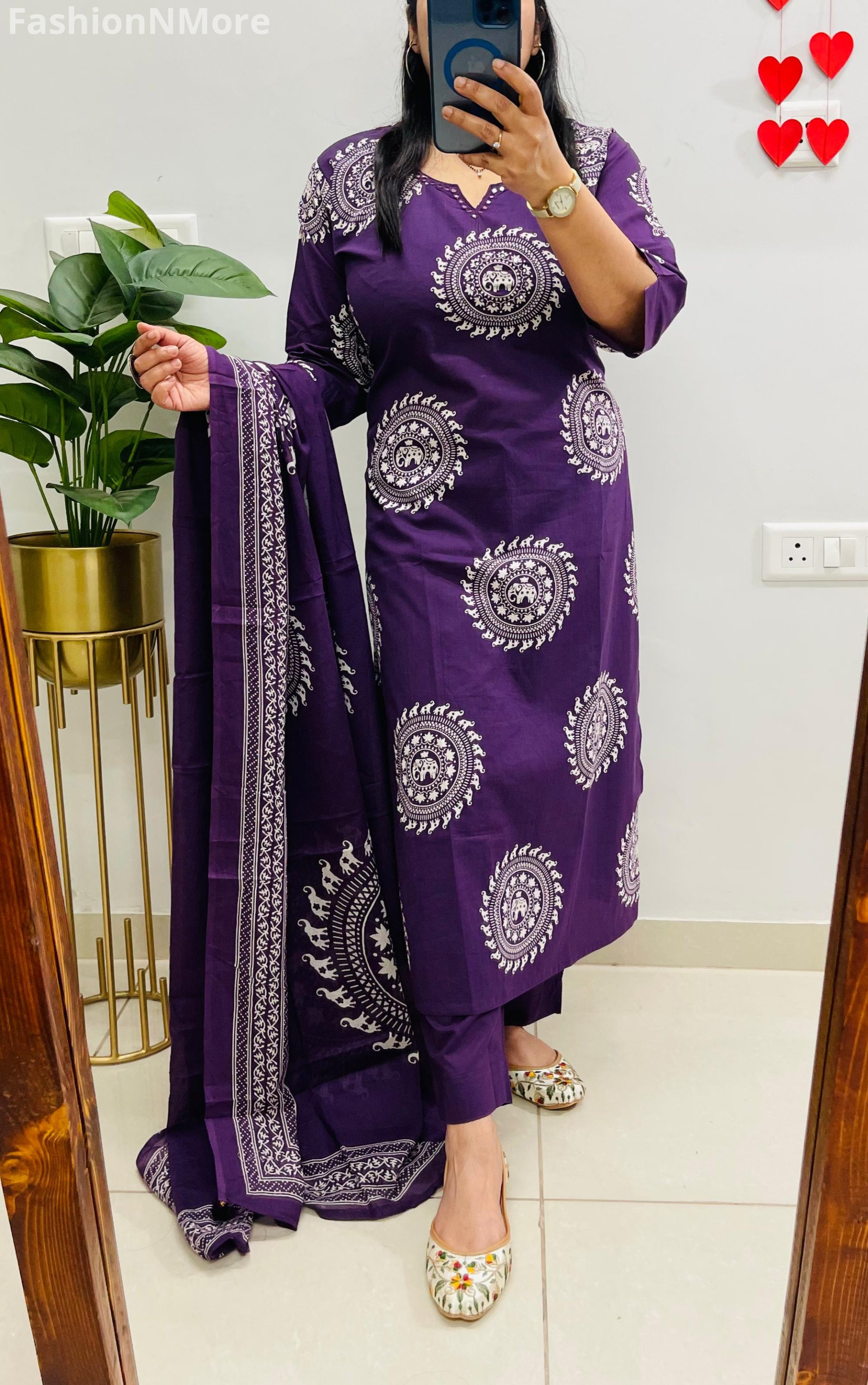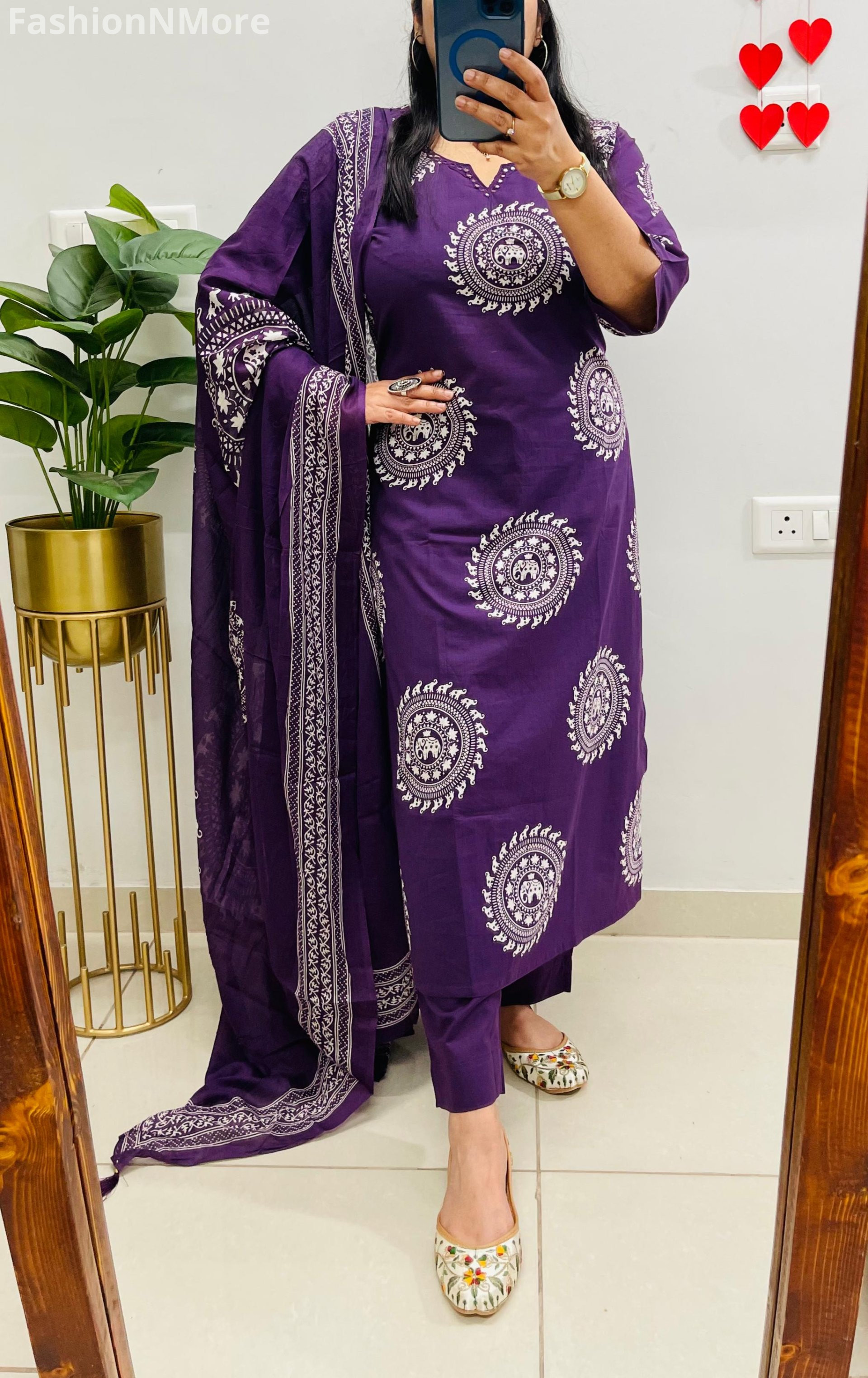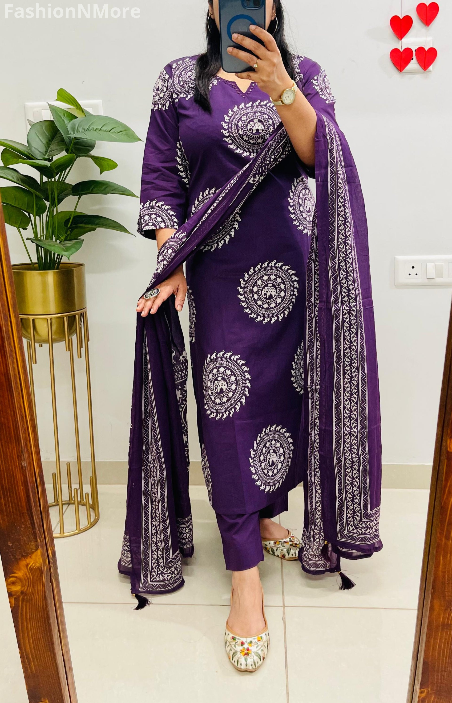 ✔ Matching fine cotton dupatta with stylish tassels on corners