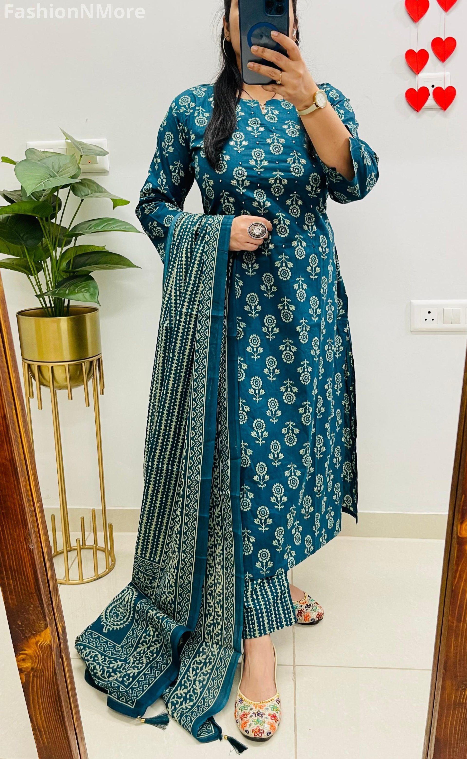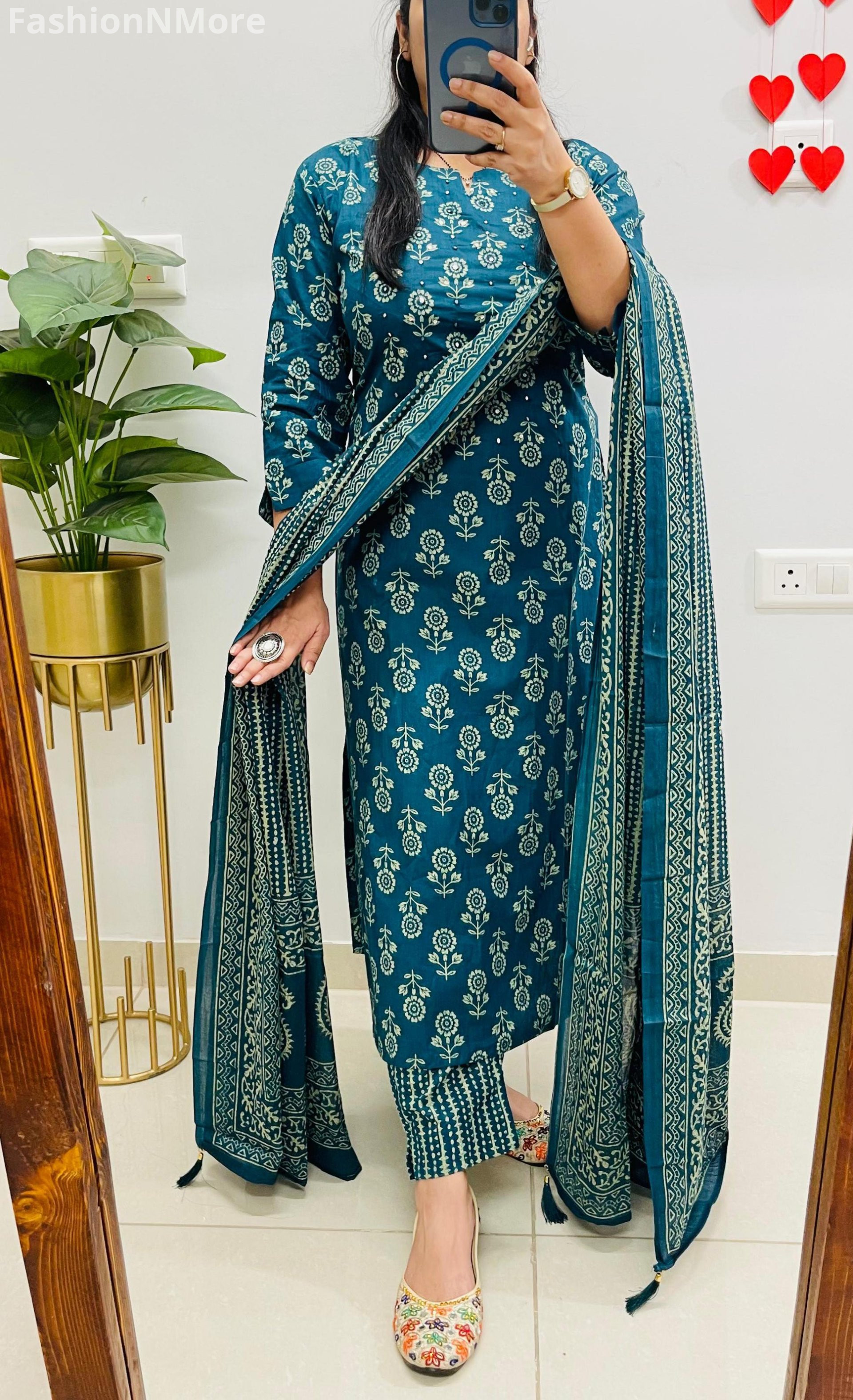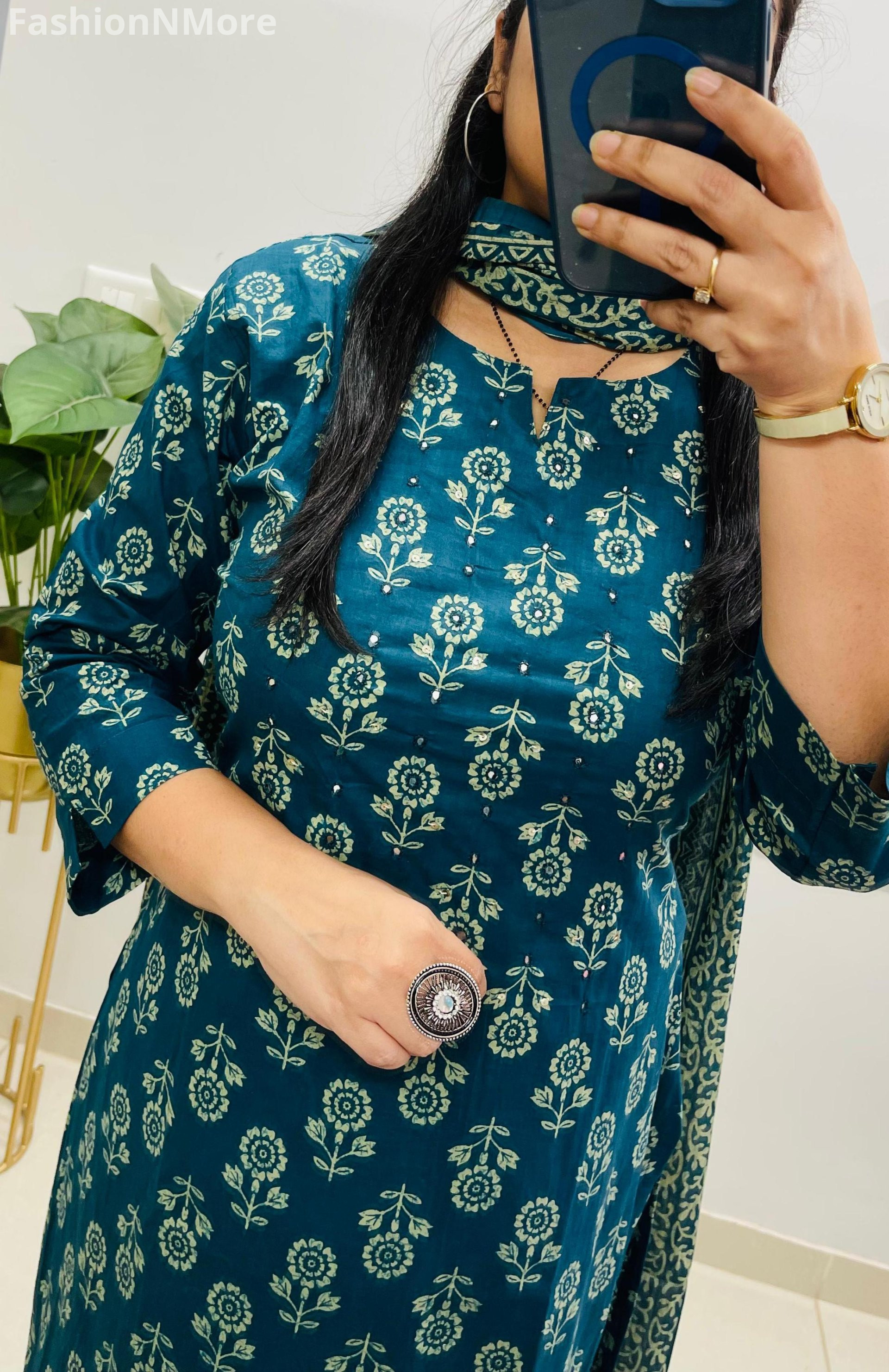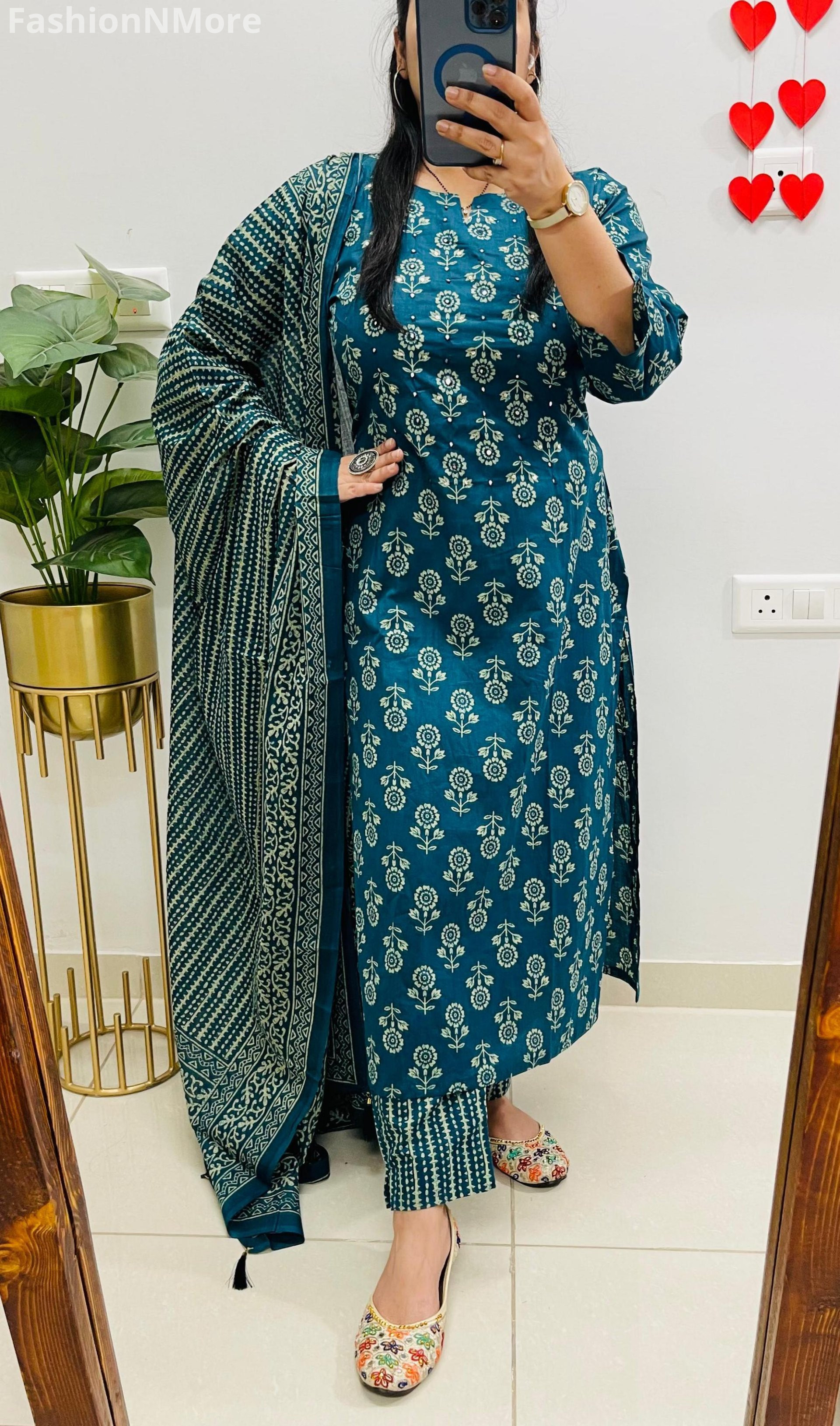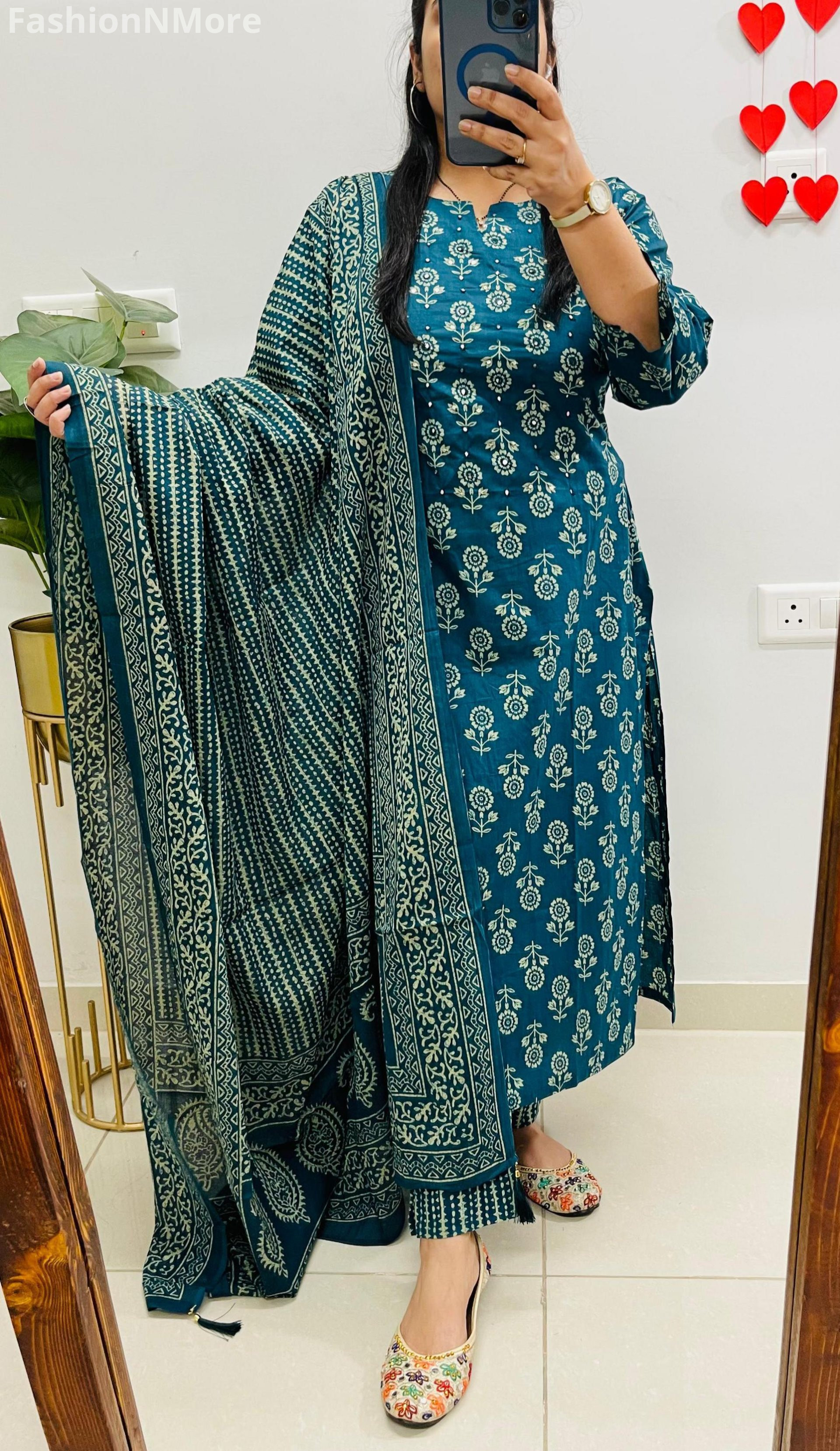 ✔️ Mughal/Kalamkari Fusion Azrak Bagru Print for a rich traditional look