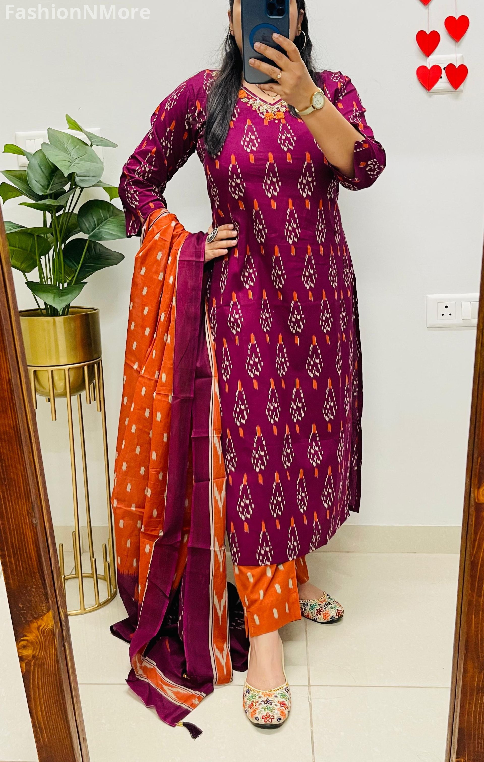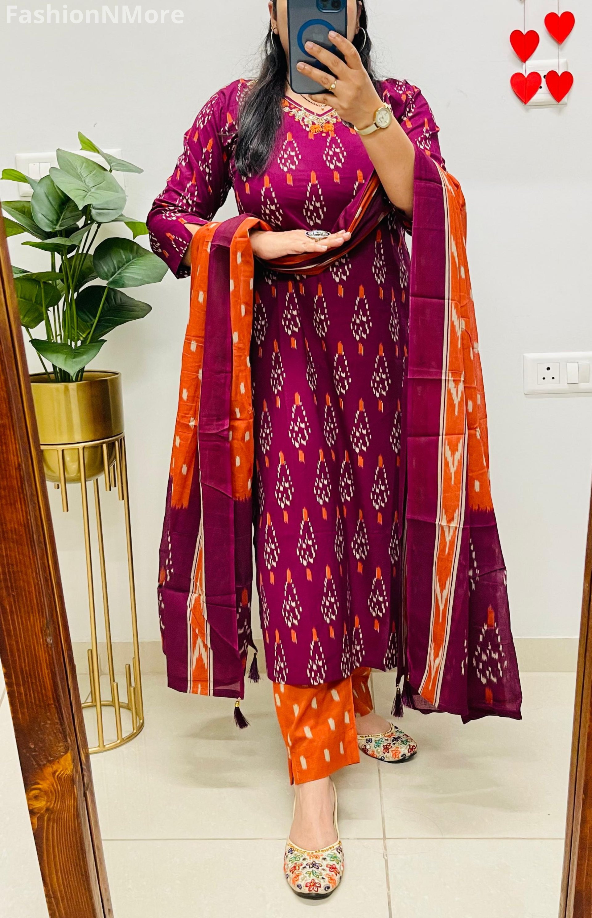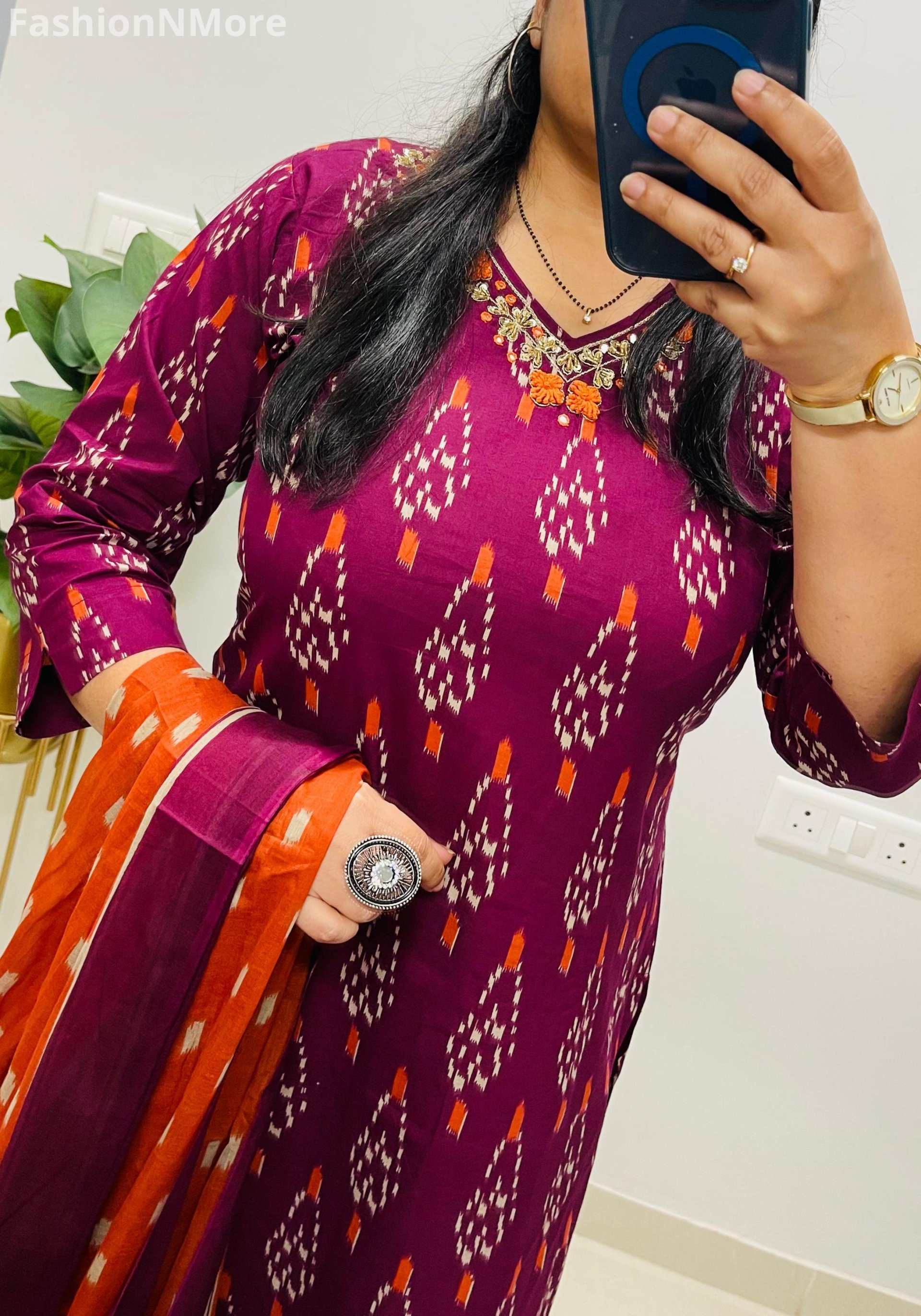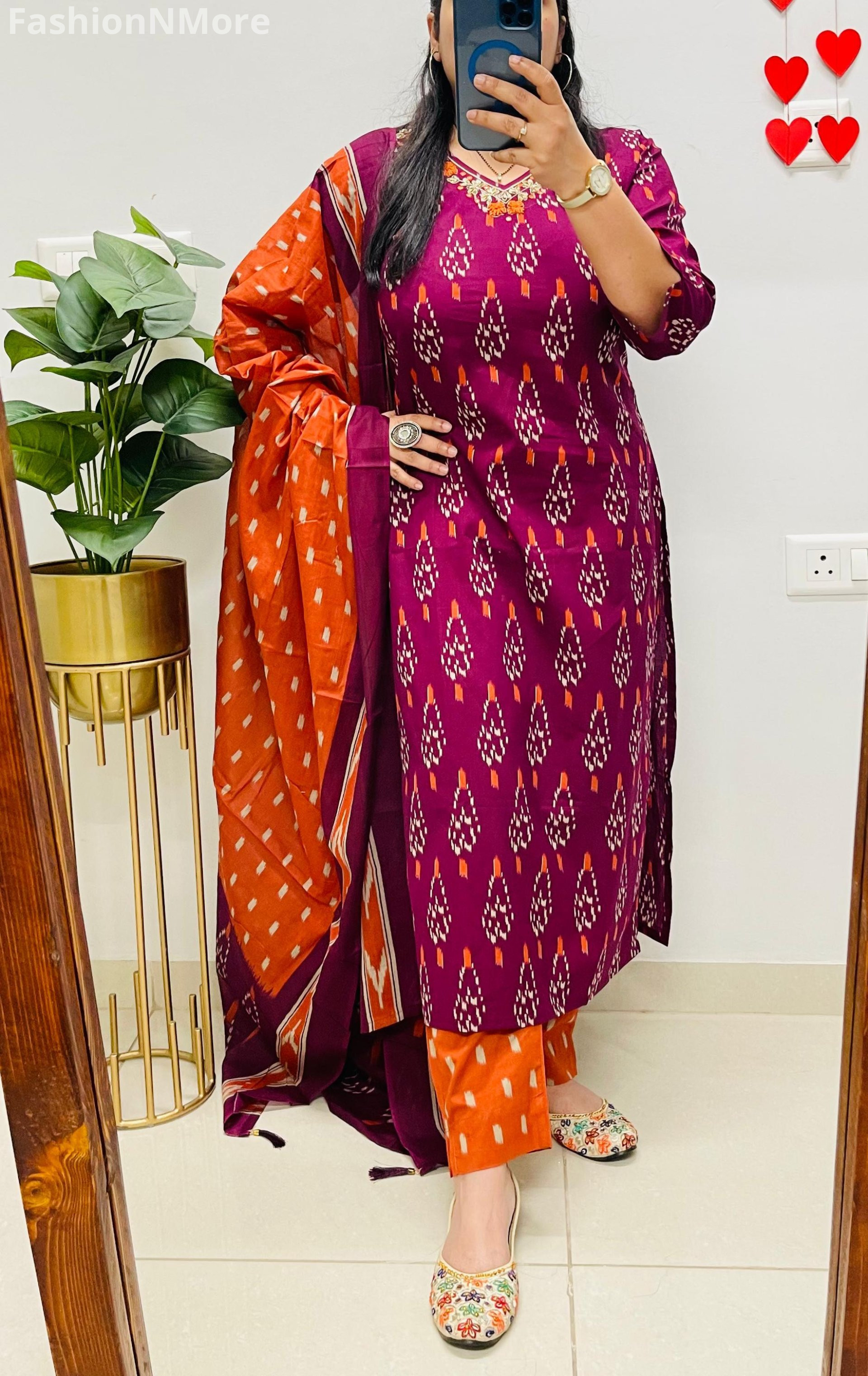 ✔️ Beautiful Designer V Neck Cotton Suit in premium fine cotton for ultimate comfort and elegance