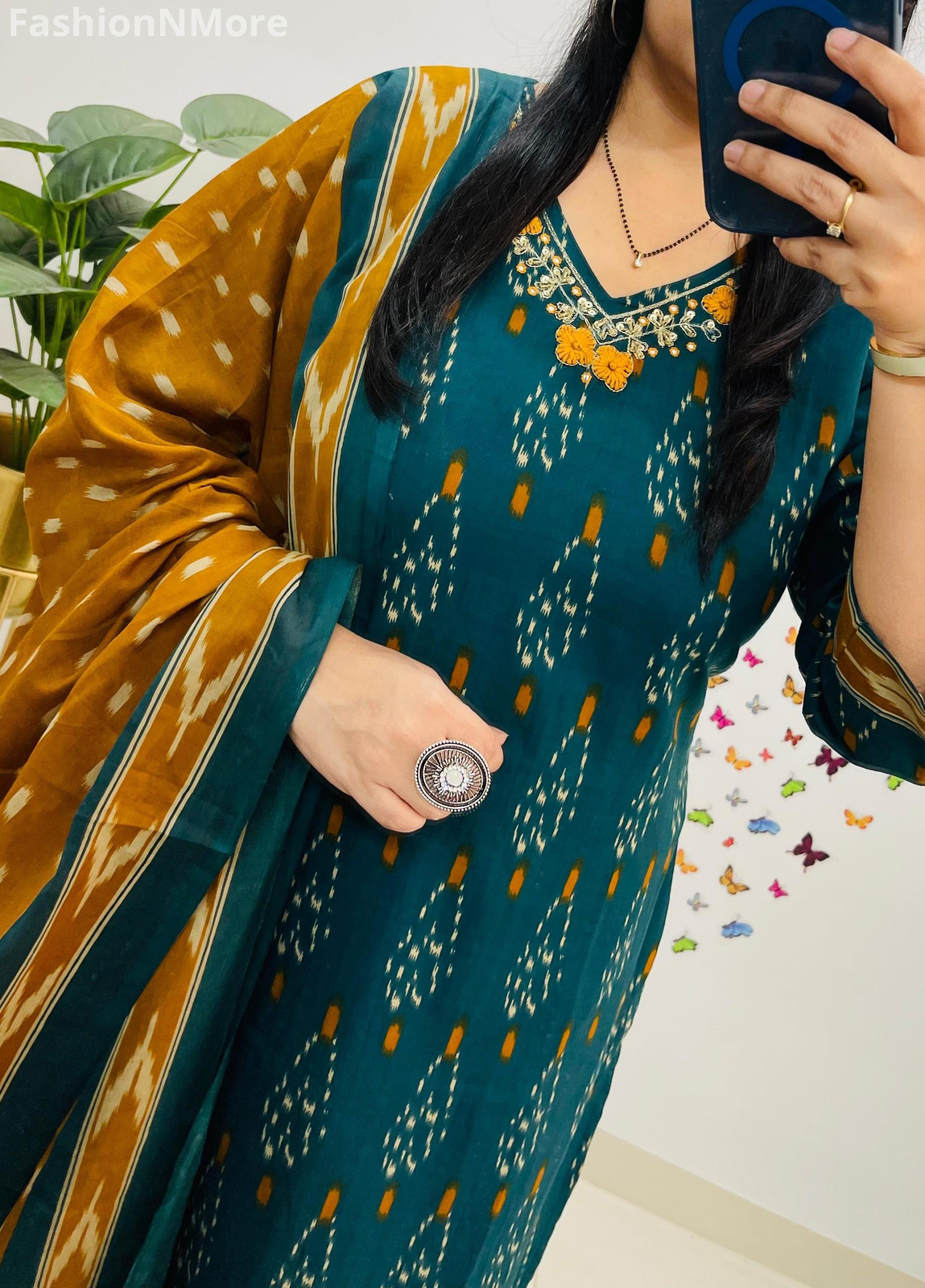 ✔️ Unique Mughal–Kalamkari Fusion Azrak Bagru Print adds a rich ethnic charm