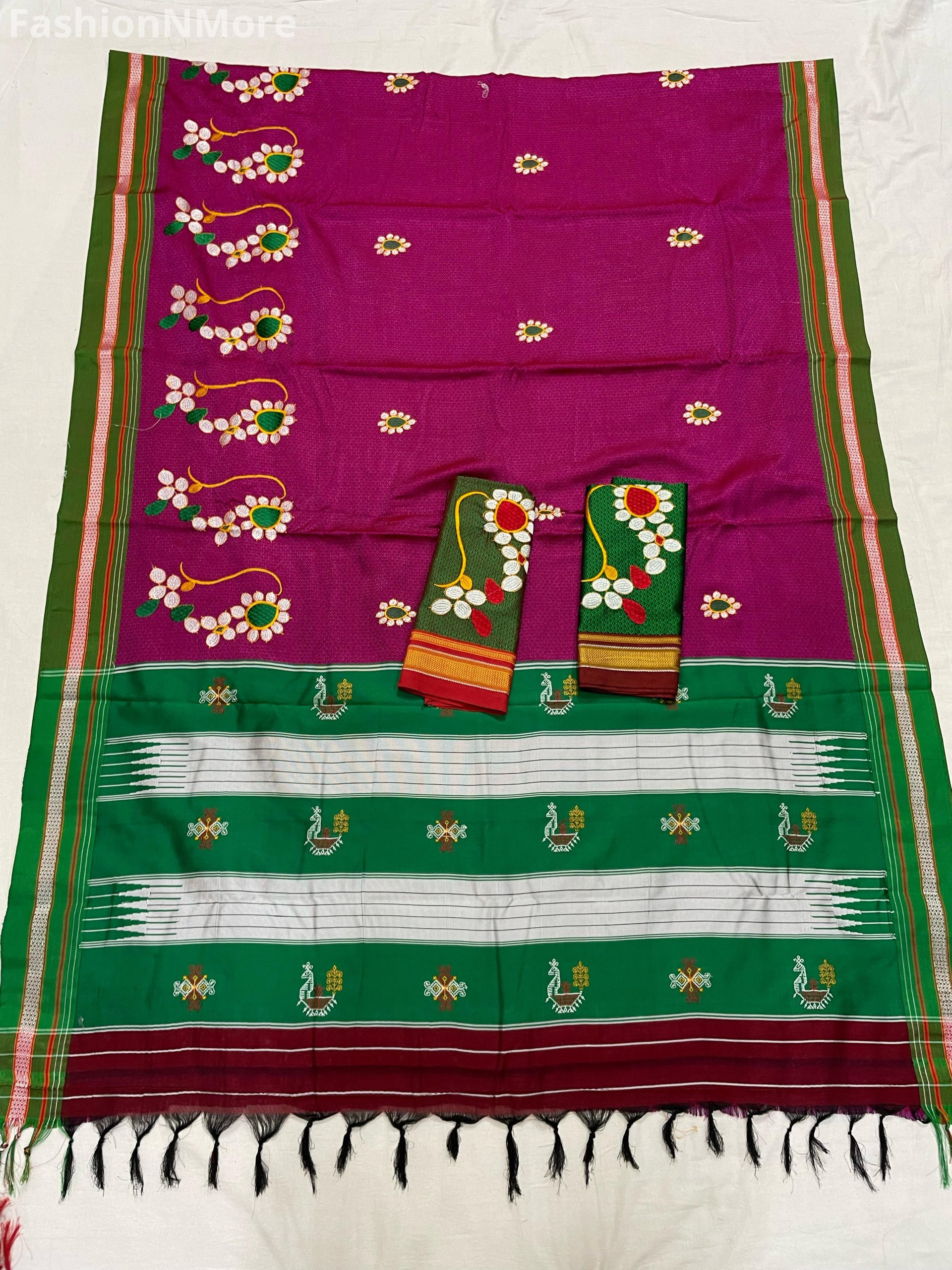 Combo of Khun saree with Naath embroidery & extra contrast Blouse pc