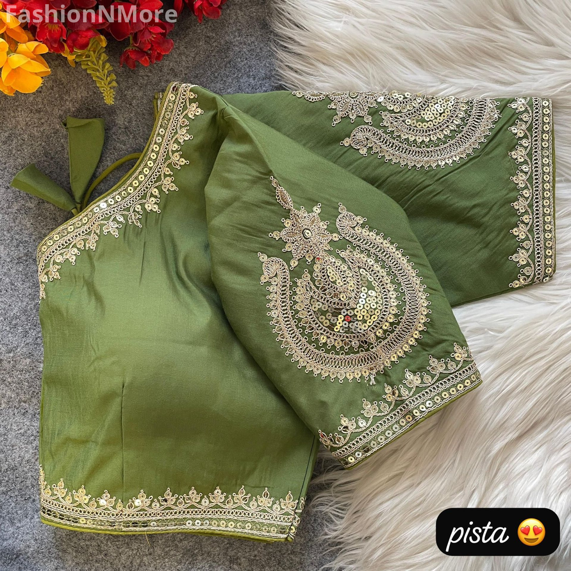 Embroidery & Sequence Work Roman Silk Bridal Designer Blouse