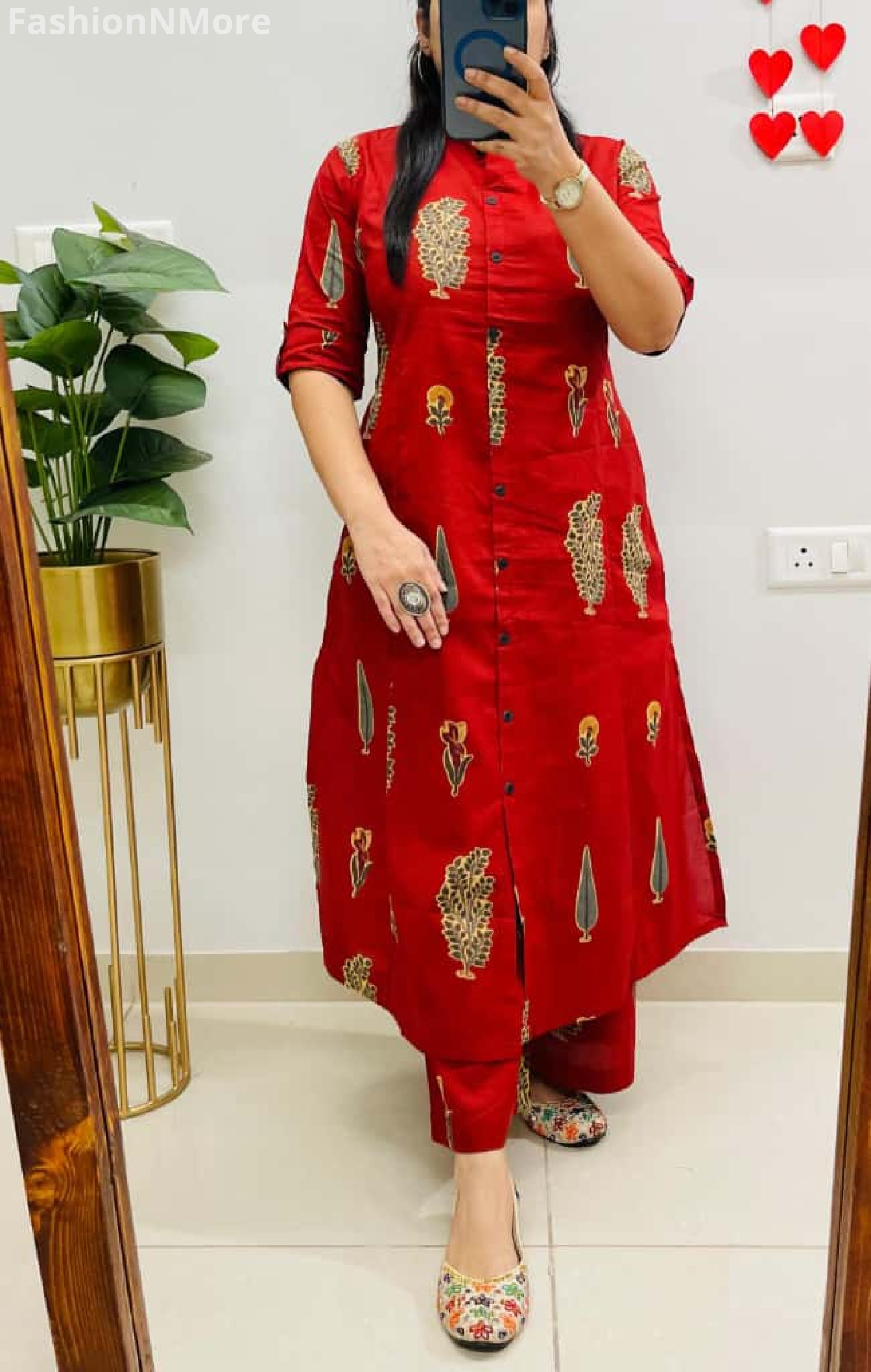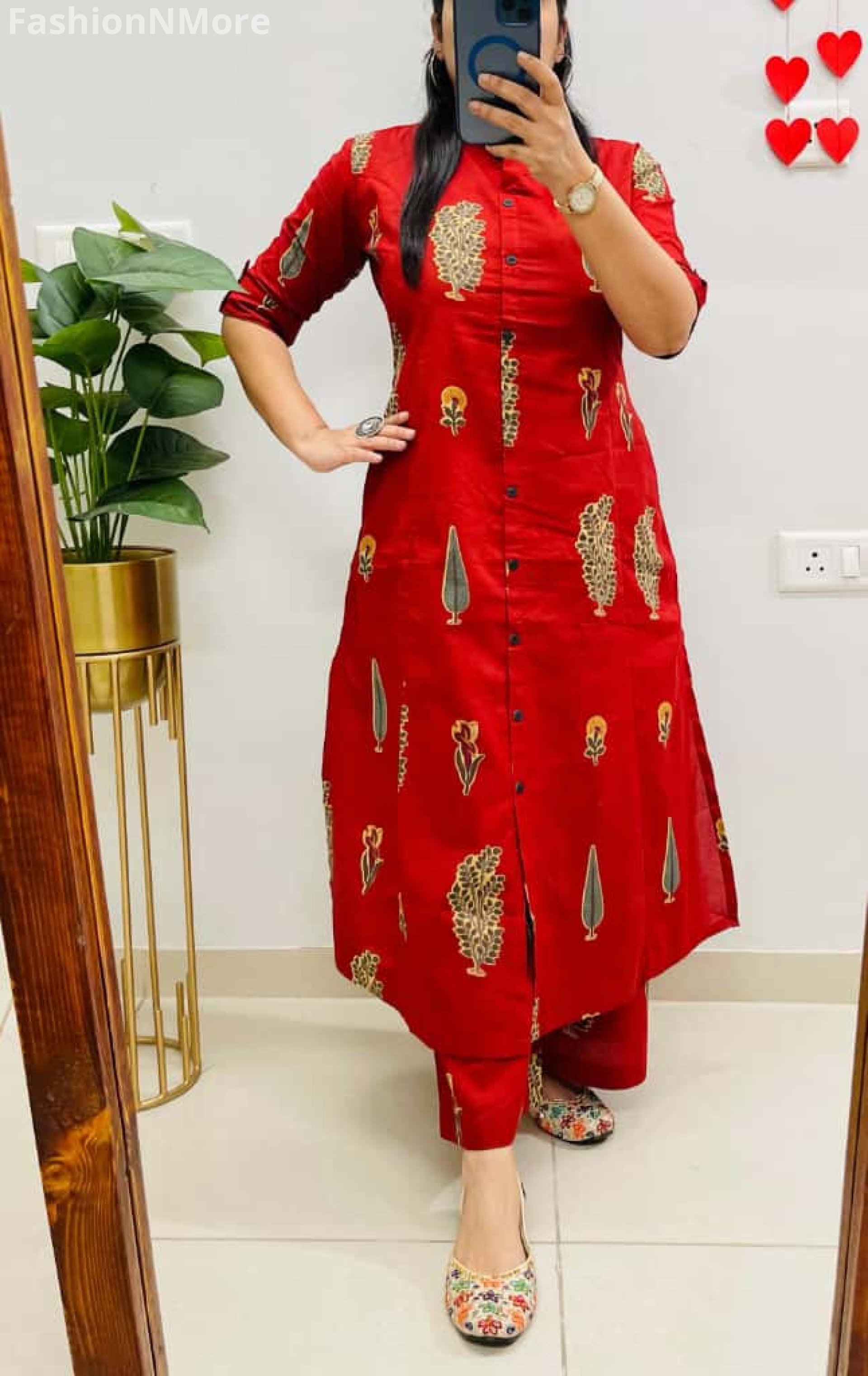 ✔️ A-line Kurti pattern paired with Matching Pant for a smart, graceful silhouette