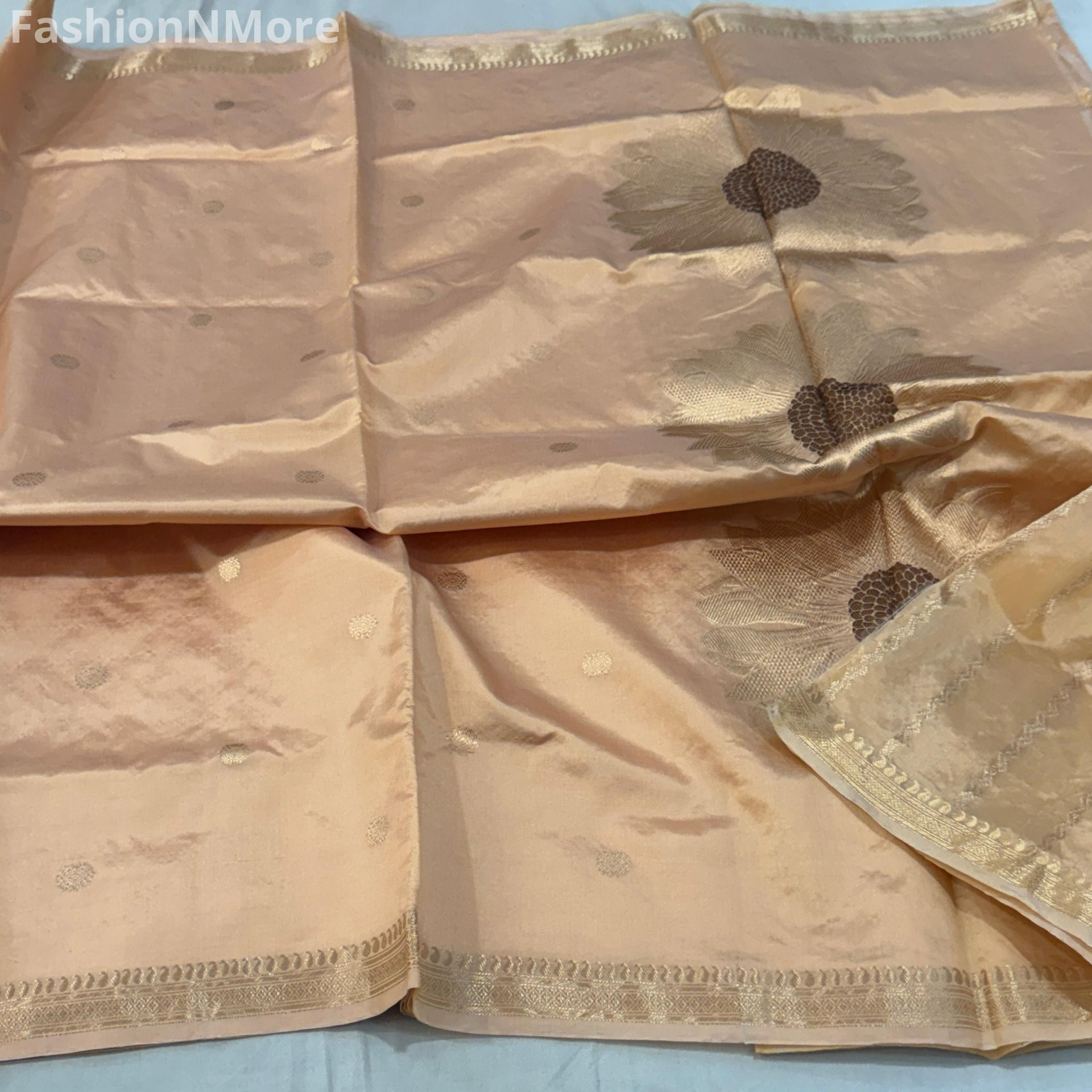 Handwoven Banaras Pure Katan Silk Saree – Copper Zari Brocade