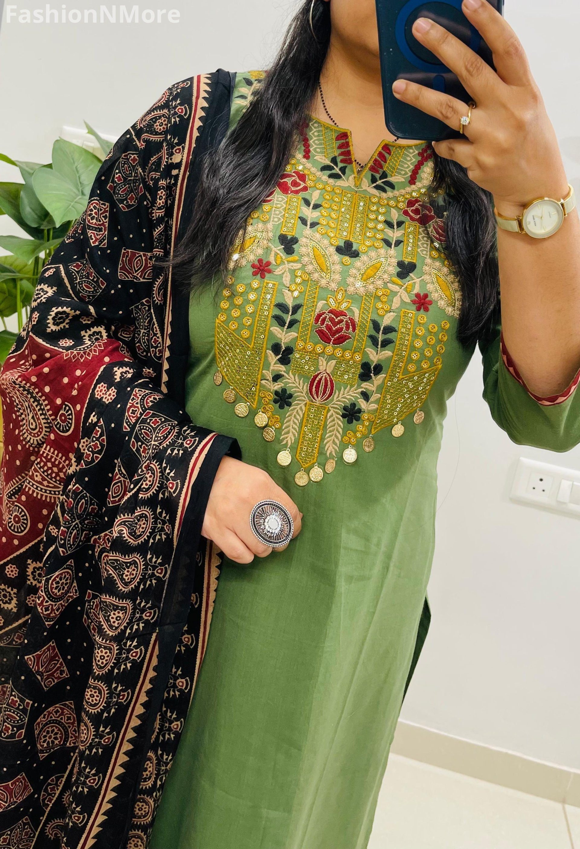 ✔️ Fine cotton dupatta complements the outfit beautifully