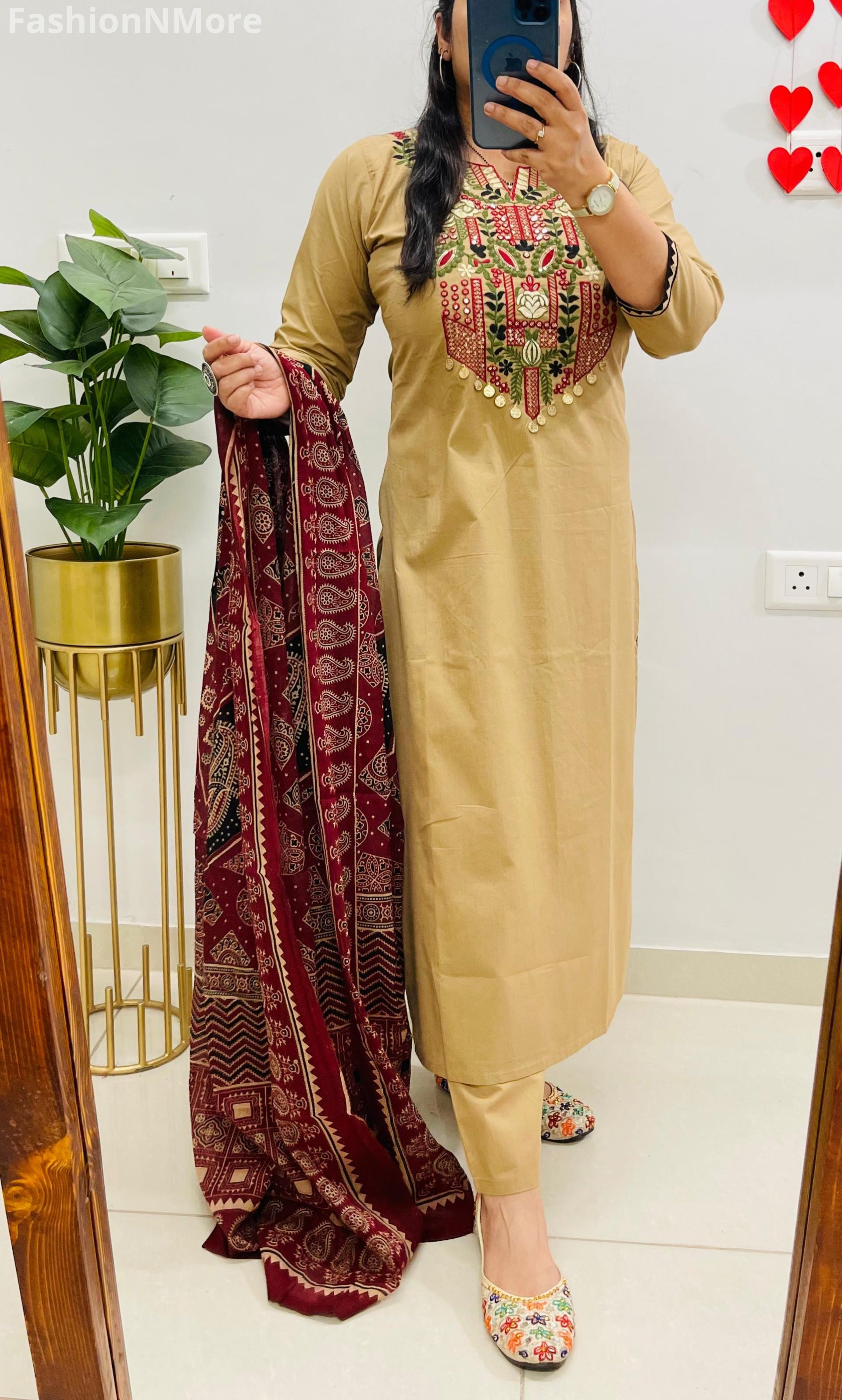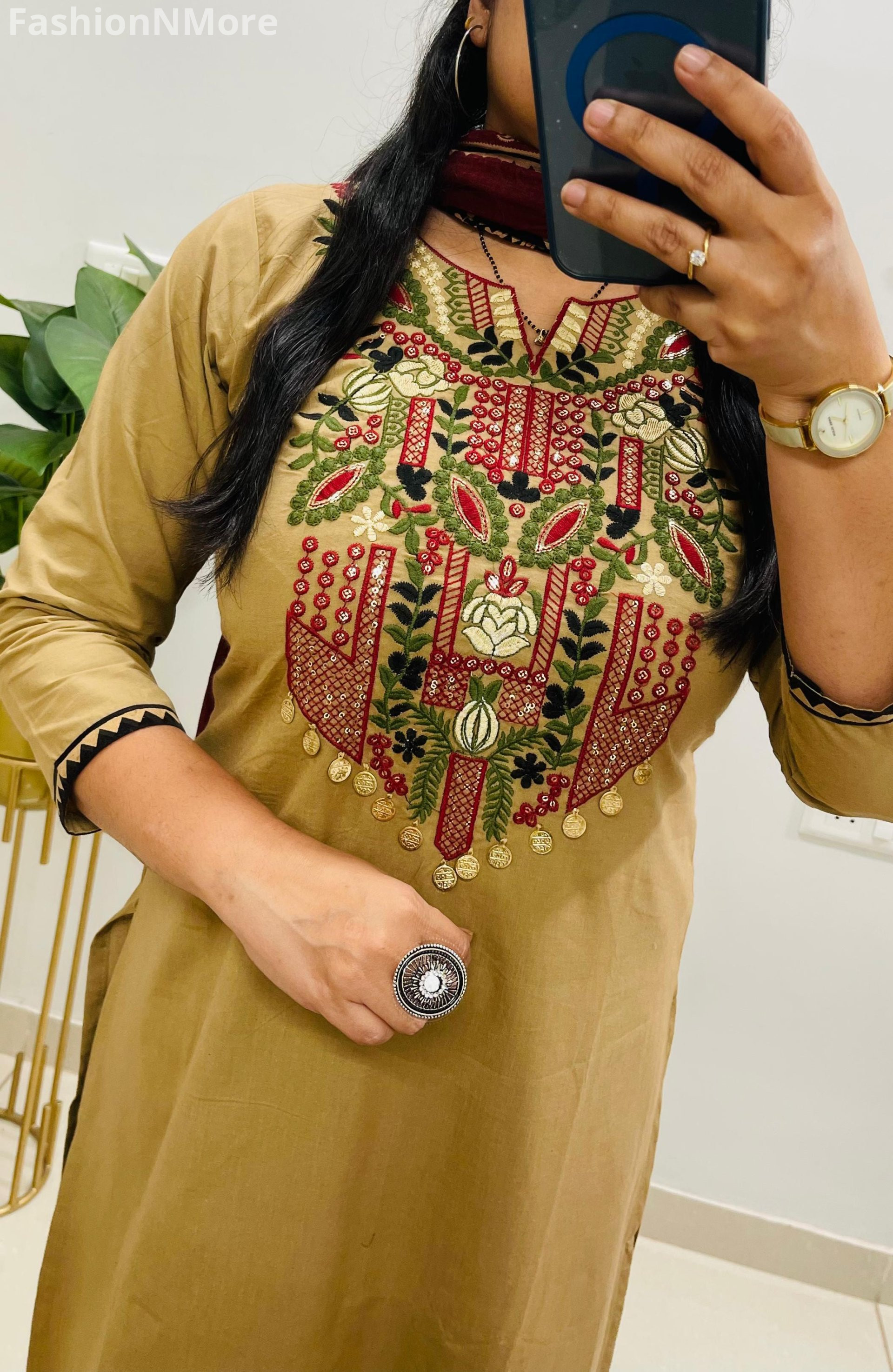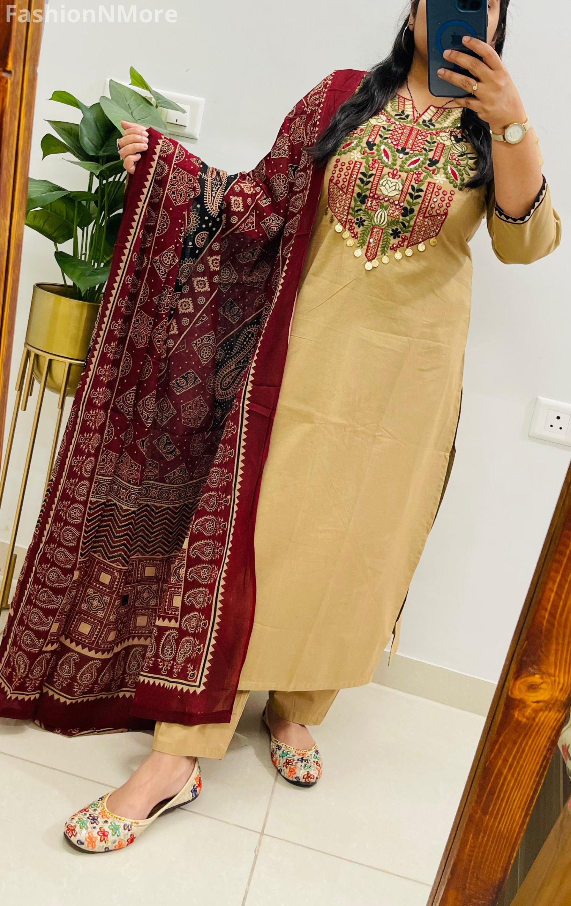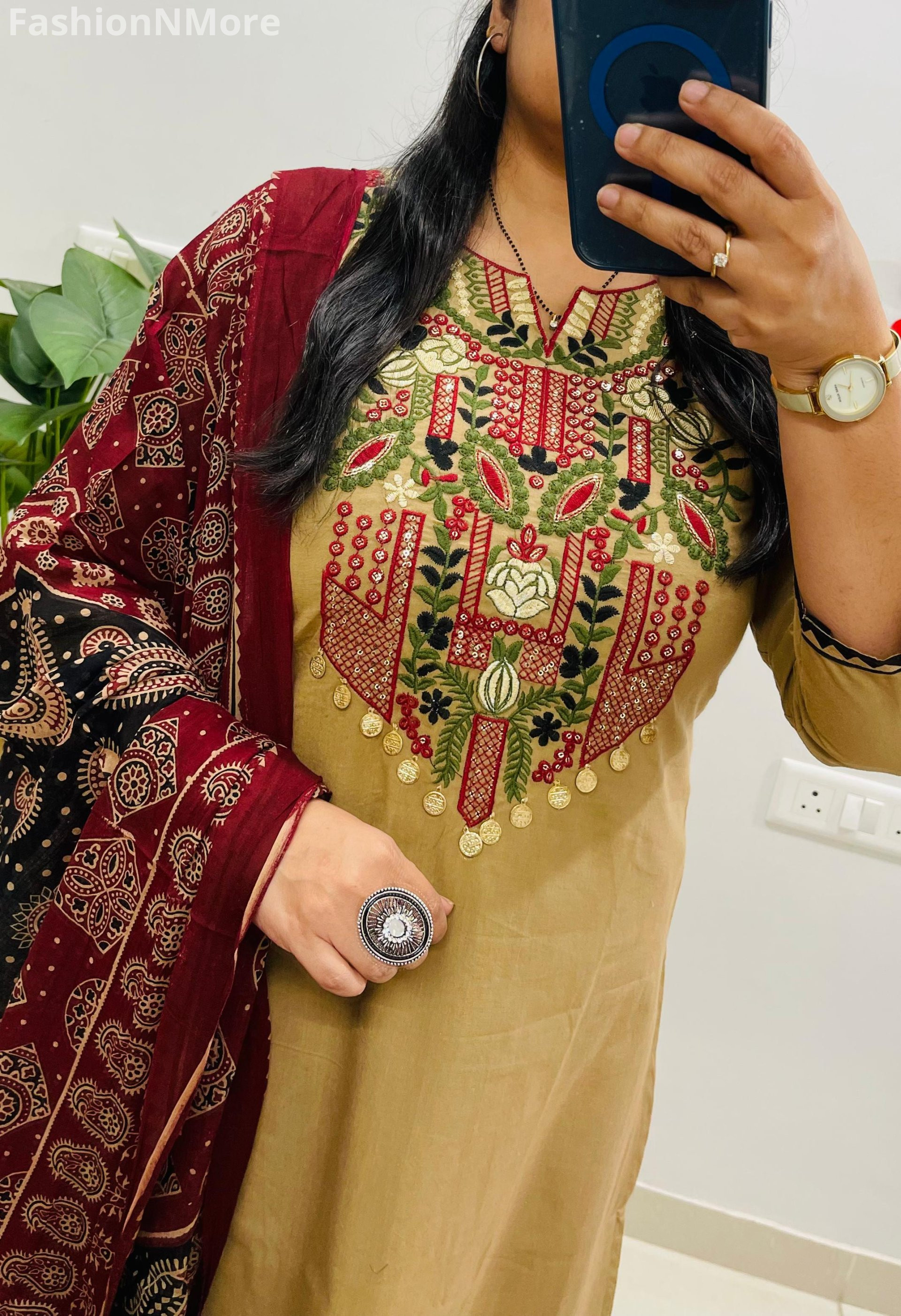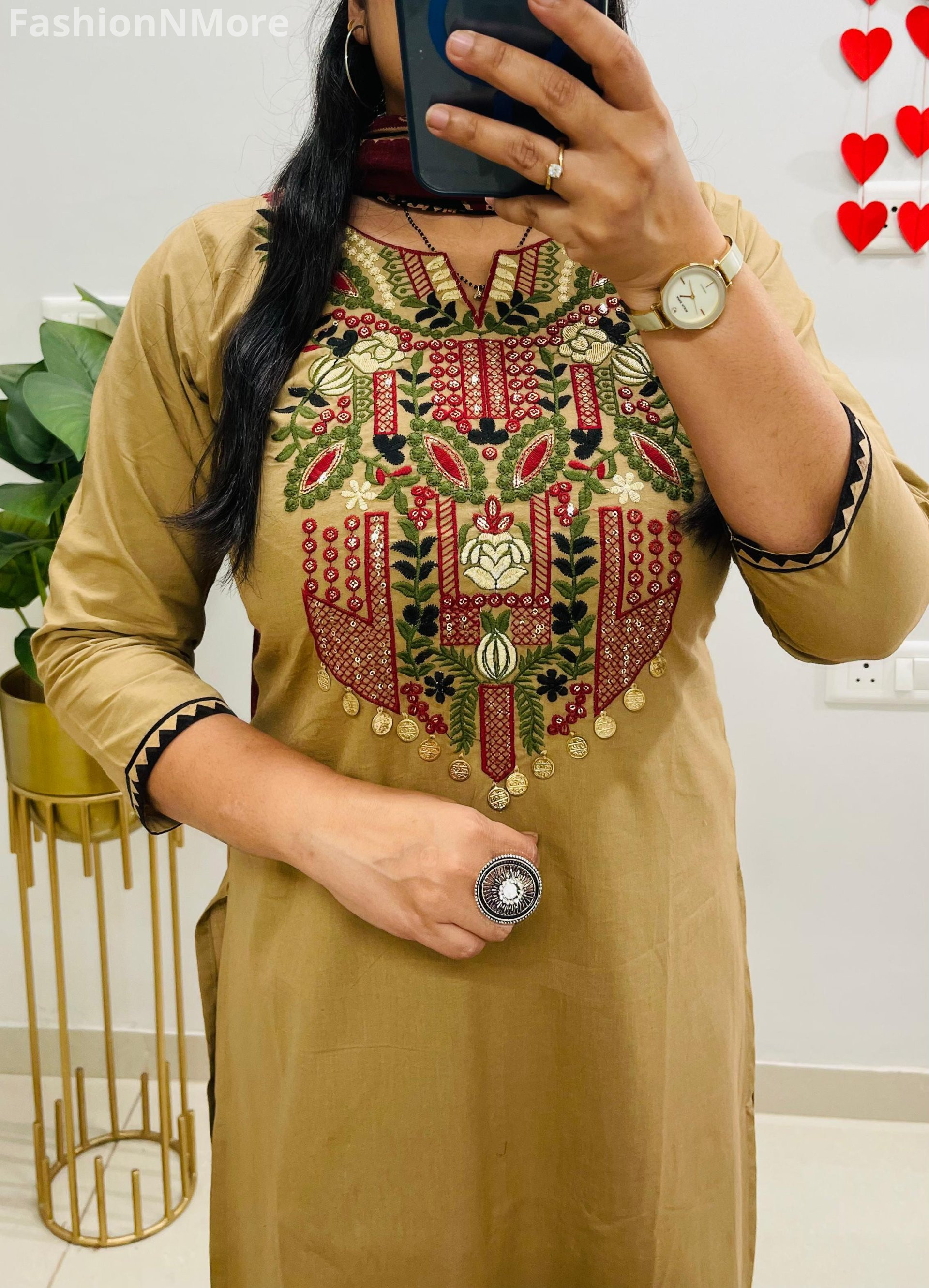 Heavy Embroidery Work Suit in Dhabu Cotton