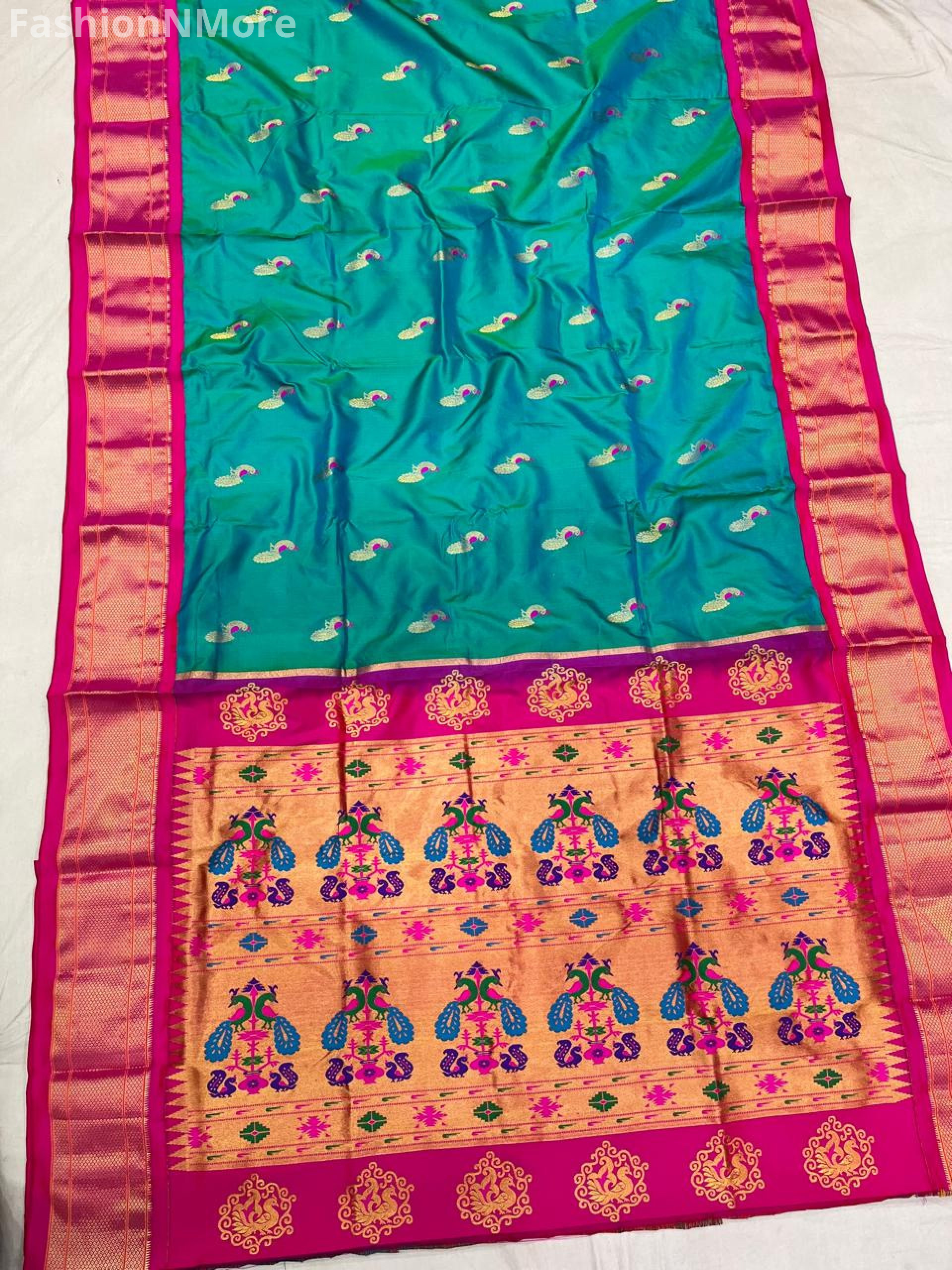 ✔️ Beautiful Kadiyal contrast border adds a touch of regal Paithani tradition.