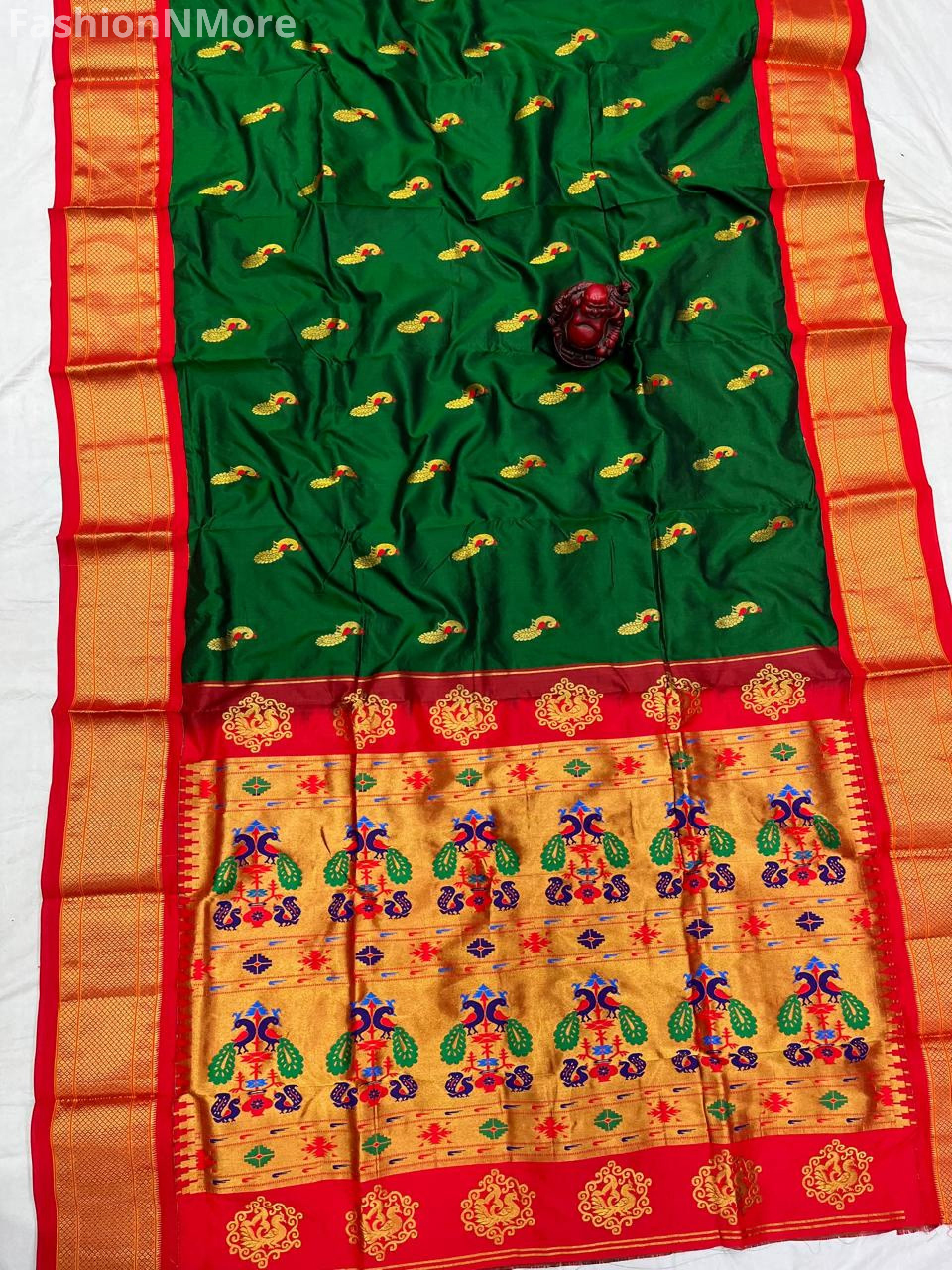 ✔️ Beautiful Kadiyal contrast border adds a touch of regal Paithani tradition.