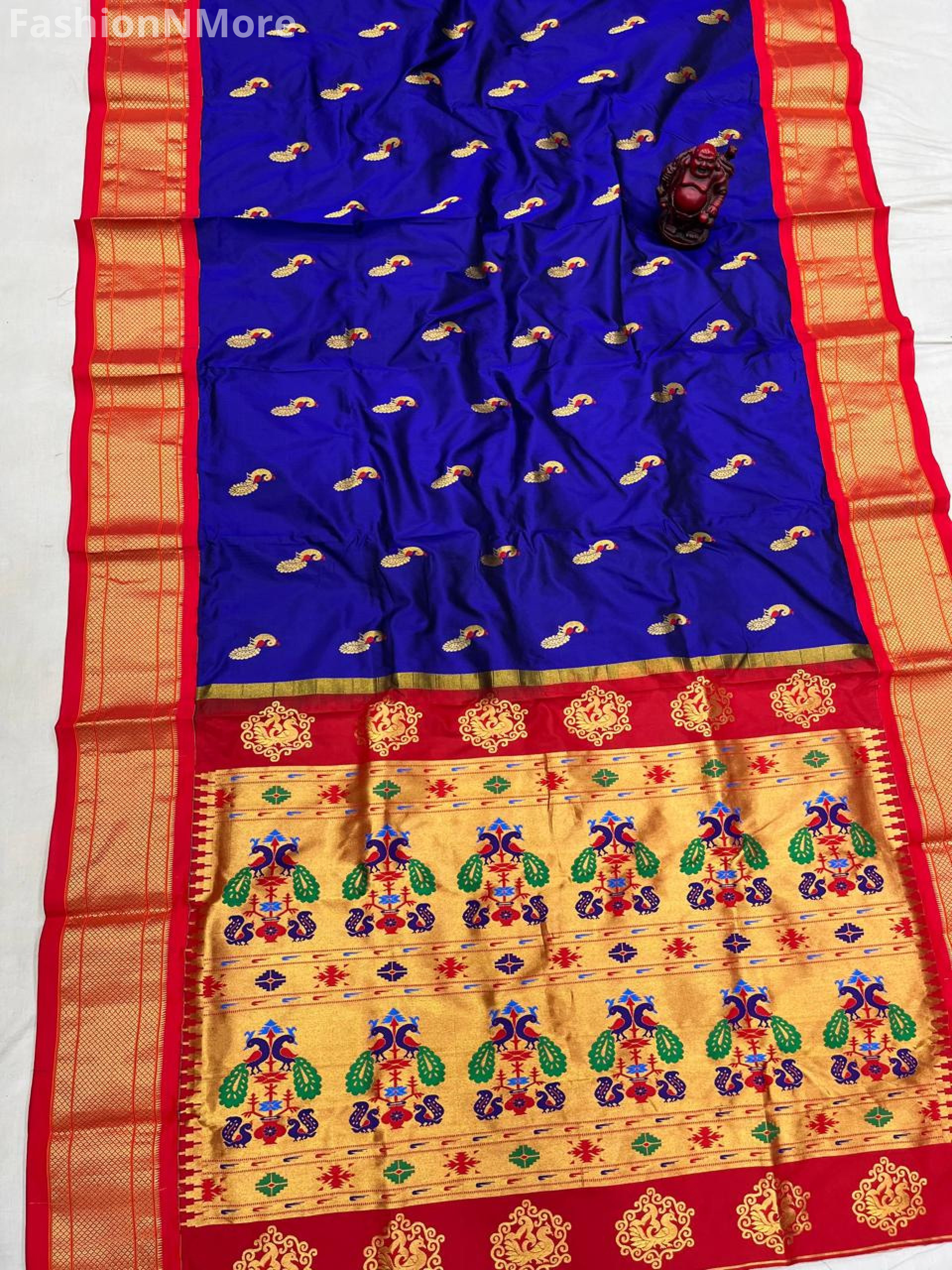 ✔️ Beautiful Kadiyal contrast border adds a touch of regal Paithani tradition.