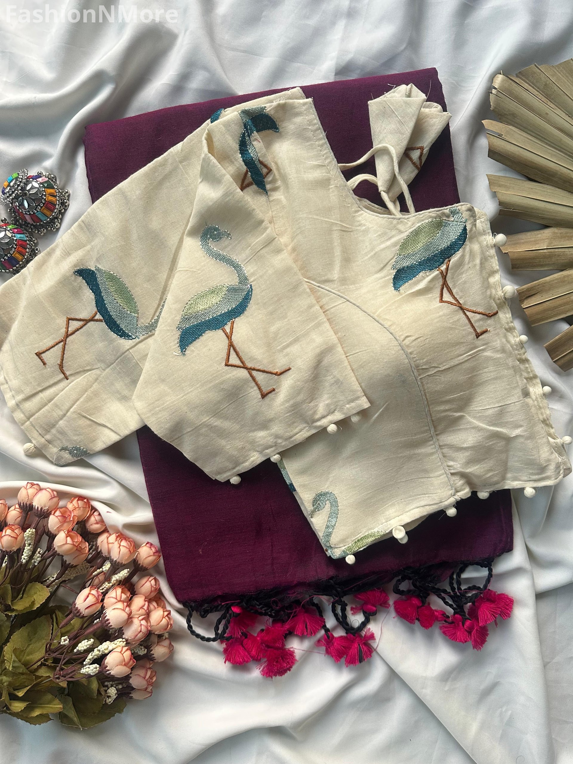 ✔ Comes with a heavy khadi cotton blouse featuring beautiful work