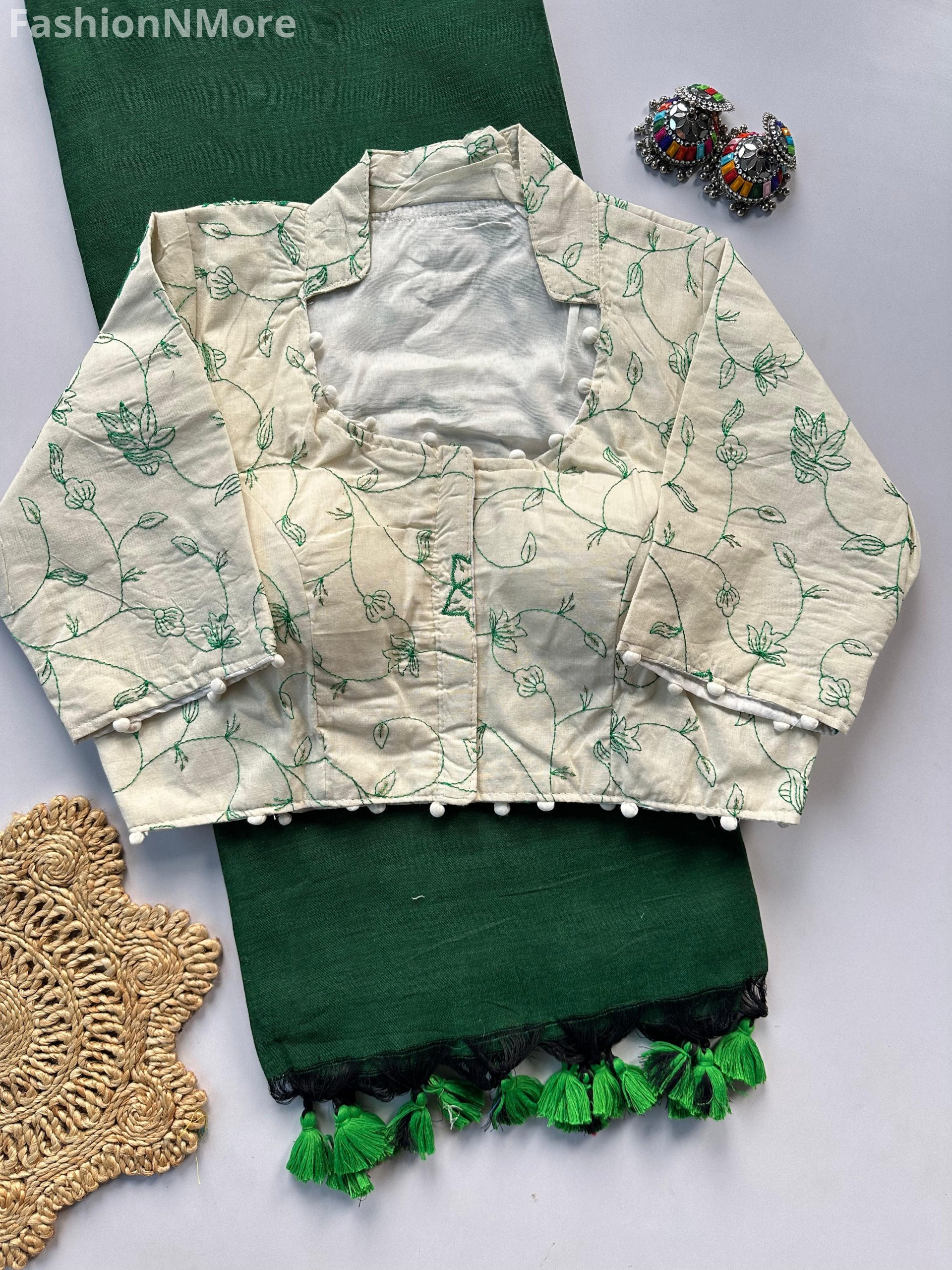 ✔ Comes with a heavy khadi cotton blouse featuring beautiful work