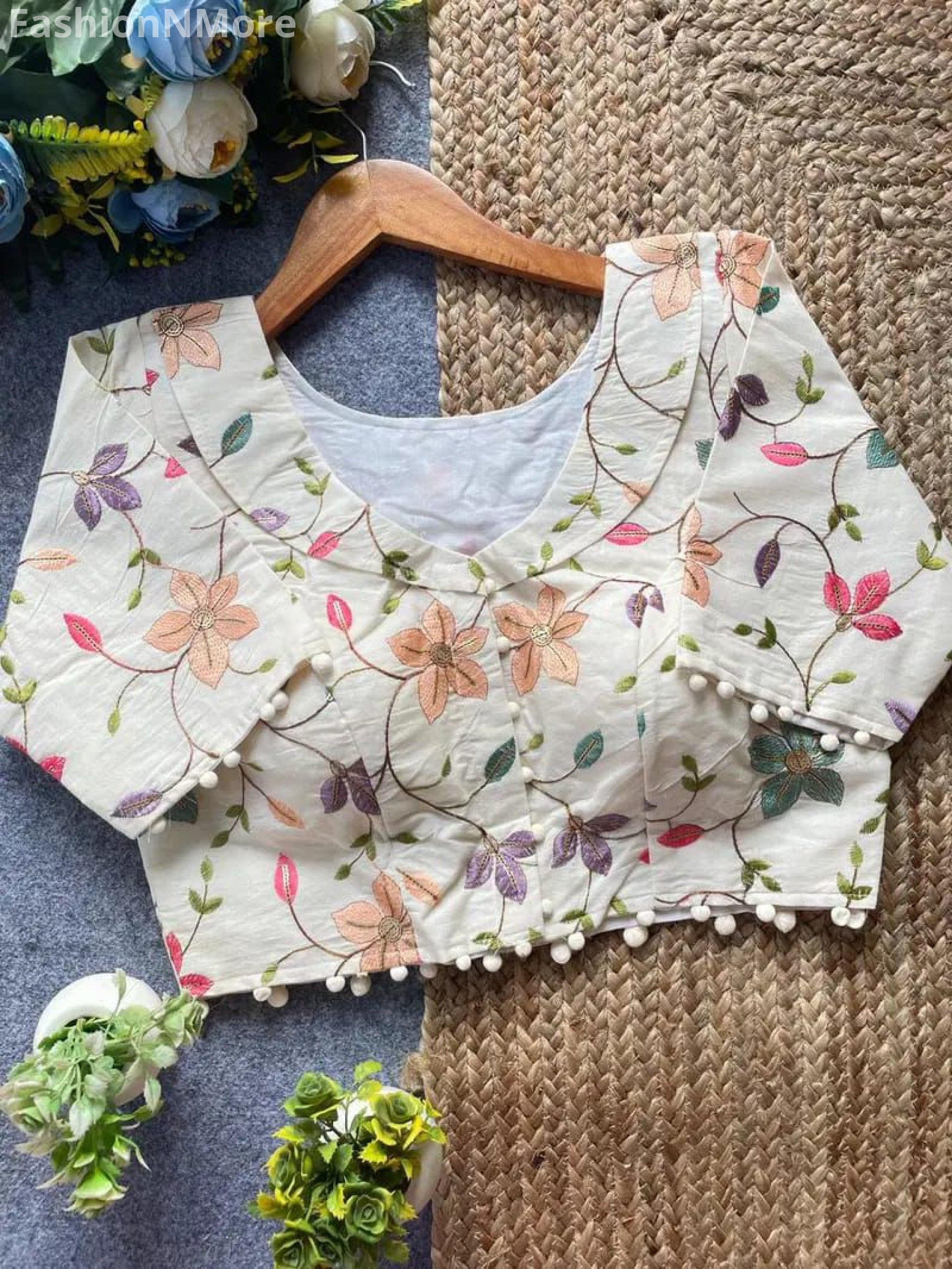 Khadi Pompom Camric Cotton Designer Blouse