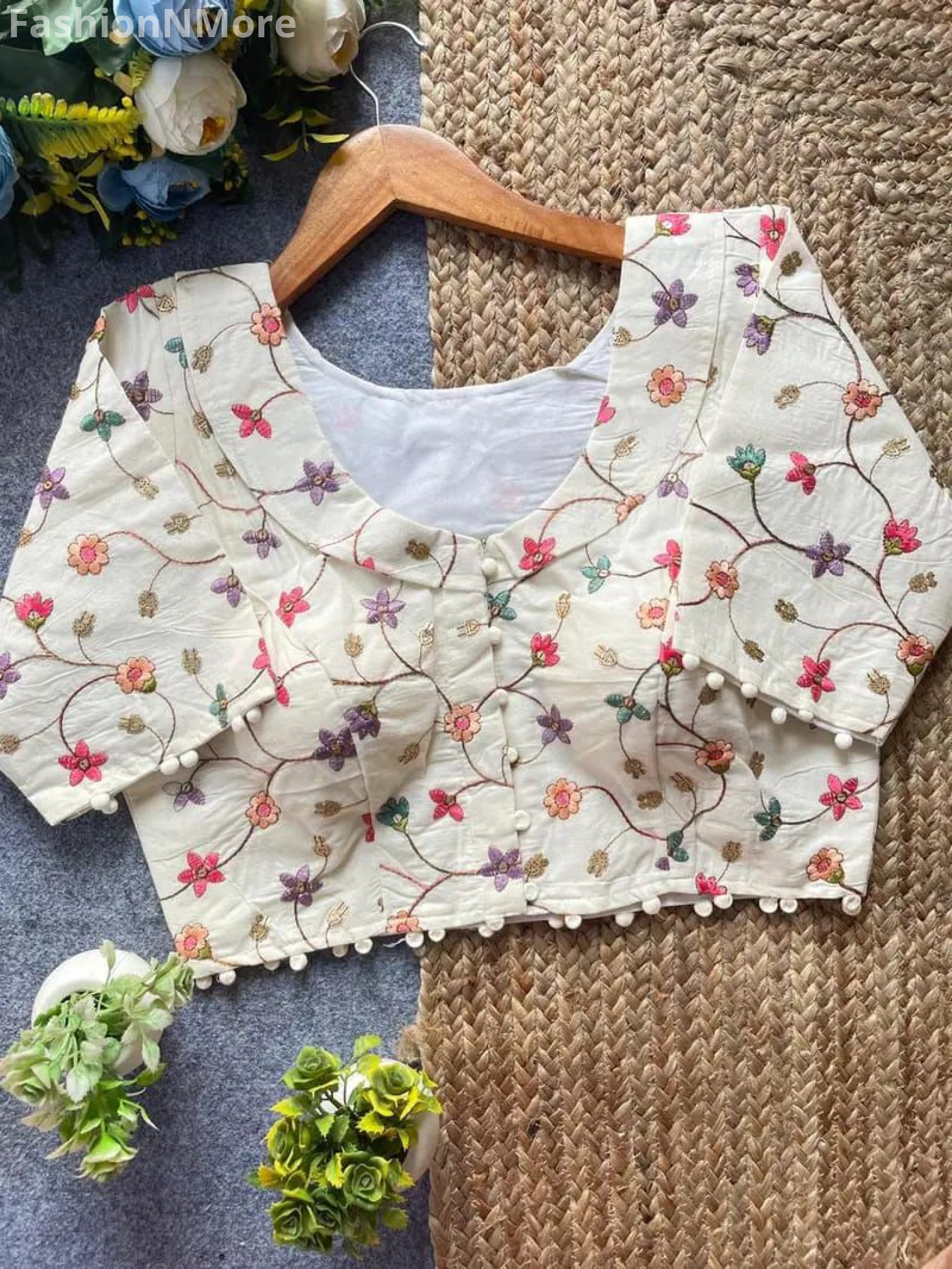 Khadi Pompom Camric Cotton Designer Blouse