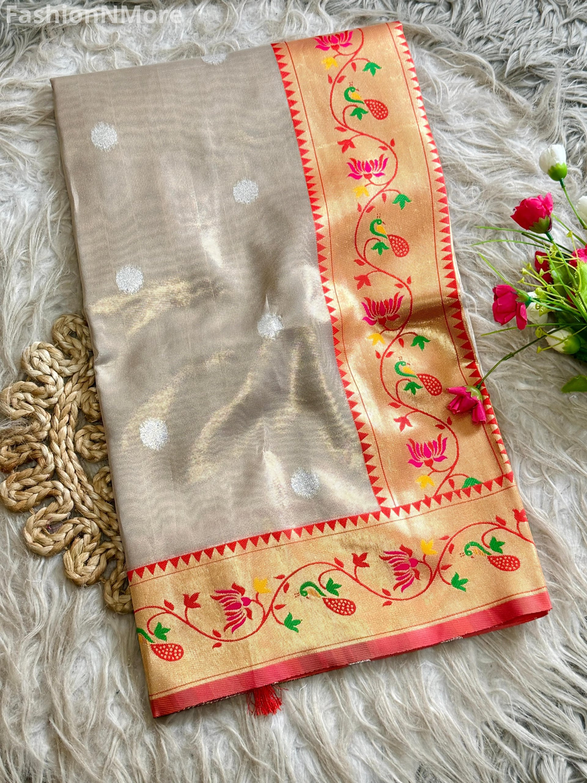 Maharani Mor Popat Organza Tissue Silk Saree with Peacock Pallu