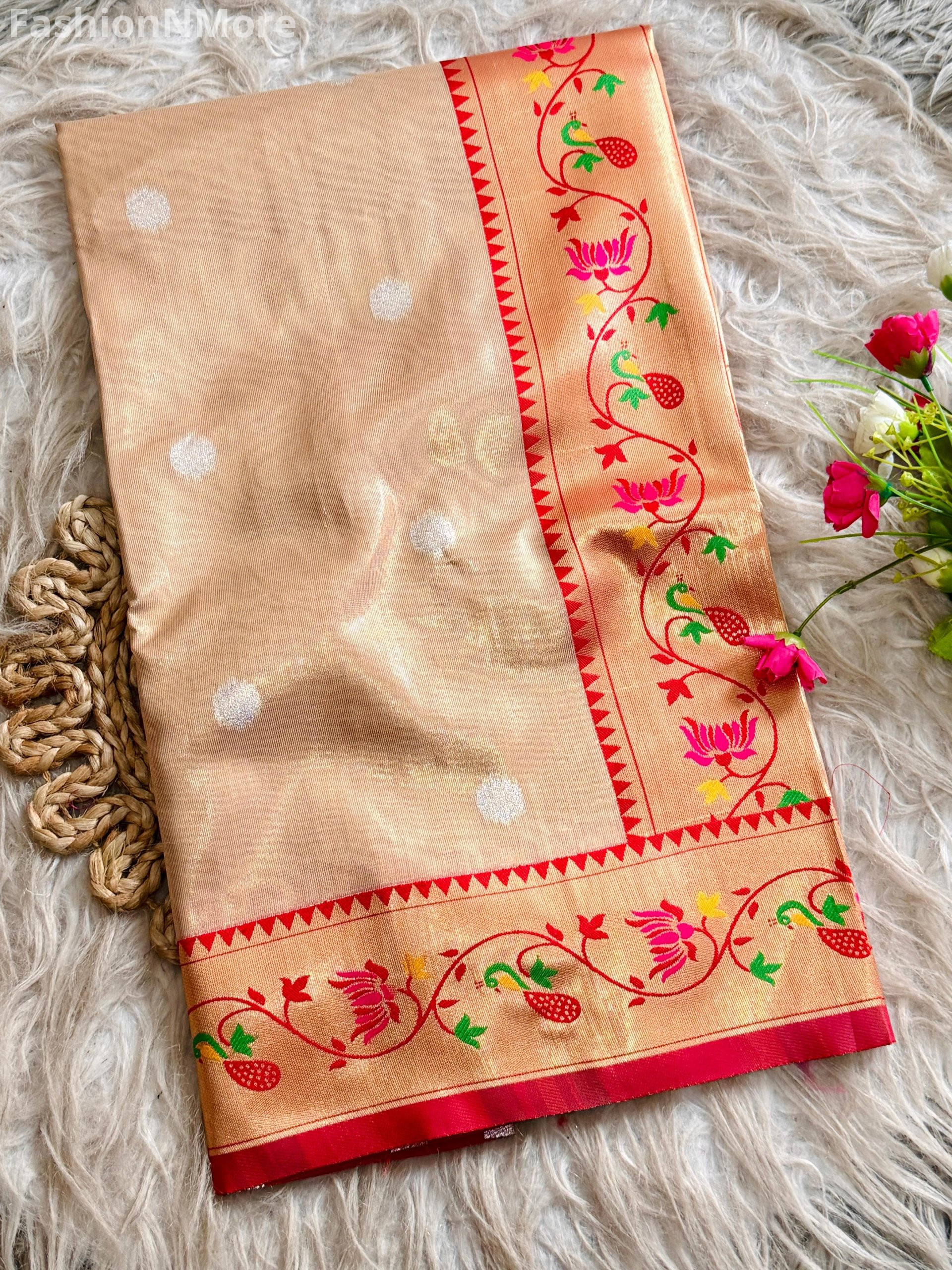 Maharani Mor Popat Organza Tissue Silk Saree with Peacock Pallu