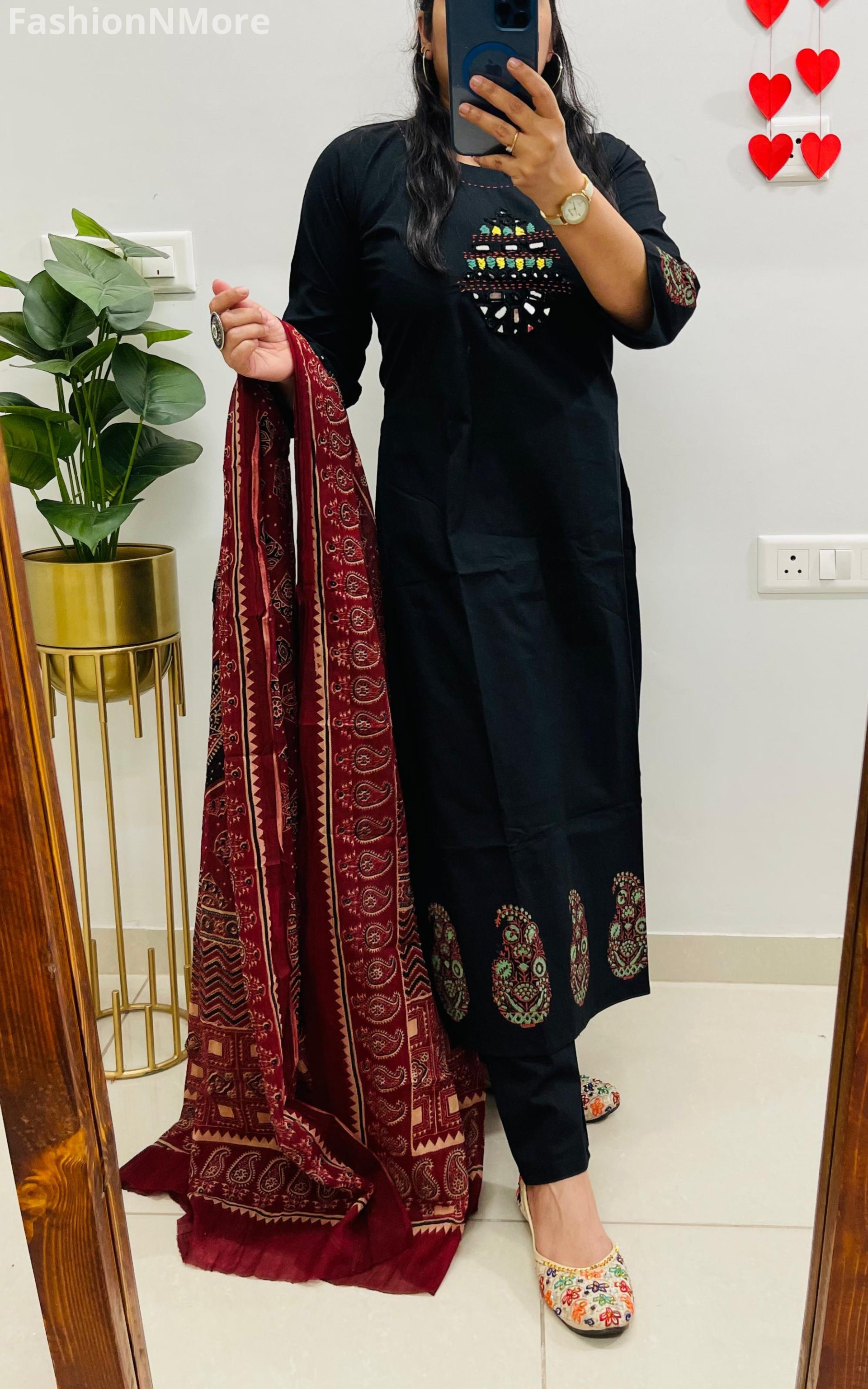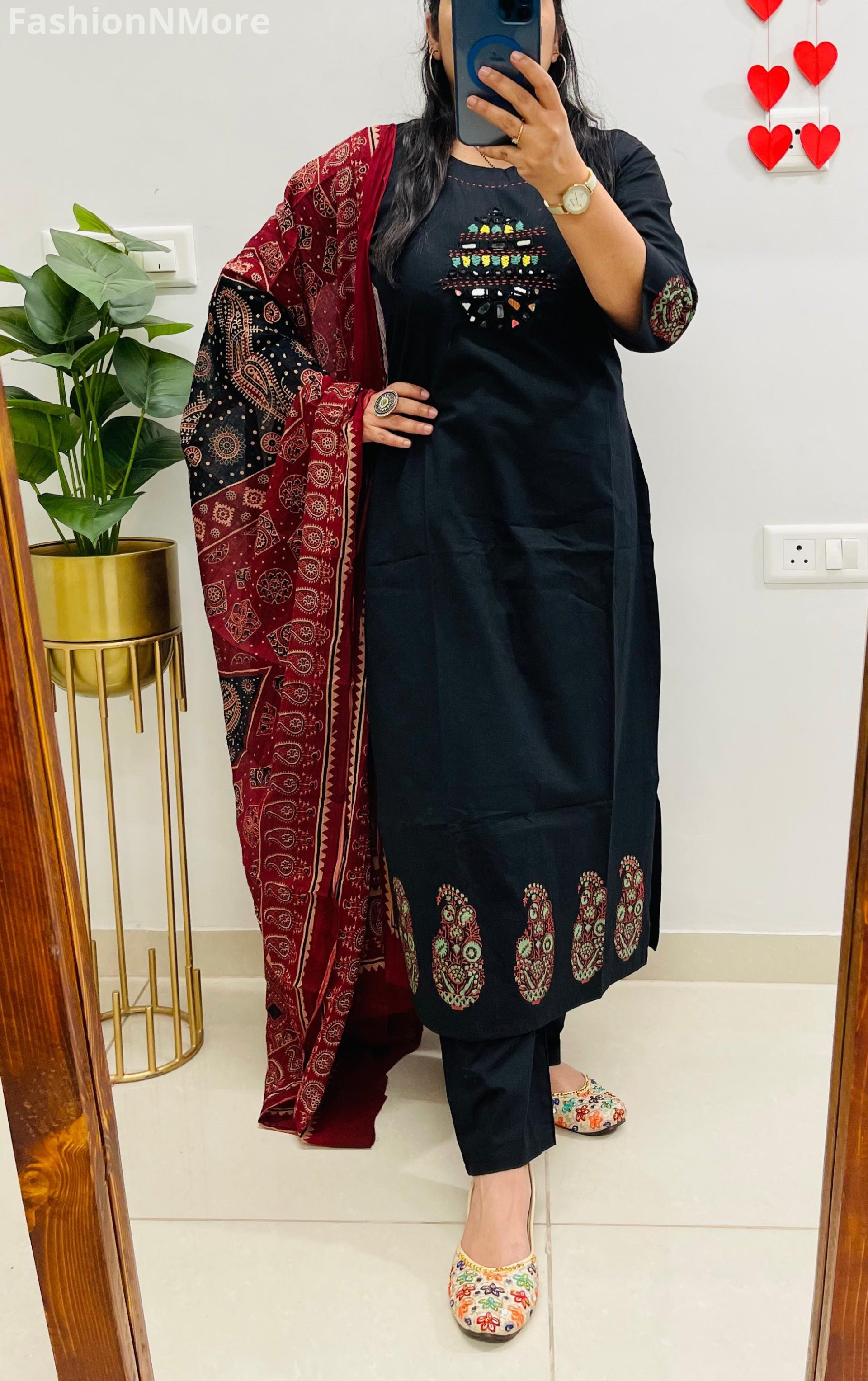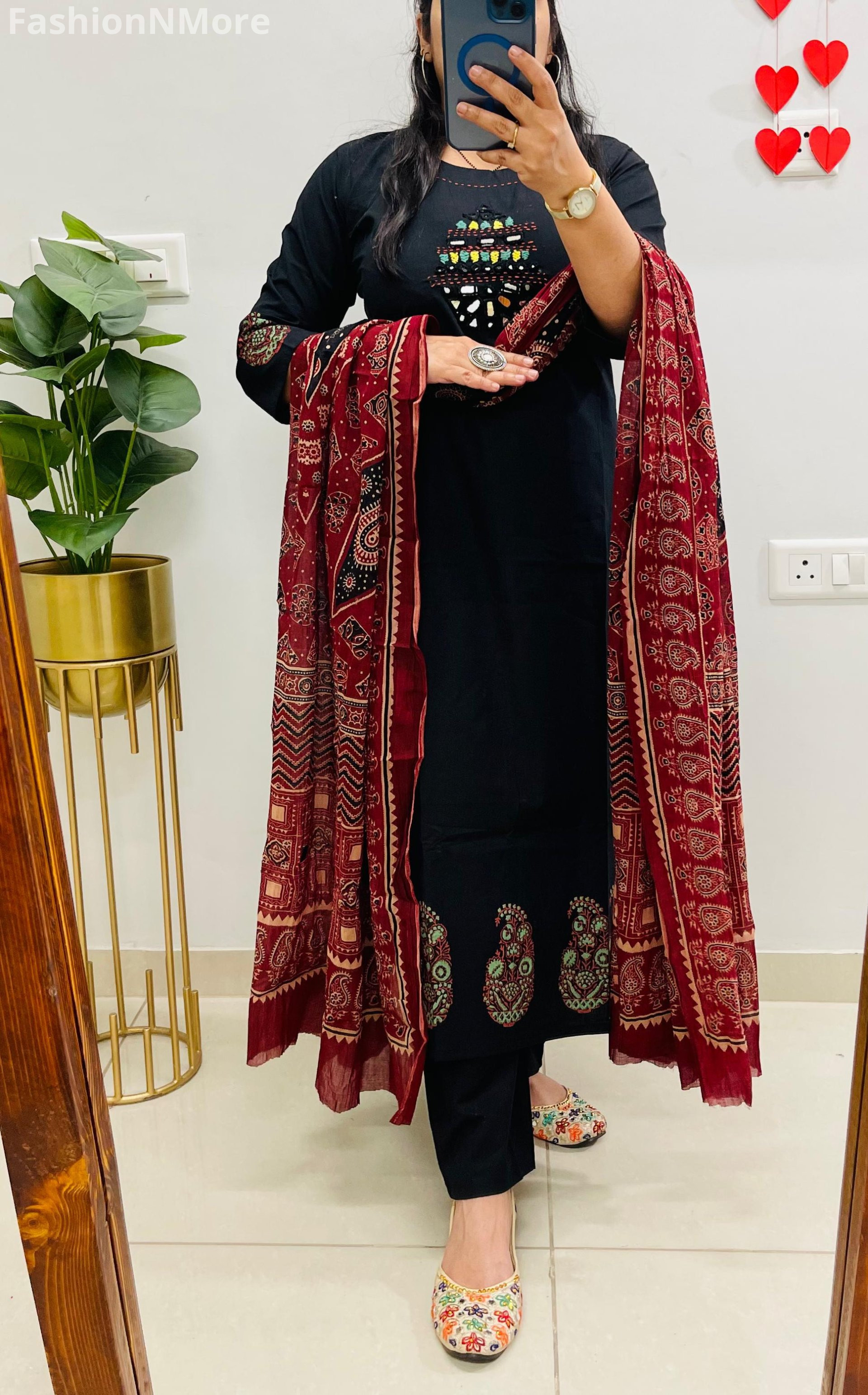 ✔️ Hand-painted motifs on sleeves and kurta bottom add artistic flair