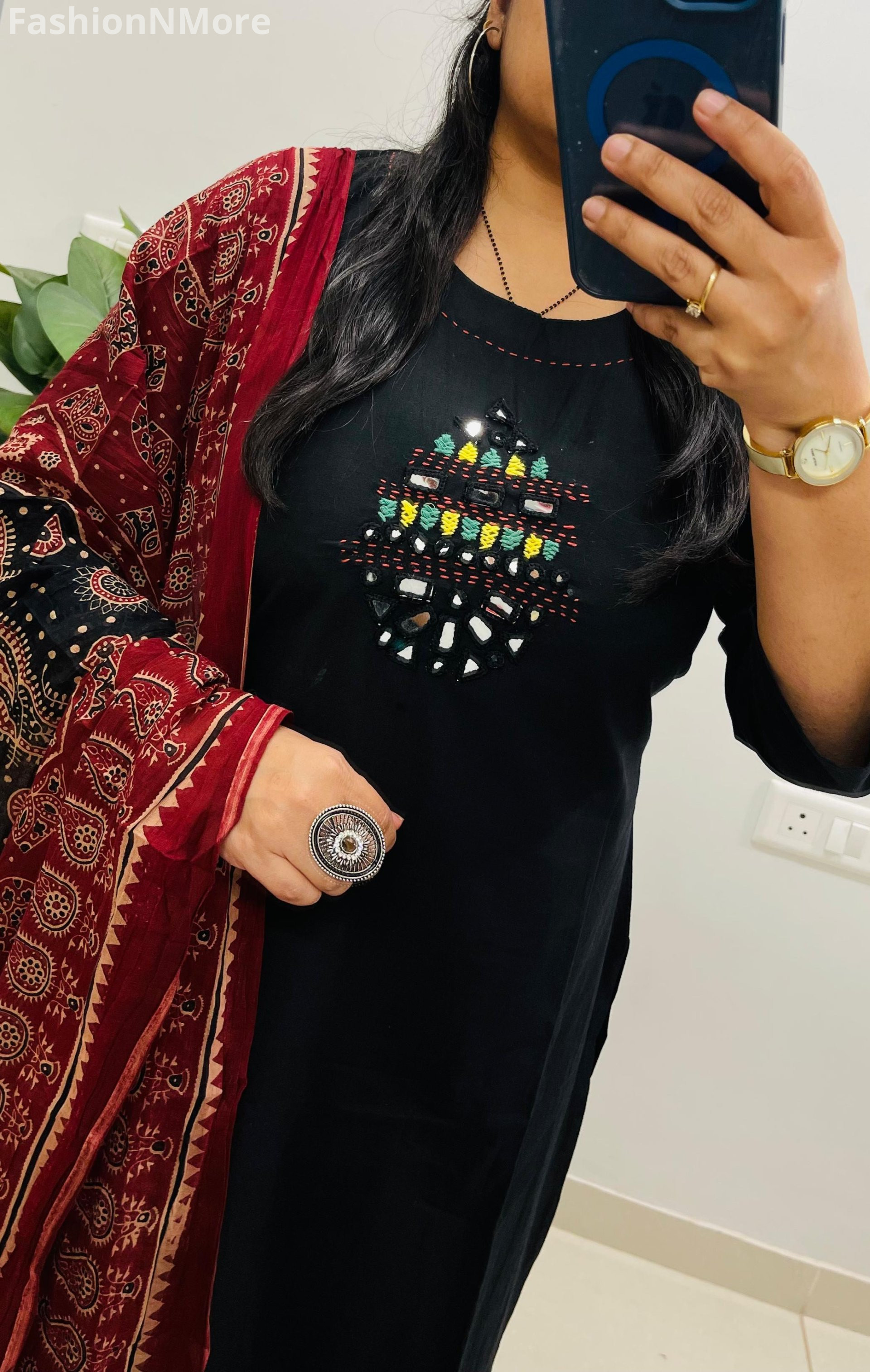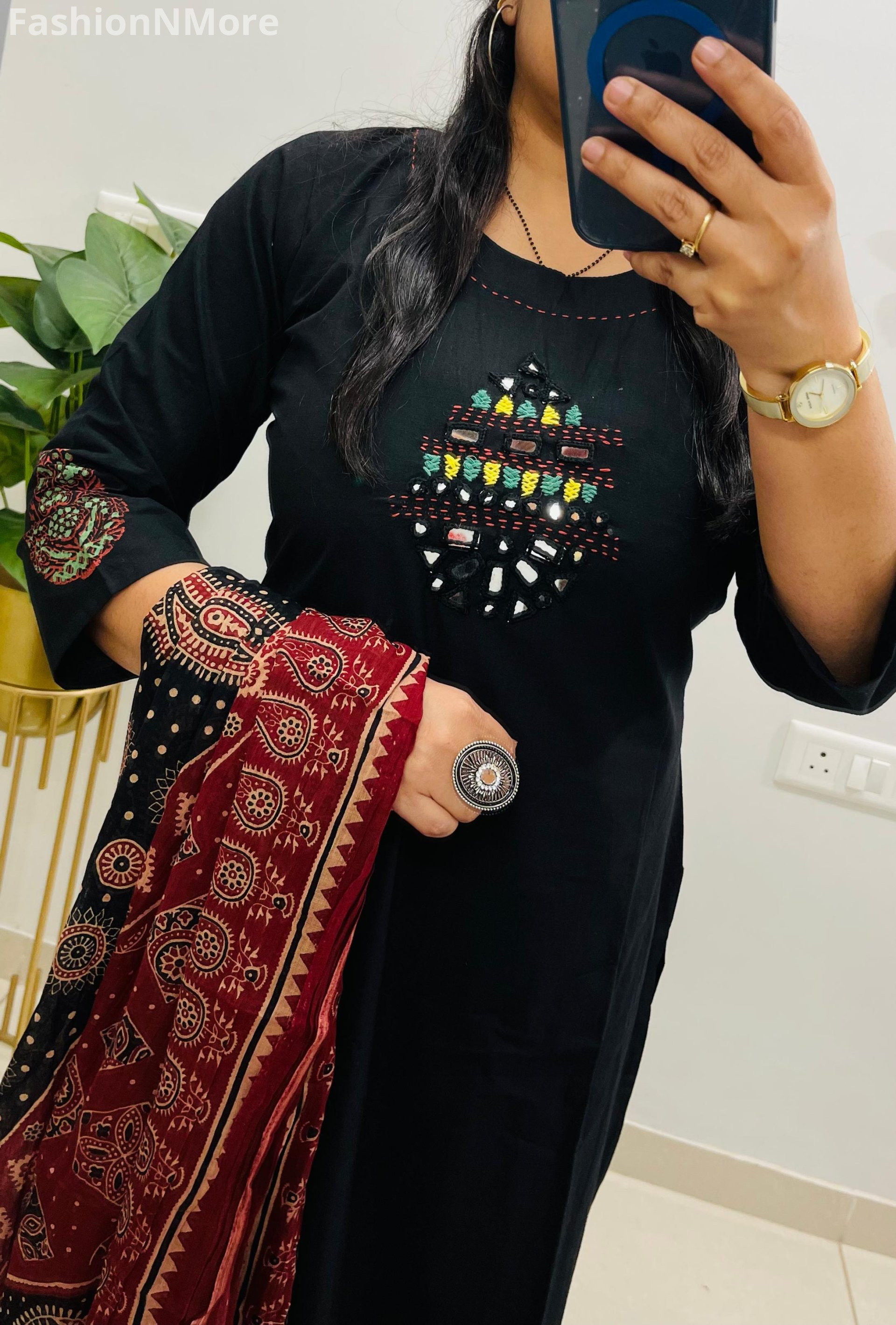 ✔️ Authentic mirror work with fine embroidery on the yoke for a statement look