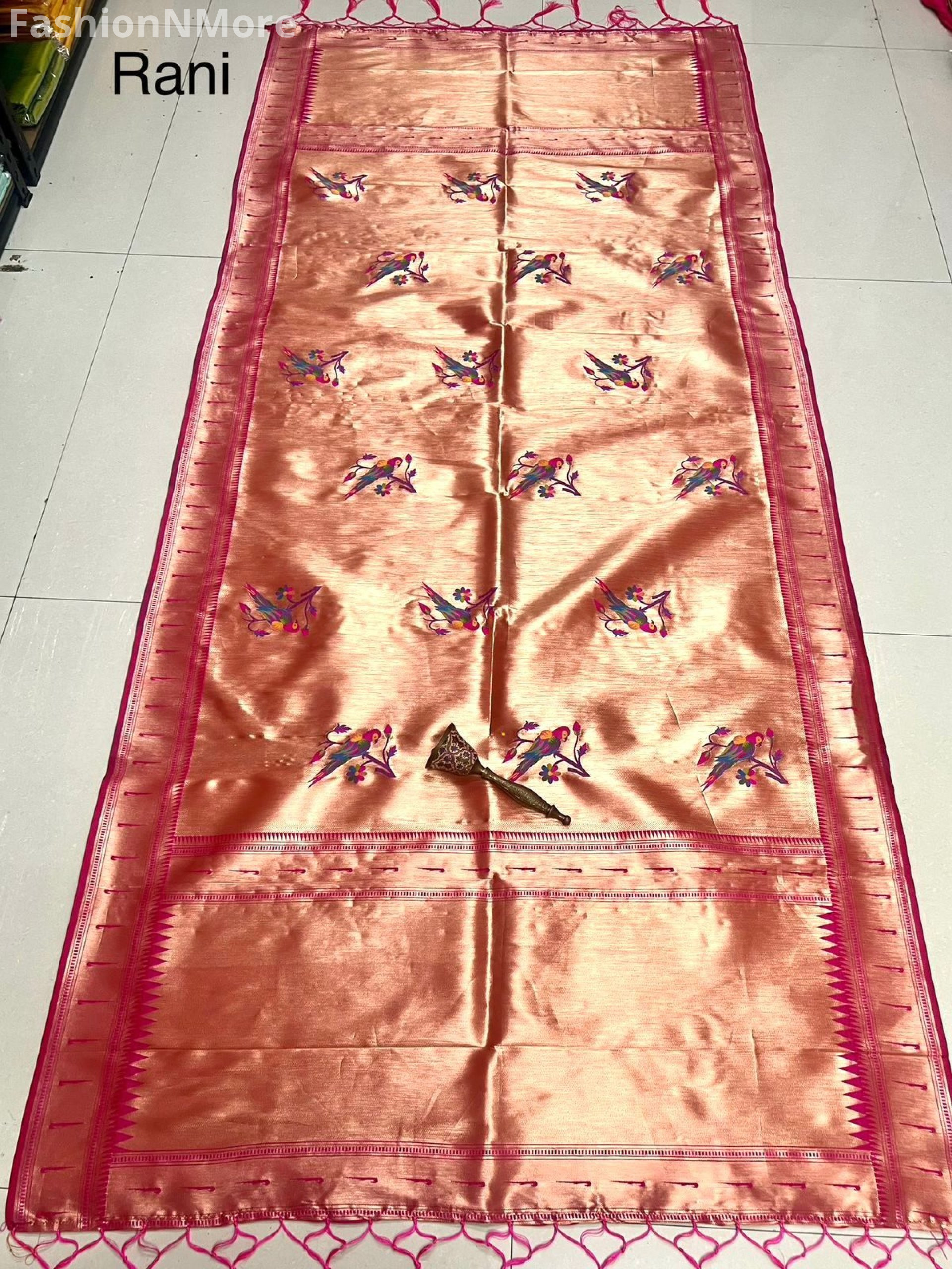 ✔️ All-over parrot motifs inspired by classic Paithani weave