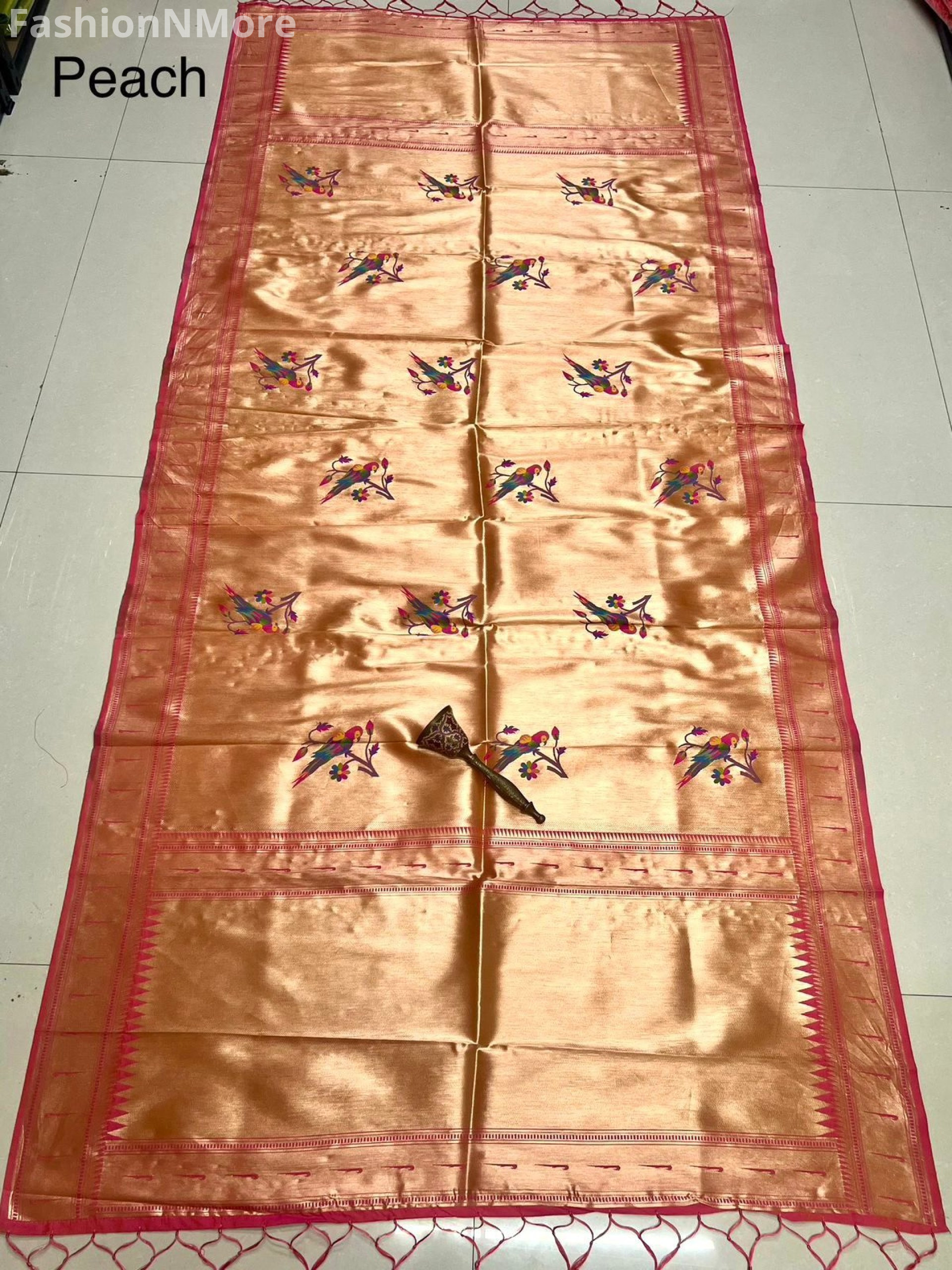 ✔️ All-over parrot motifs inspired by classic Paithani weave