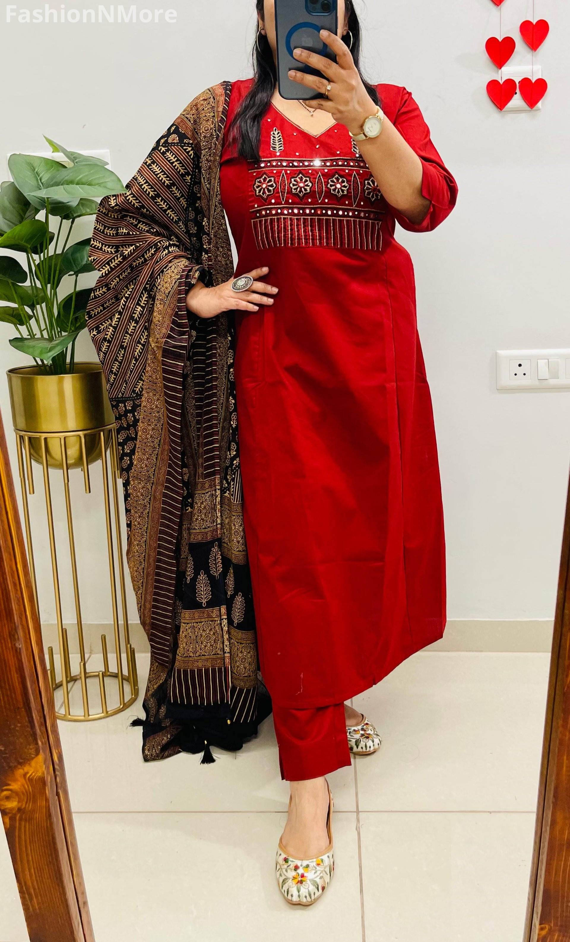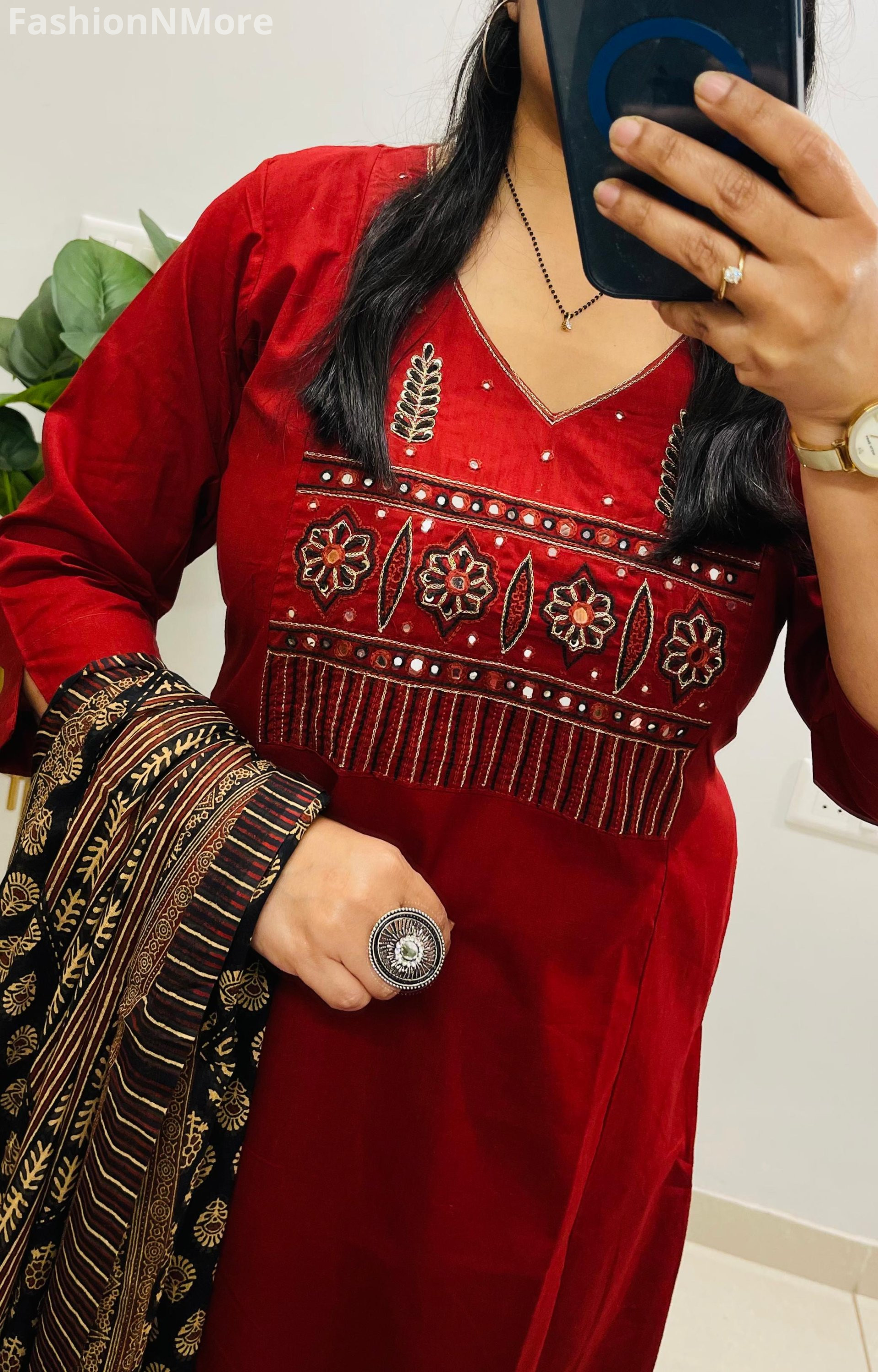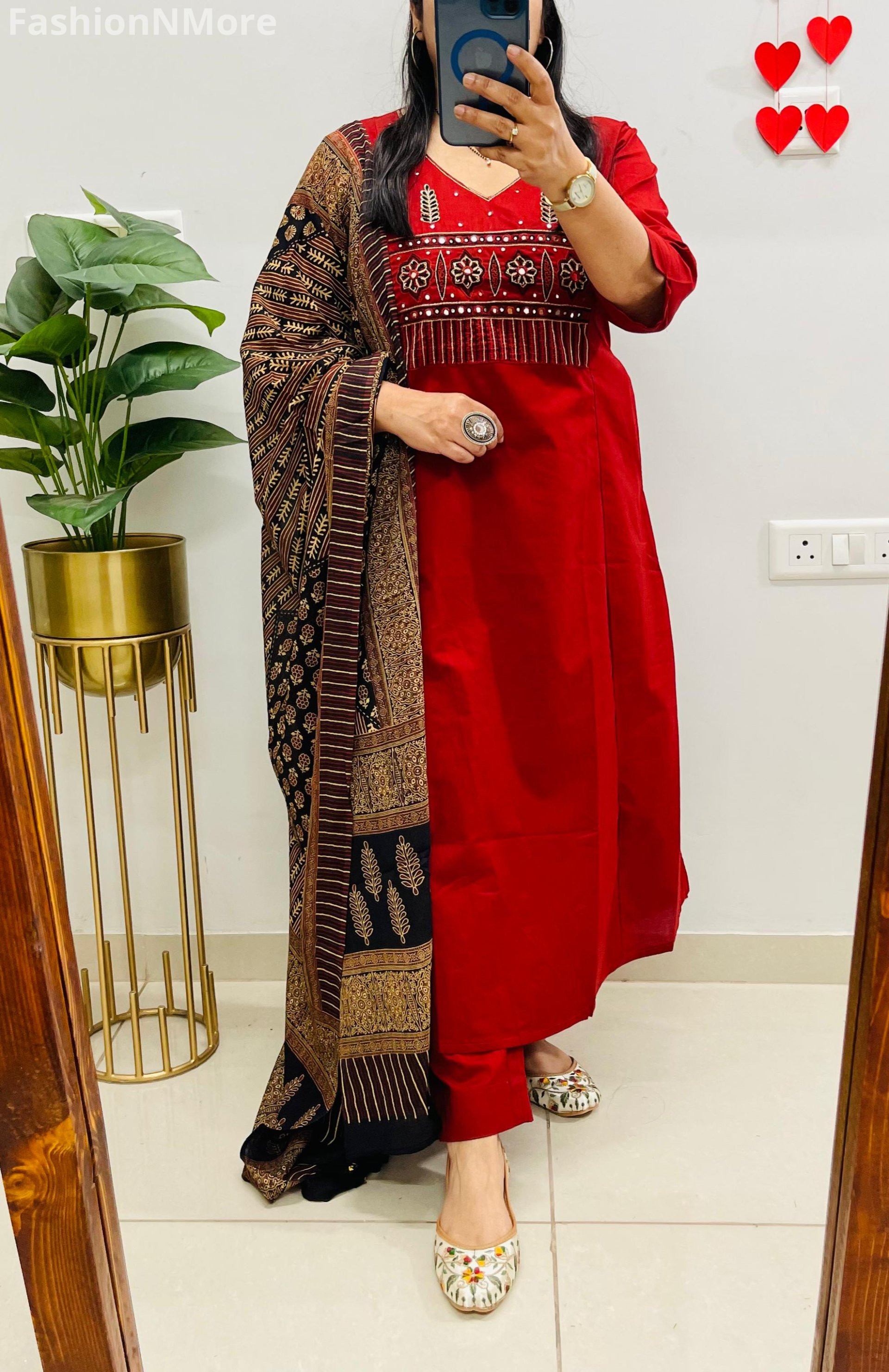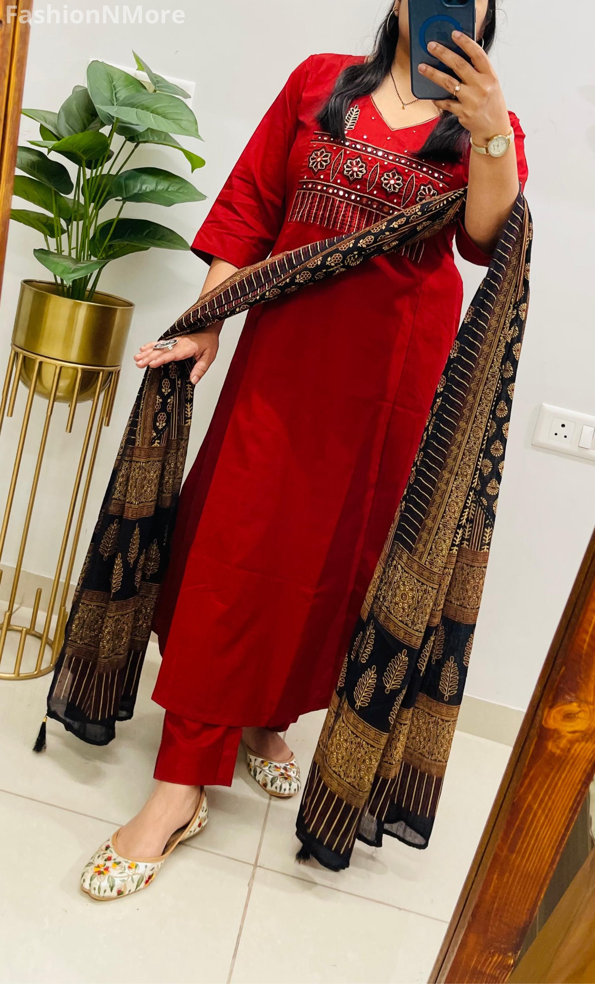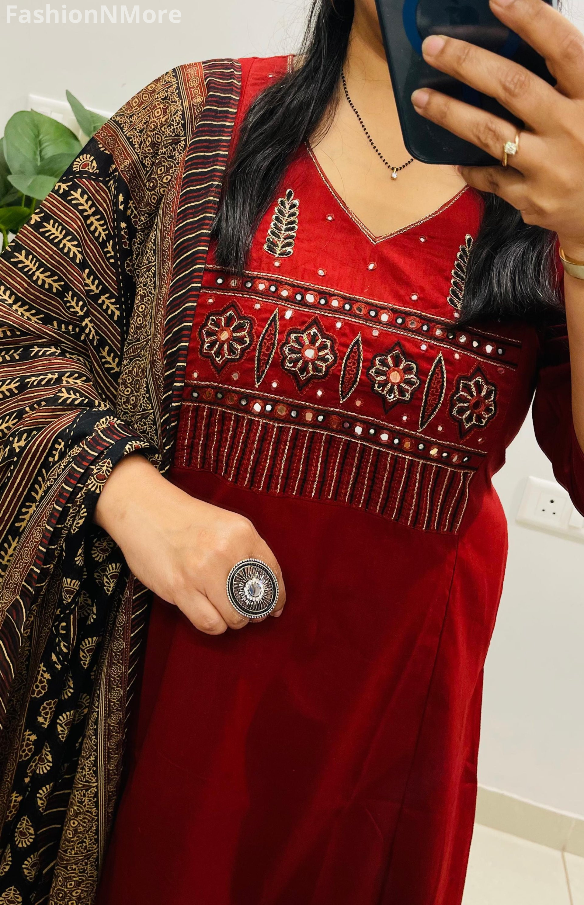 ✔ Matching Ajrakh cotton dupatta with trendy tassels attached