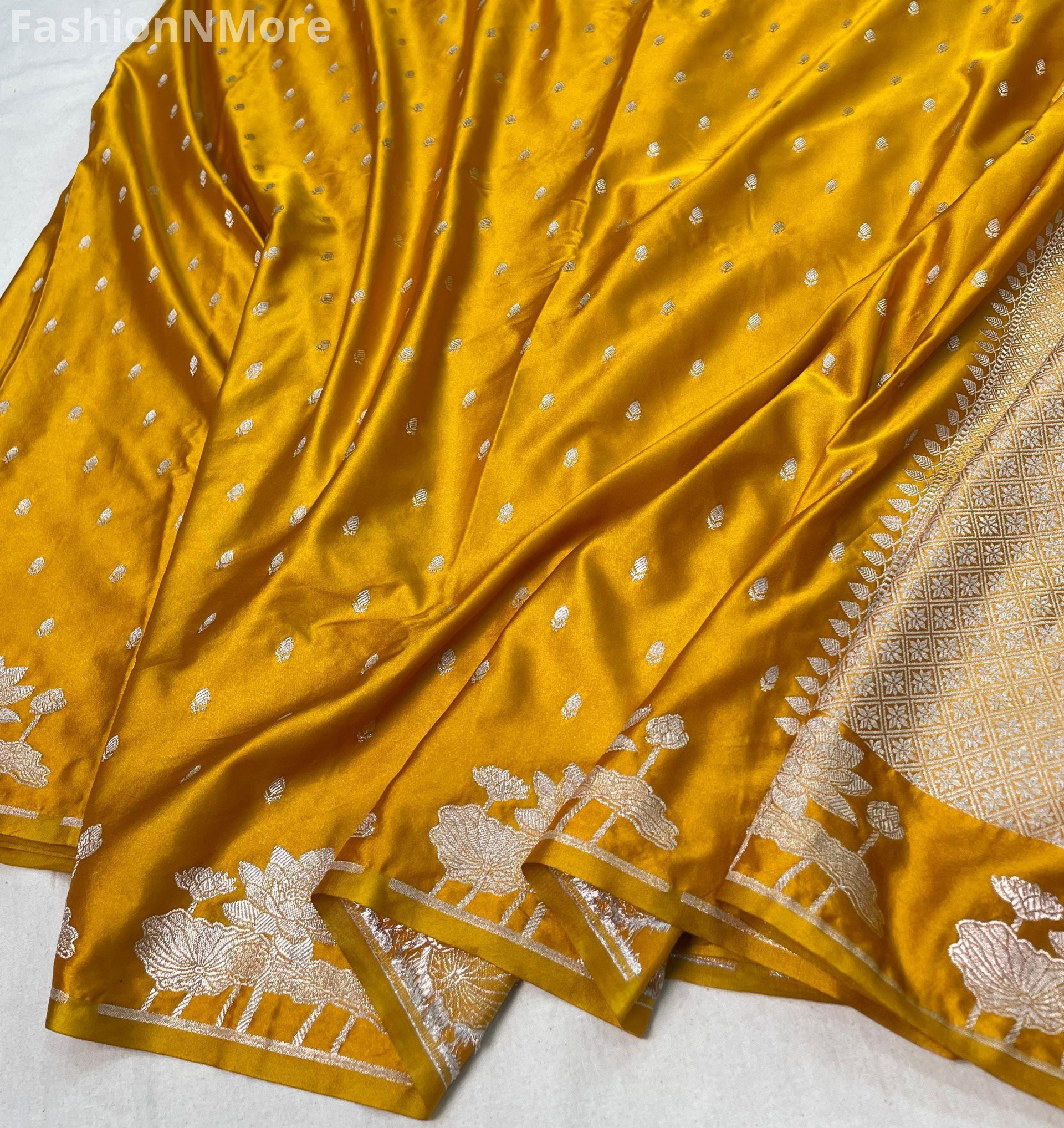Experience the richness of traditional craftsmanship with this premium Mashru silk saree, designed to bring timeless elegance to your wardrobe. The smooth satin-like texture paired with intricate weaving makes it a perfect choice for both festive and special occasions.