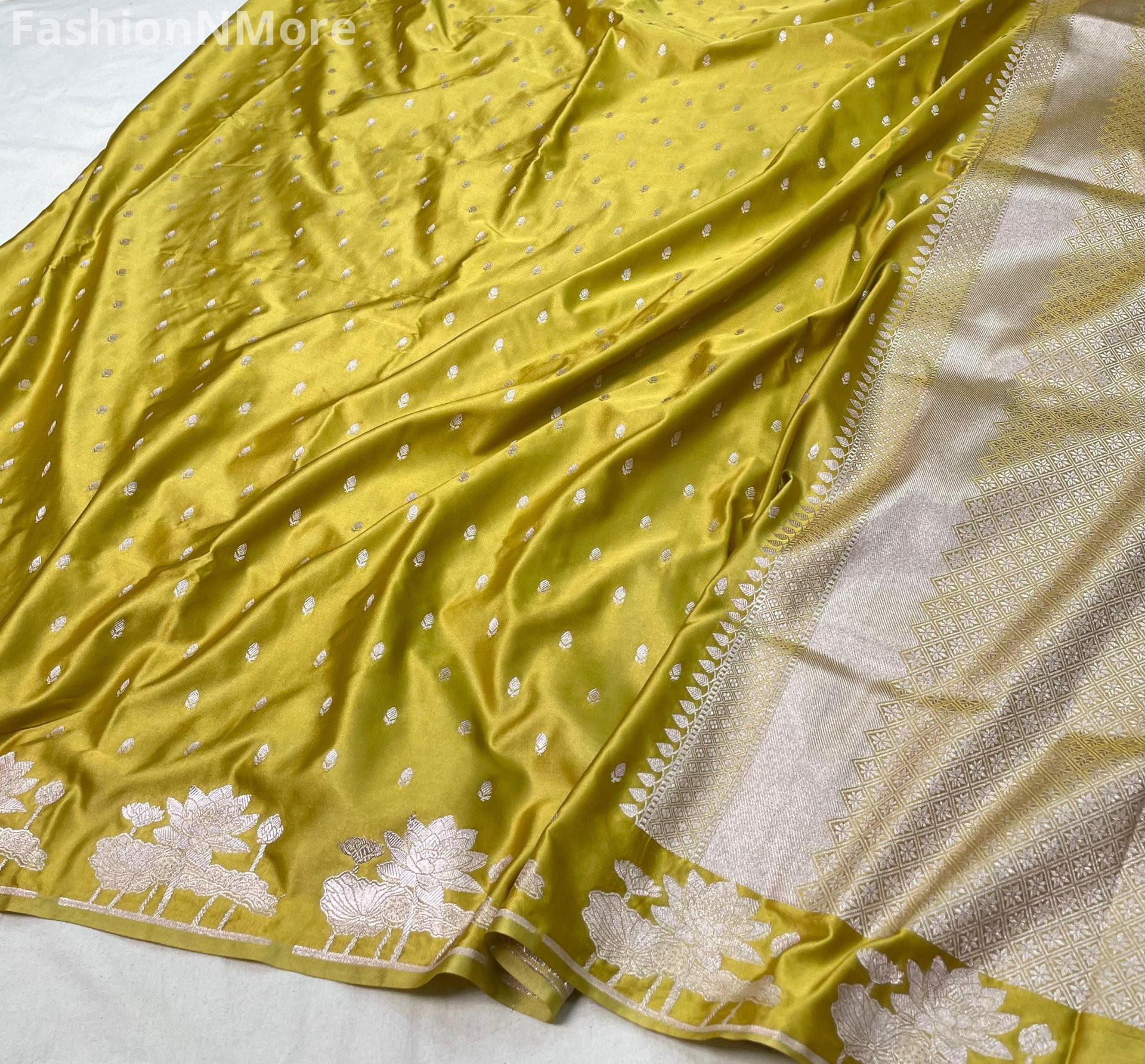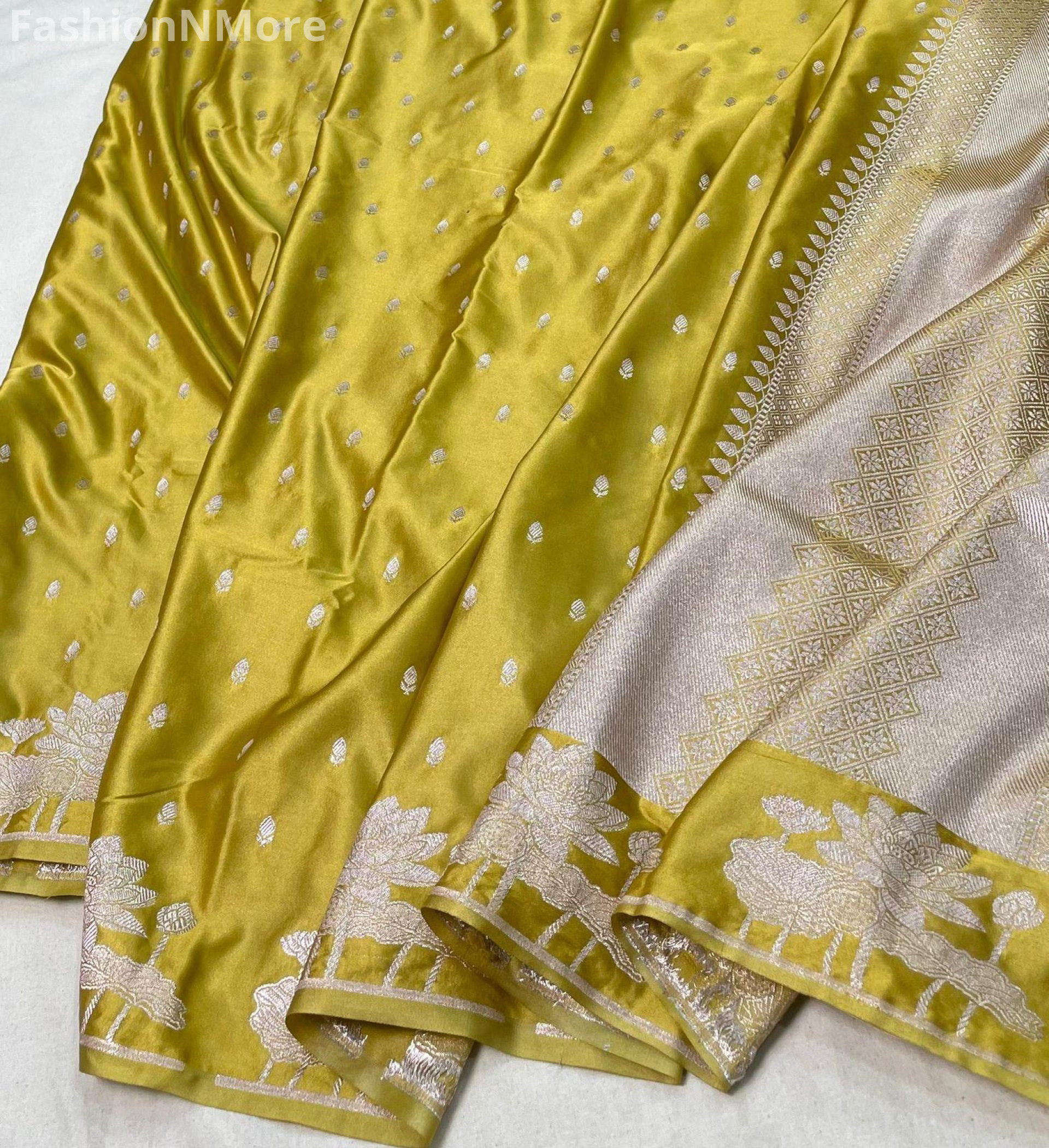 Experience the richness of traditional craftsmanship with this premium Mashru silk saree, designed to bring timeless elegance to your wardrobe. The smooth satin-like texture paired with intricate weaving makes it a perfect choice for both festive and special occasions.