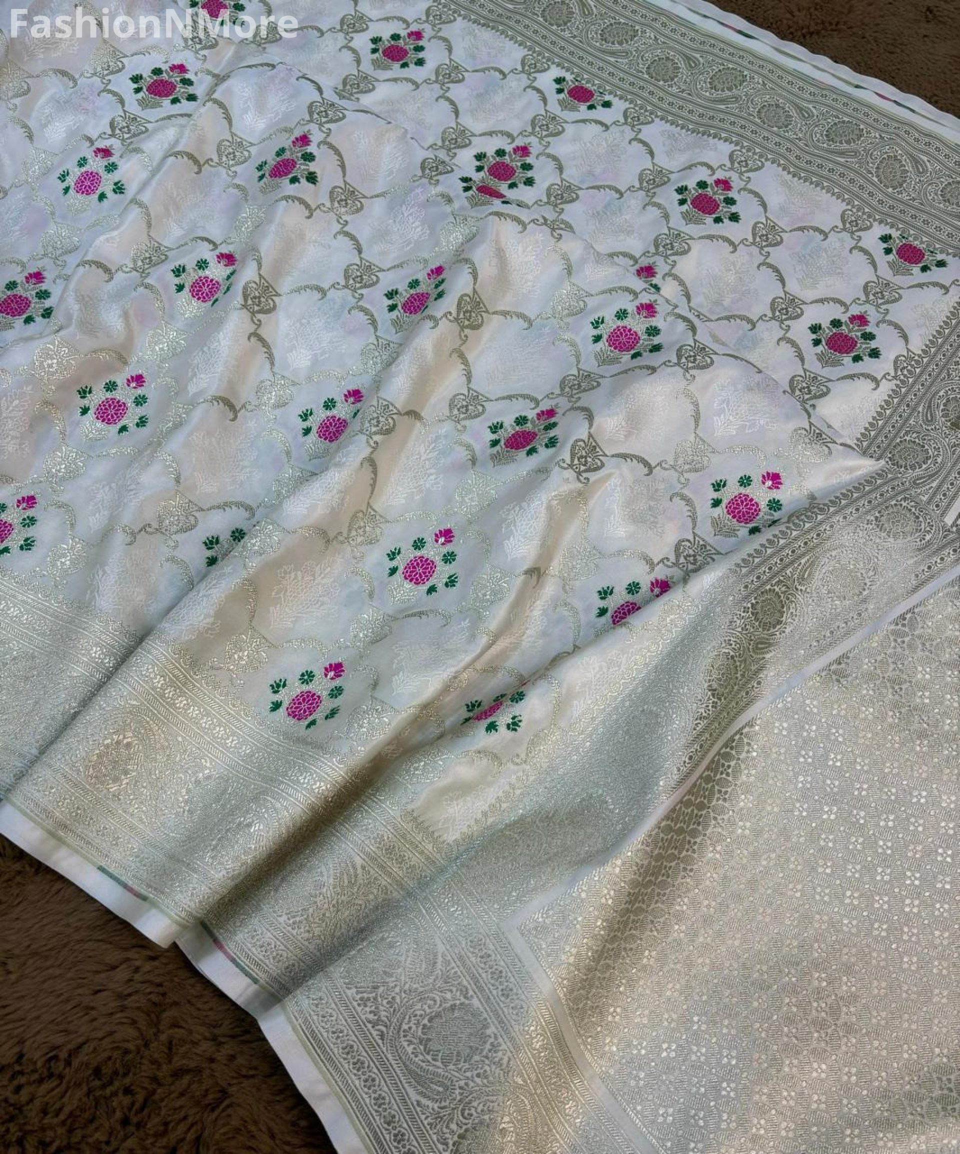 ✔️ Allover golden zari weaving enhances the luxurious look