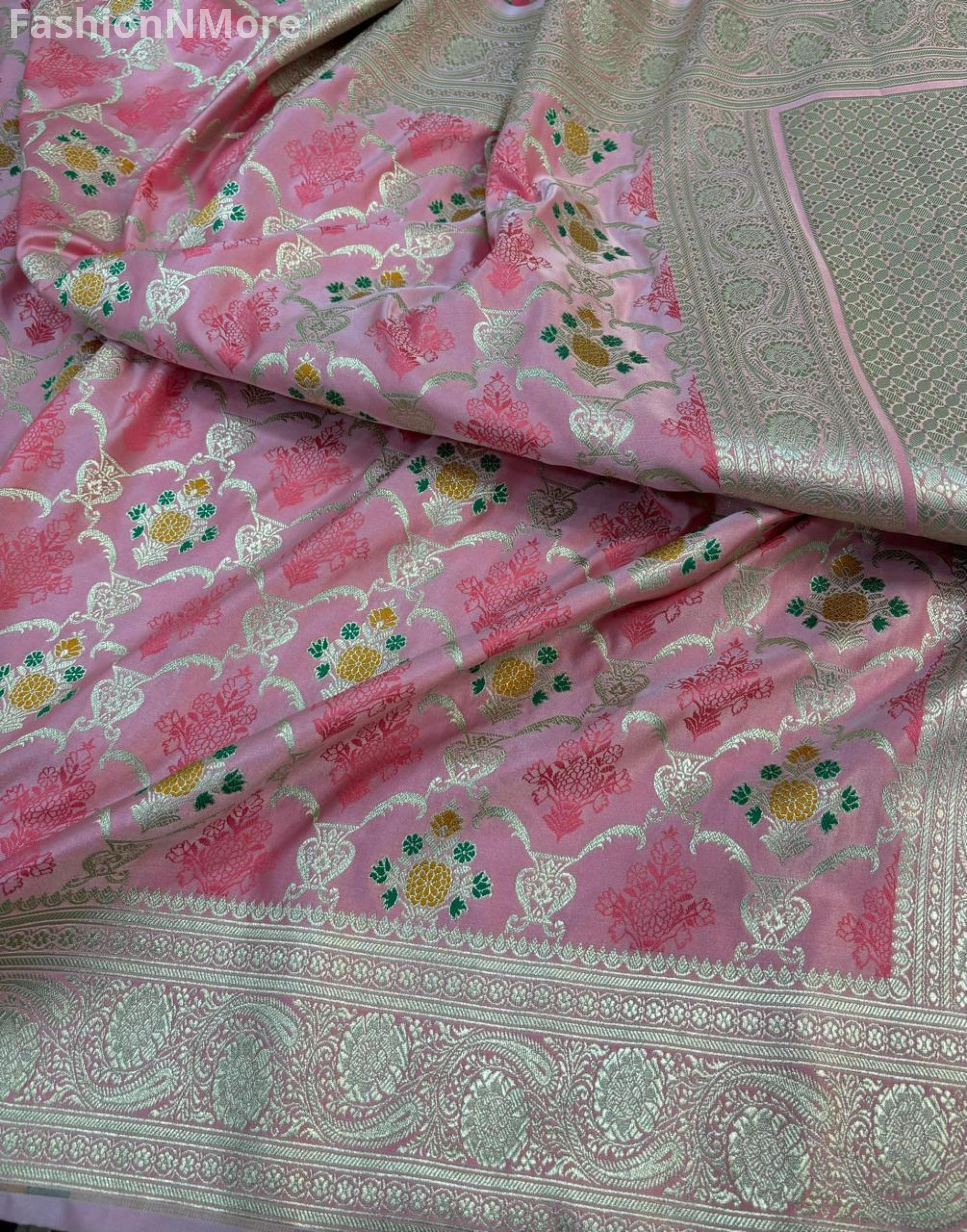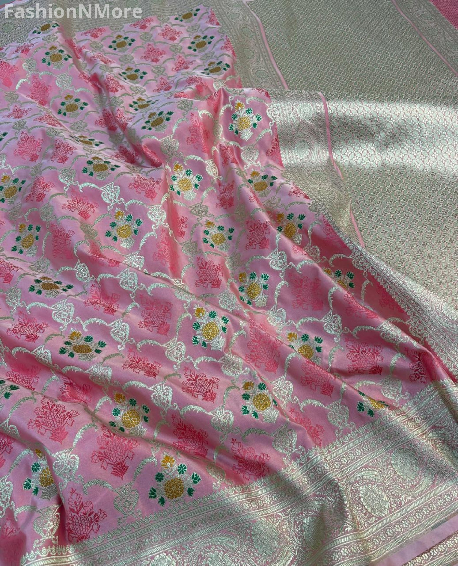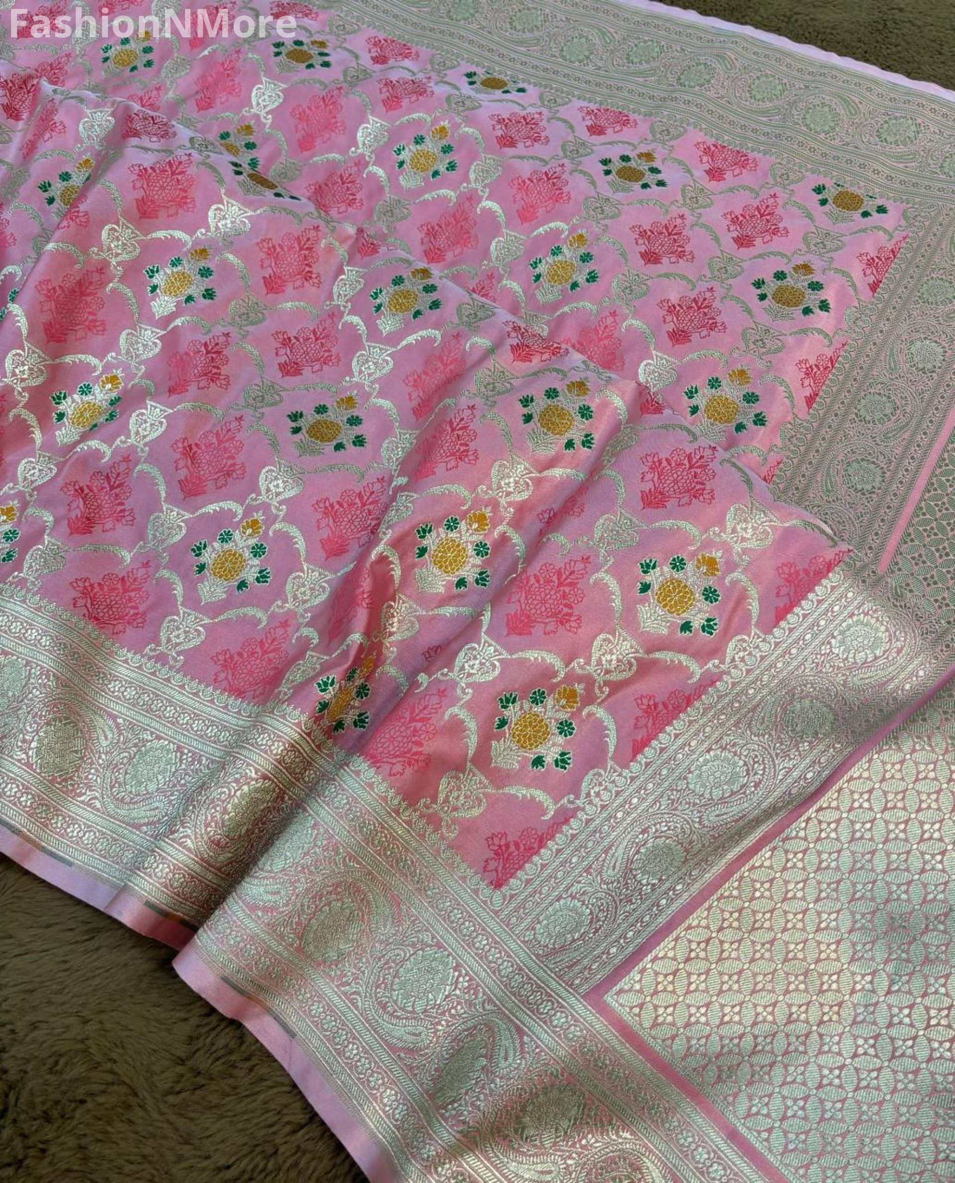✔️ Allover golden zari weaving enhances the luxurious look