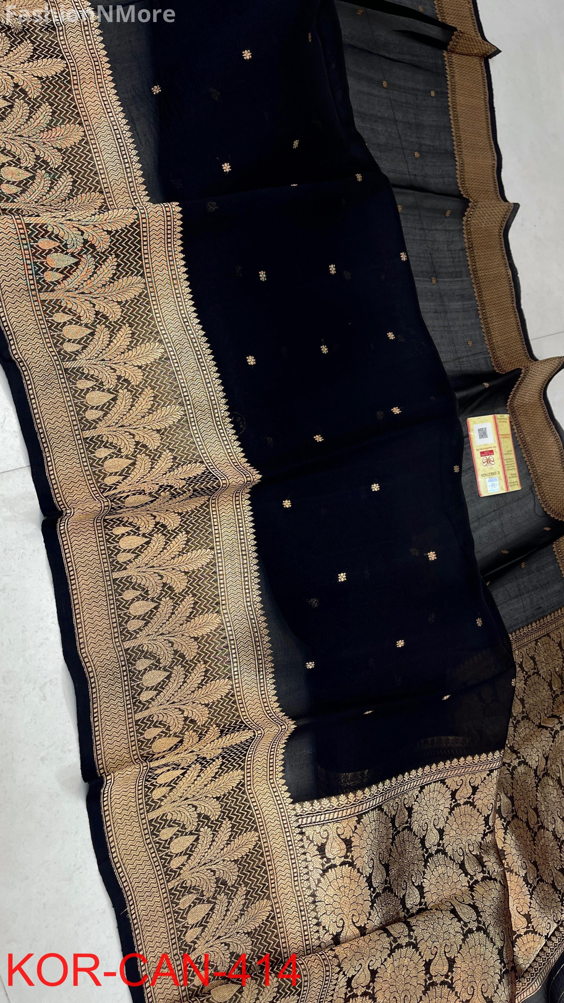 Pure Handloom Banarasi Kora Organza Silk Saree with Kadua Zari Weaving