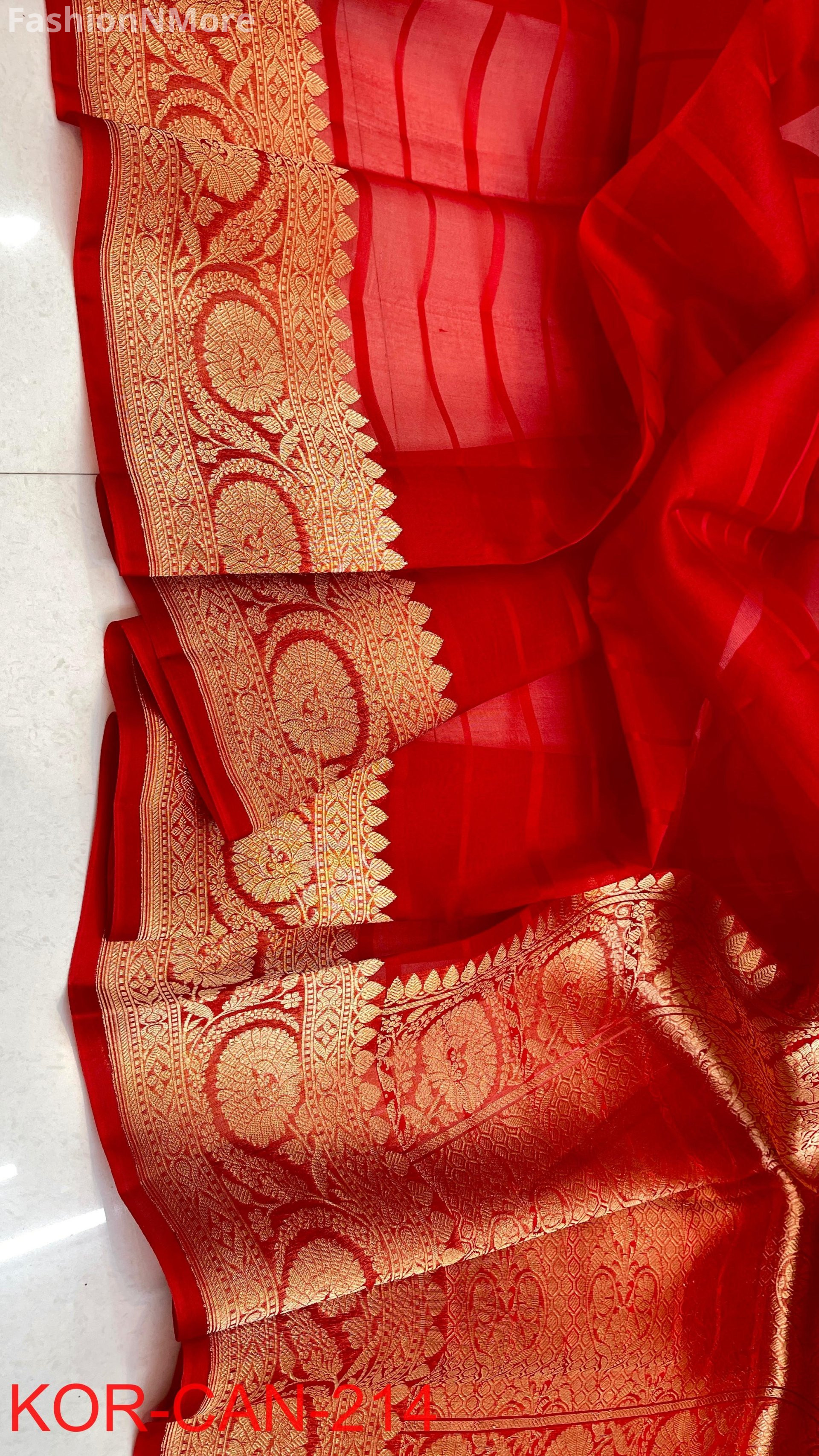 Pure Handloom Banarasi Kora Organza Silk Saree with Kadua Zari Weaving