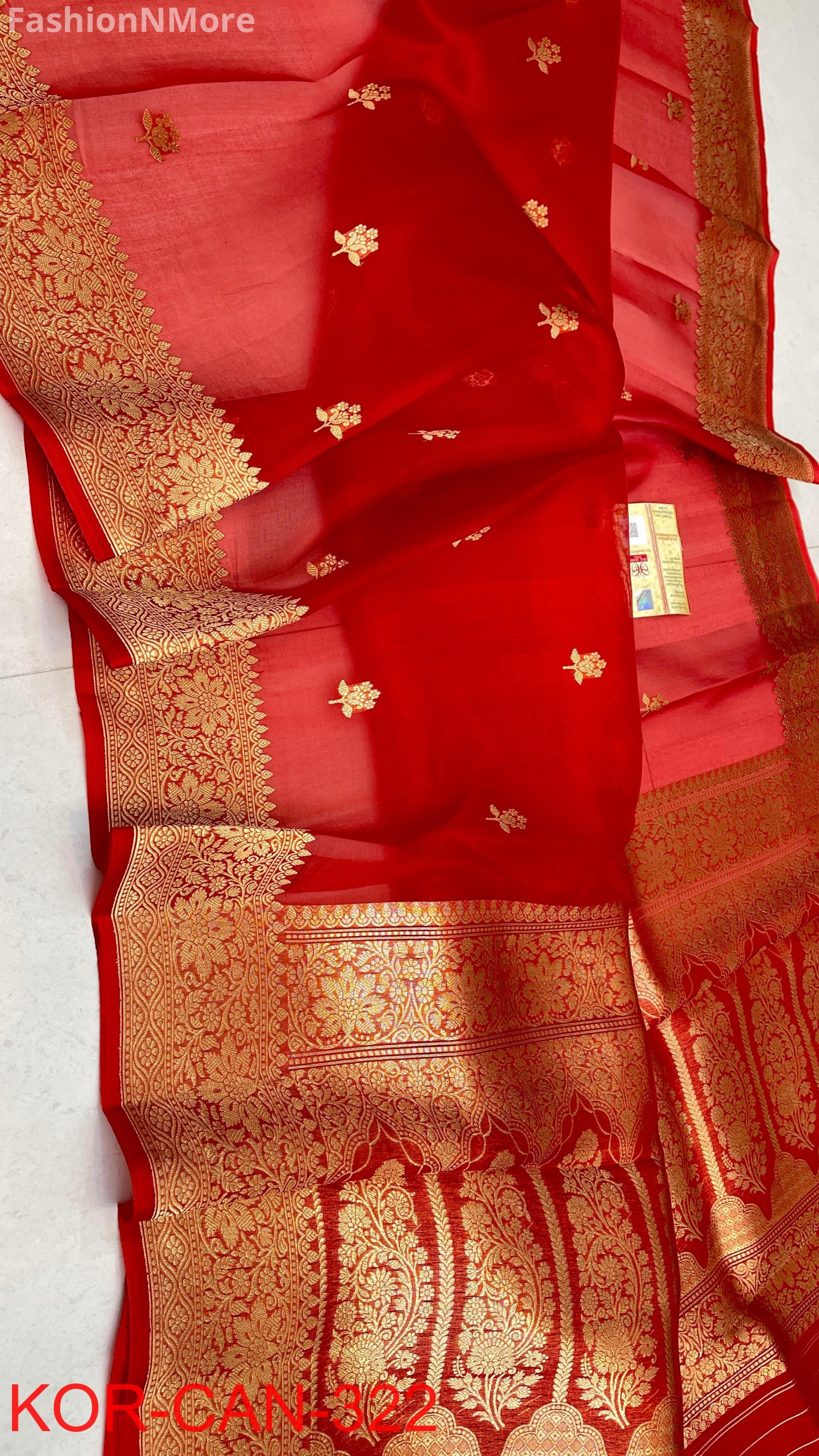 Pure Handloom Banarasi Kora Organza Silk Saree with Kadua Zari Weaving
