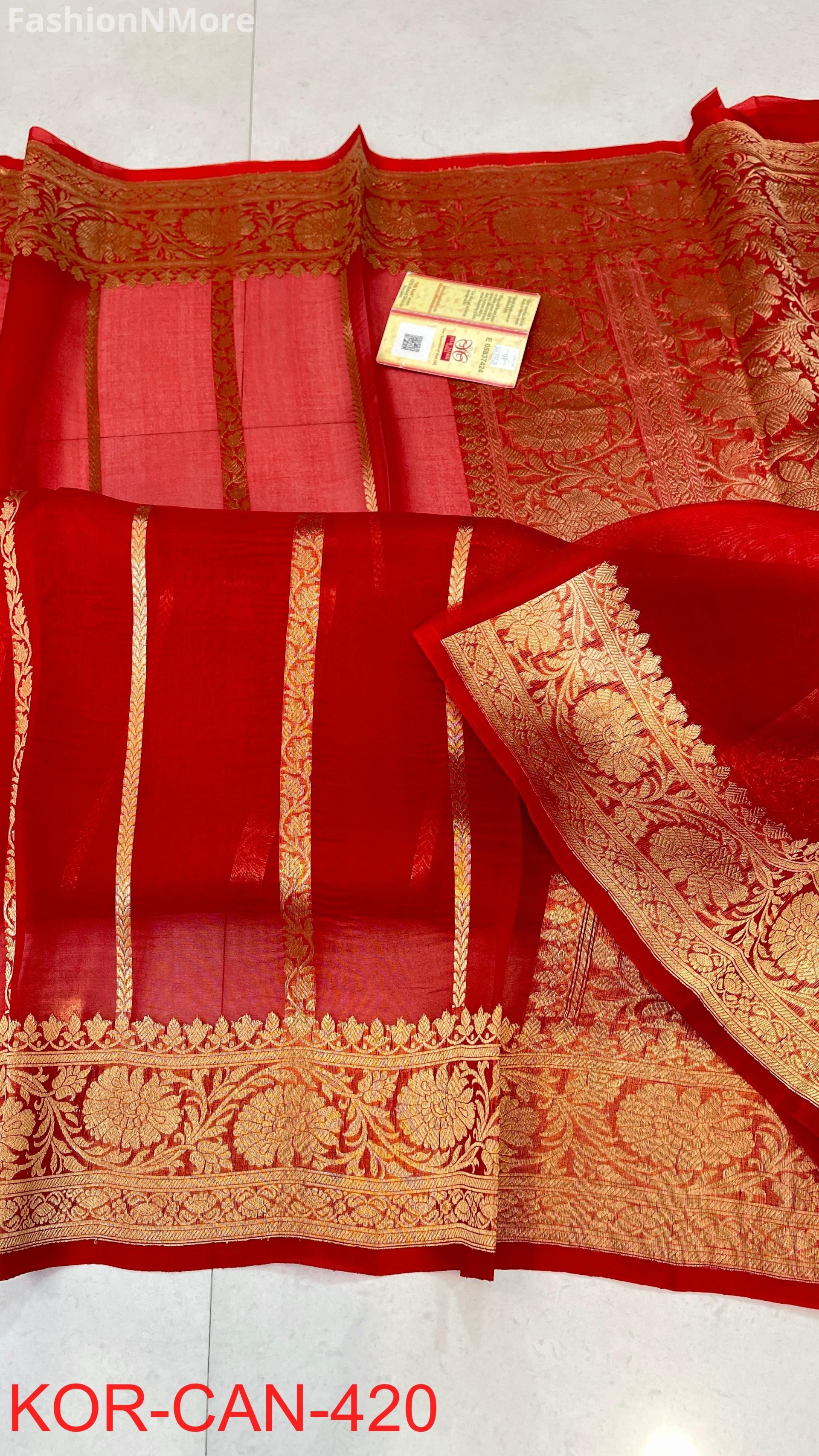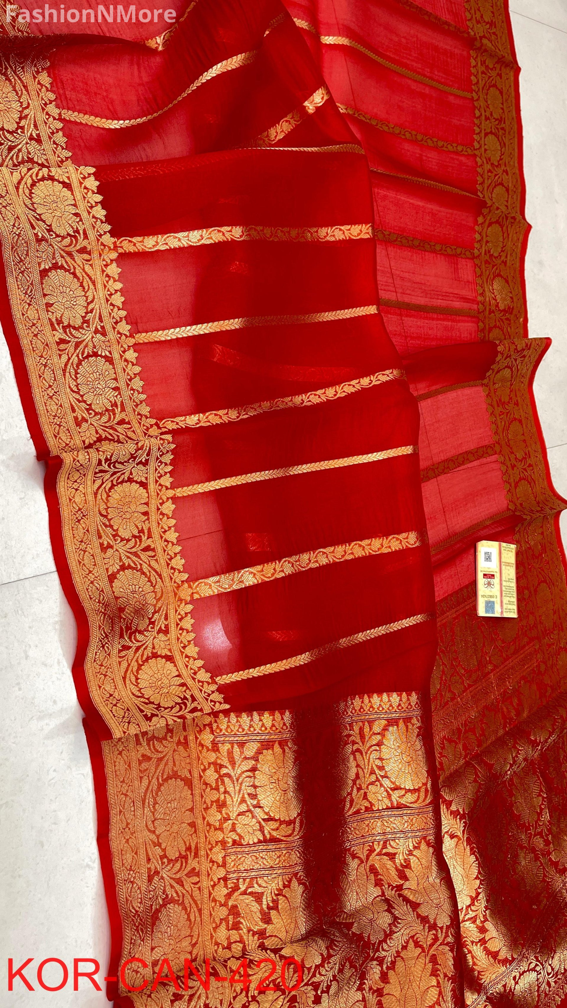 Pure Handloom Banarasi Kora Organza Silk Saree with Kadua Zari Weaving