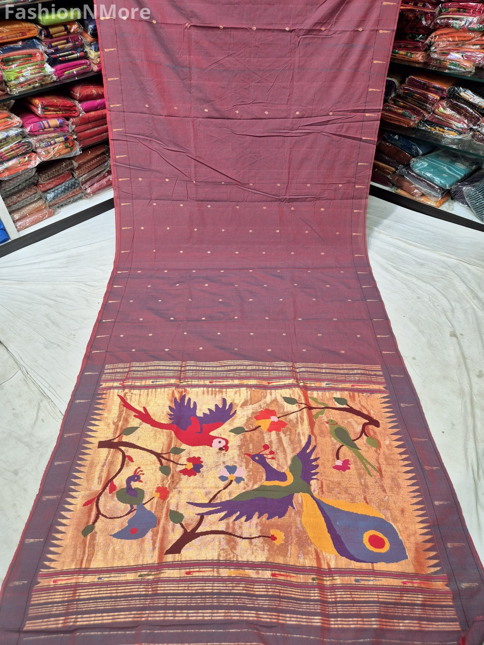 Pure Handloom Fancy Pallu Single Muniya Cotton Paithani Saree