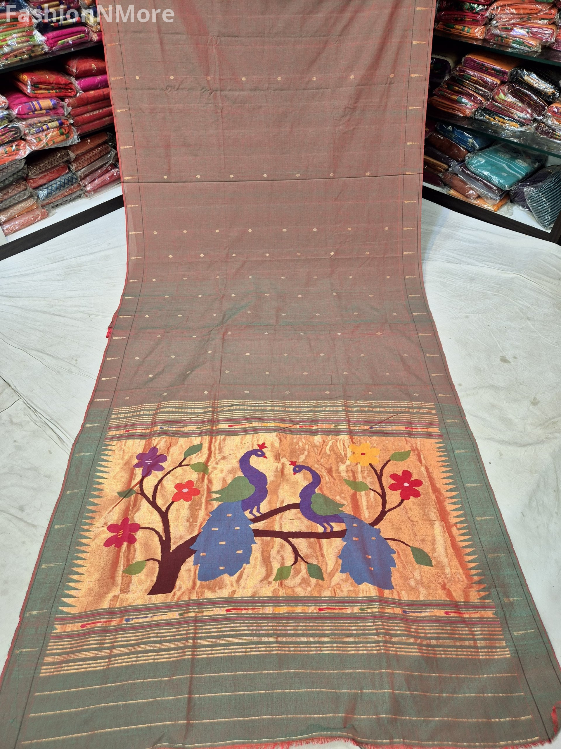Pure Handloom Fancy Pallu Single Muniya Cotton Paithani Saree