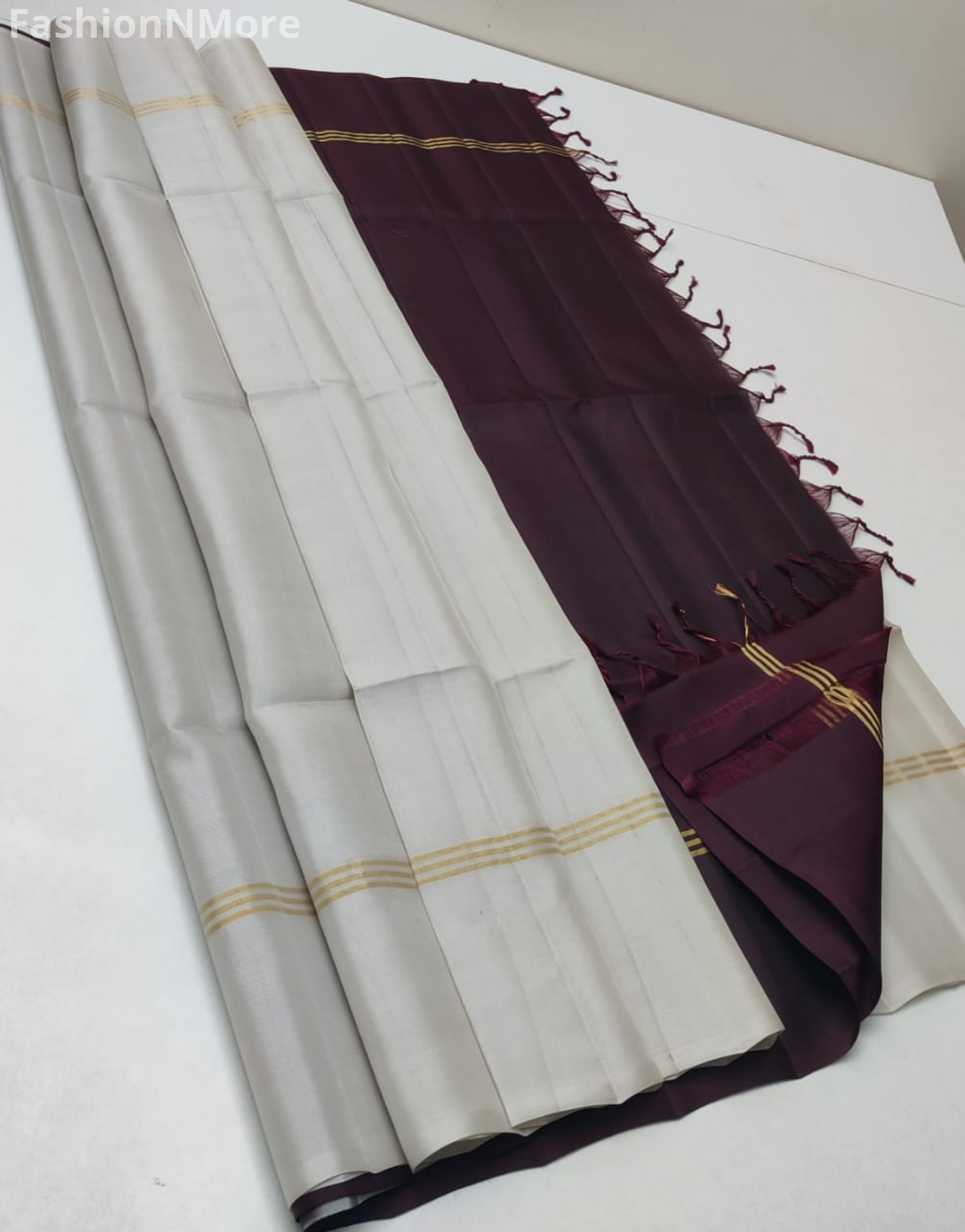 Pure Handloom Kanchi Soft Silk Plain Saree