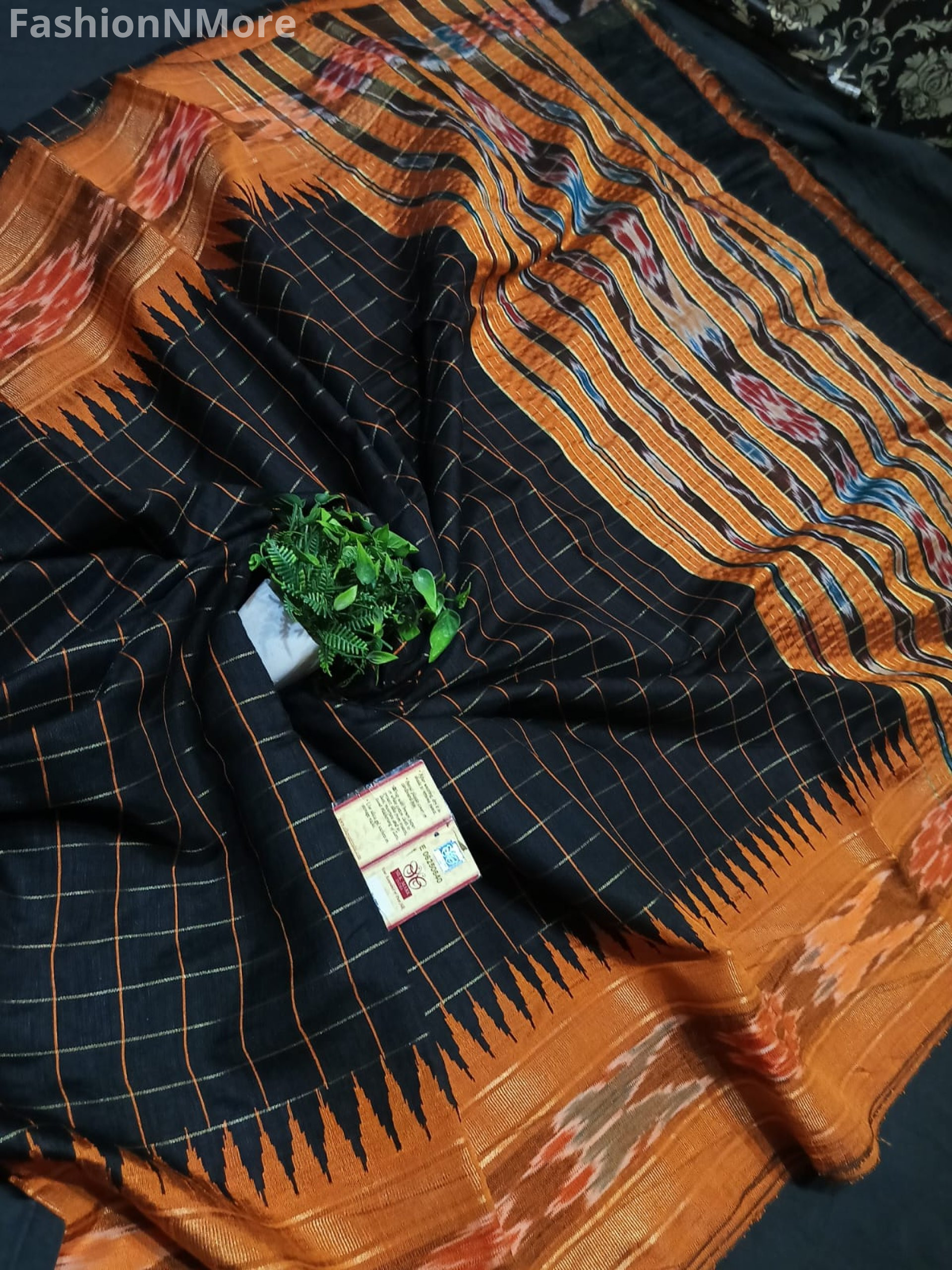 ✔ Pure Silk Saree with exquisite both-side Temple Ikkat (Pochampally) border & contrast Ikkat pallu