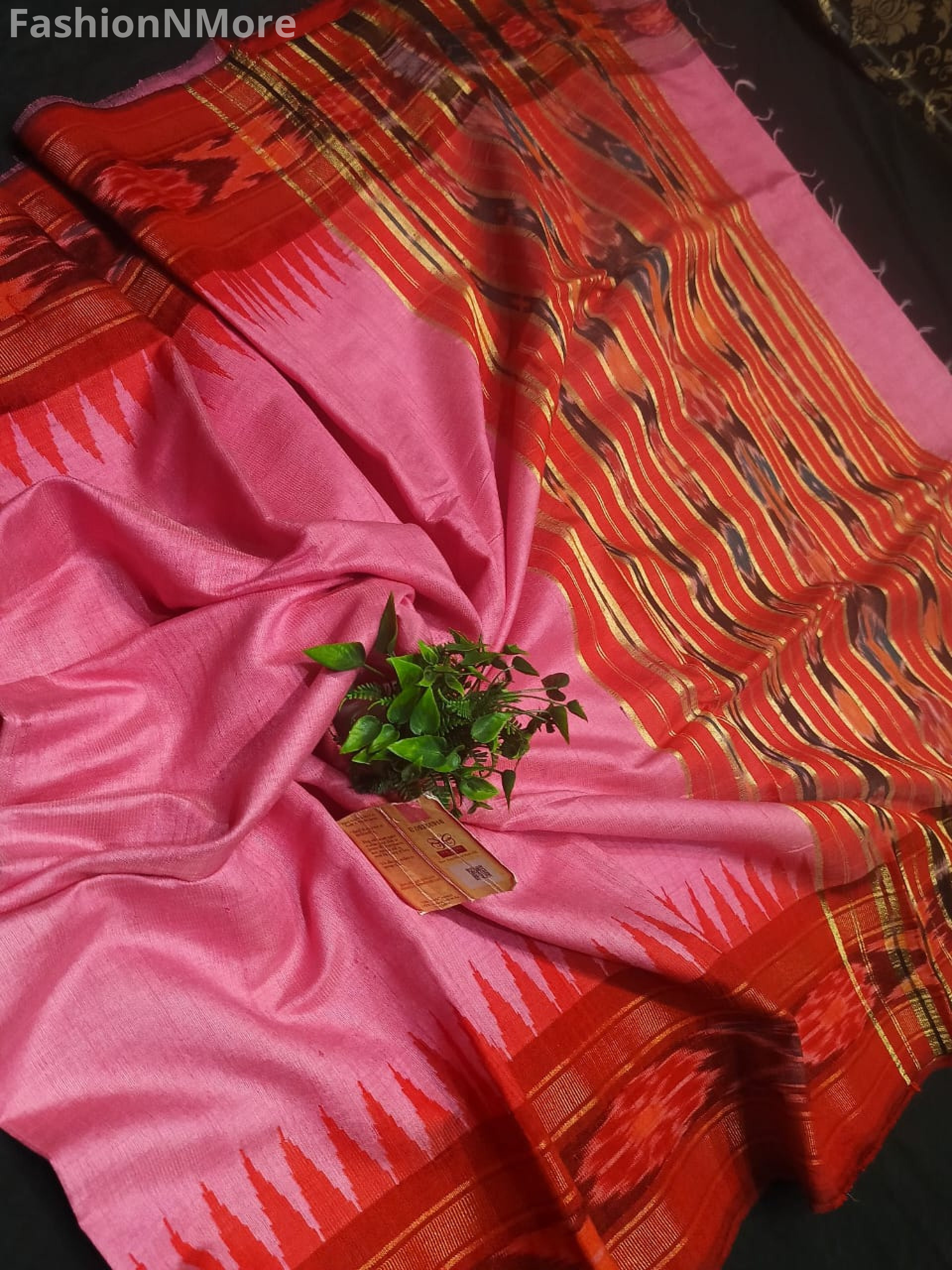 ✔ Pure Silk Saree with exquisite both-side Temple Ikkat (Pochampally) border & contrast Ikkat pallu
