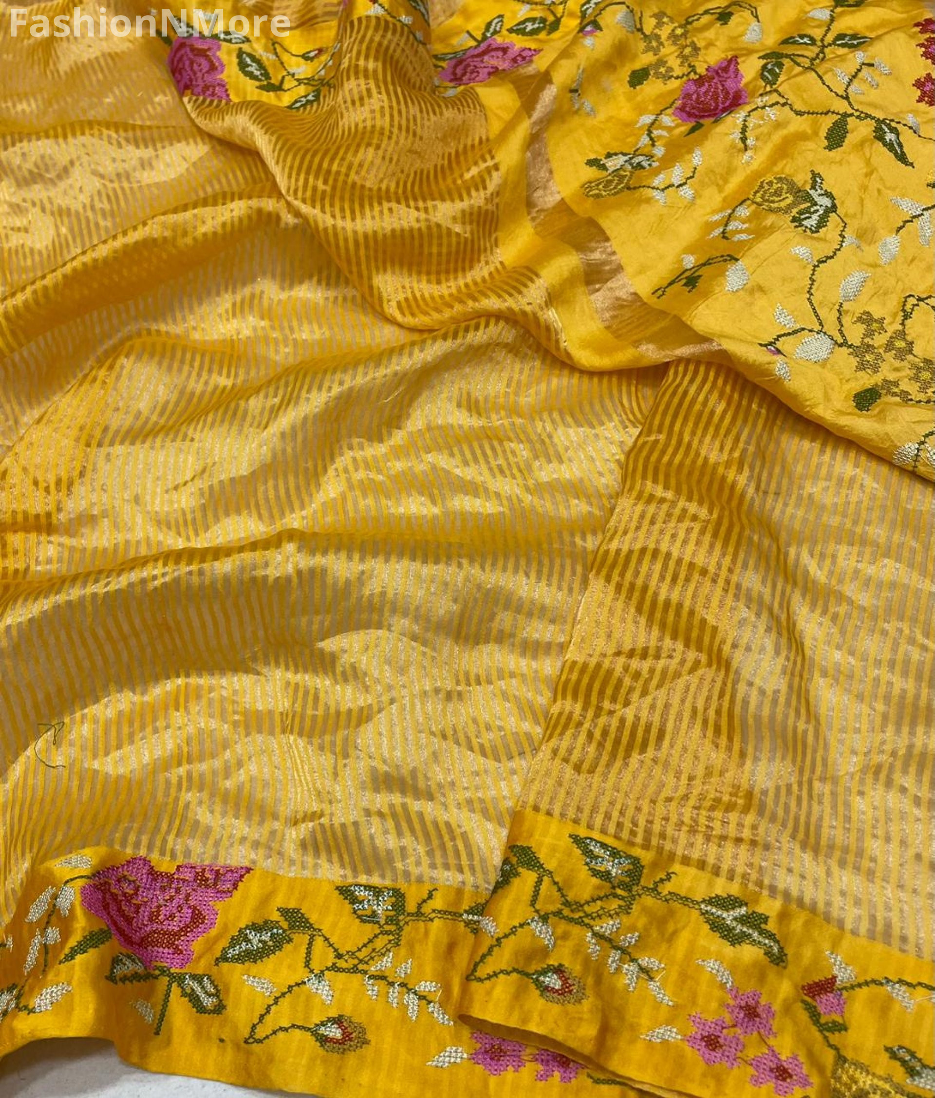 ✔️ Enhanced with a rich Mashru border adding traditional charm