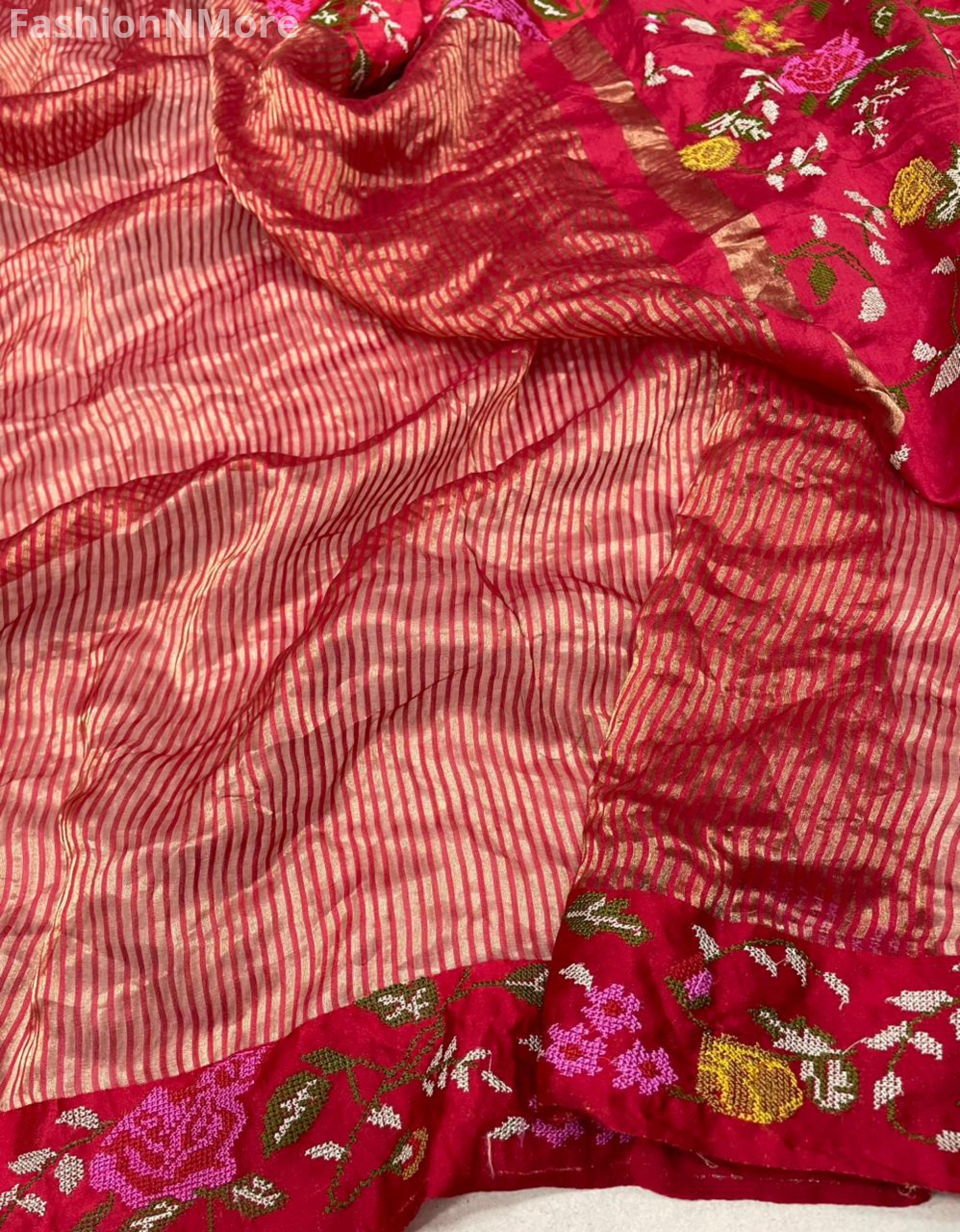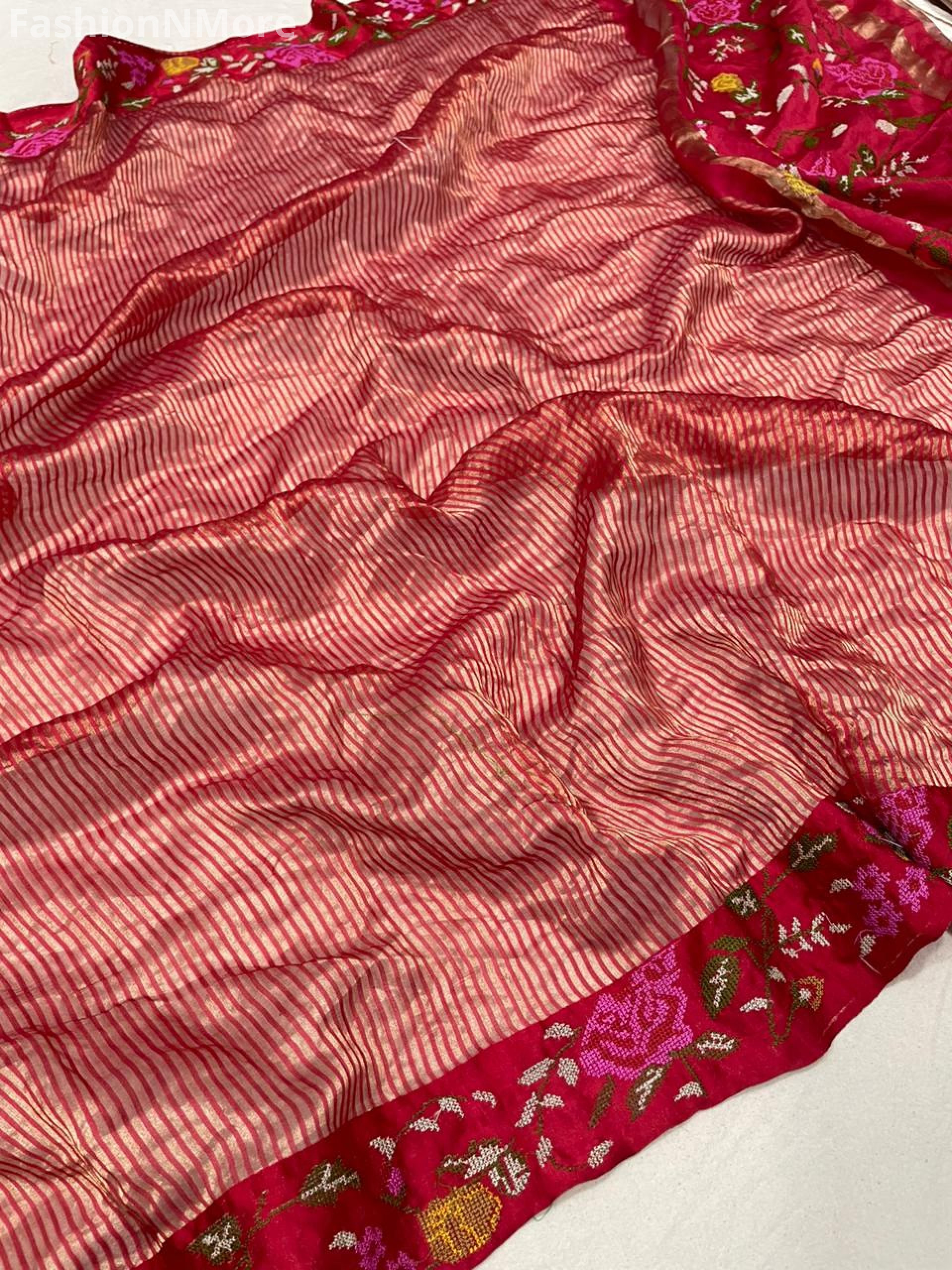 Pure Tissue Silk Petit Point Embroidery Saree with Mashru Border