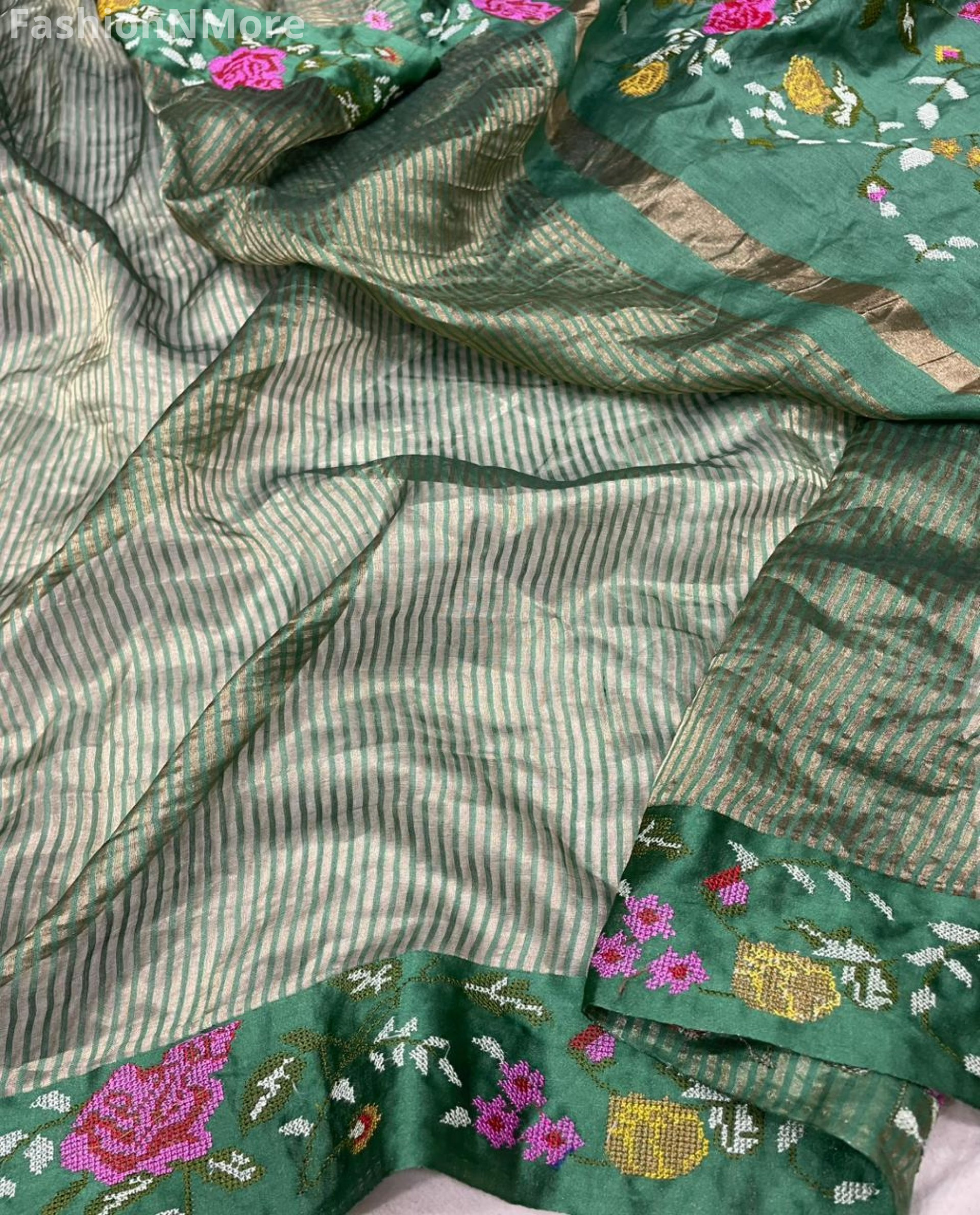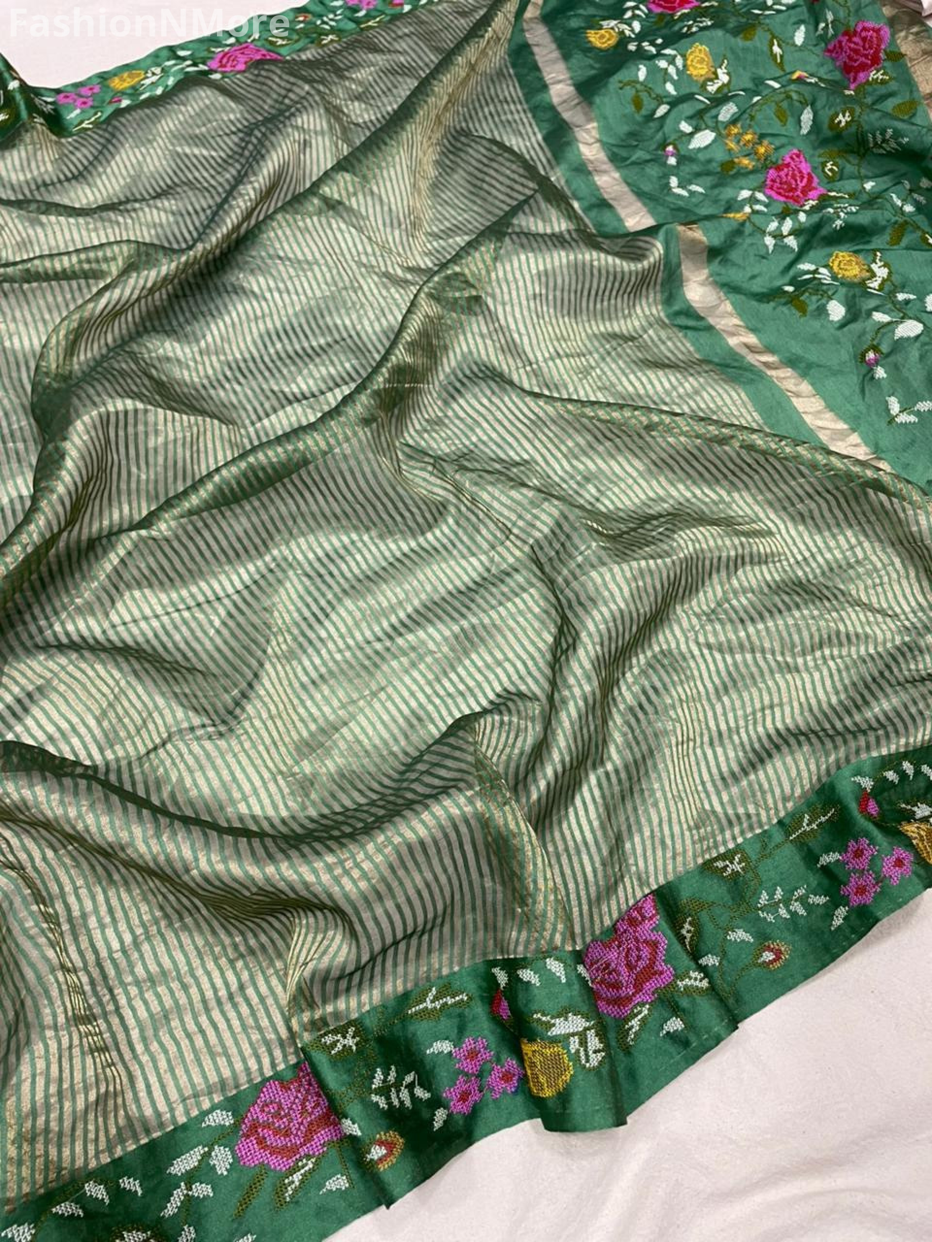 Pure Tissue Silk Saree with Petit Point Embroidery & Mashru Border
