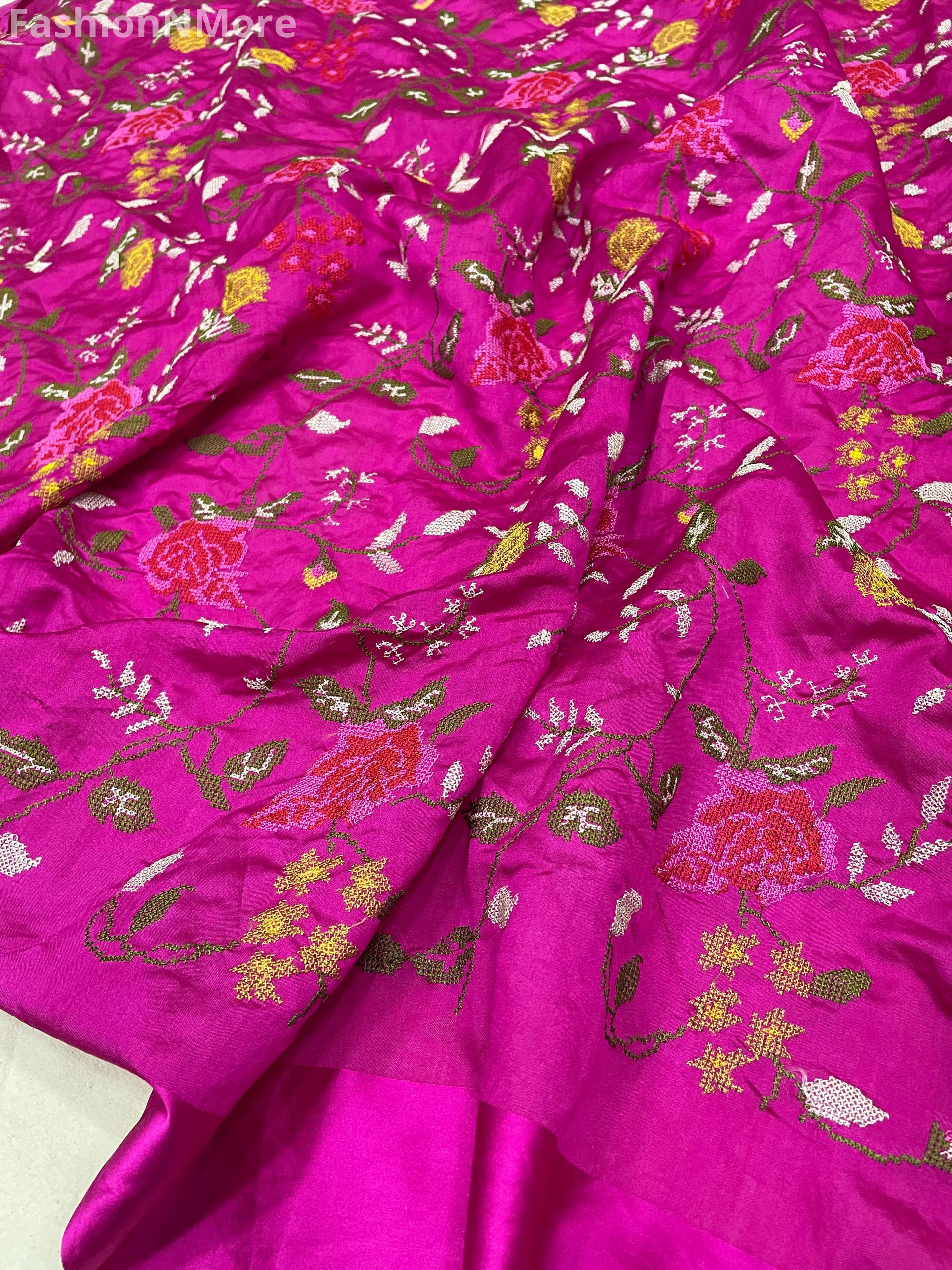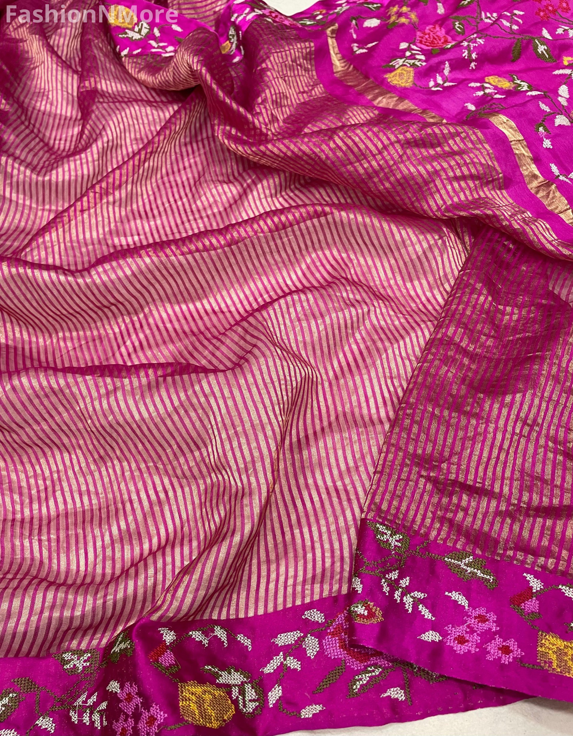 Pure Tissue Silk Saree with Petit Point Embroidery & Mashru Border