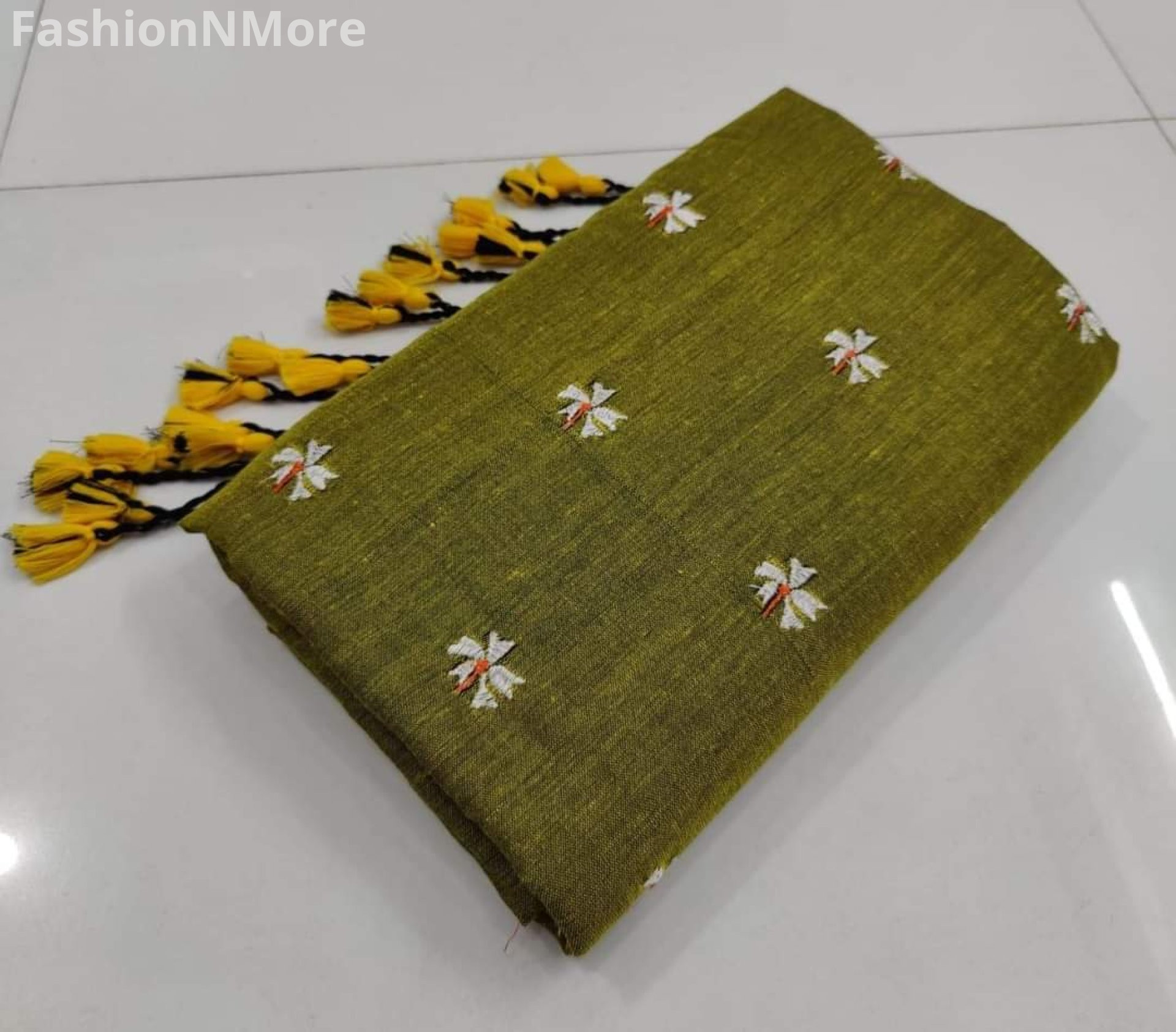 Parijatak Embroidery Work Handloom Soft Khadi Cotton Saree